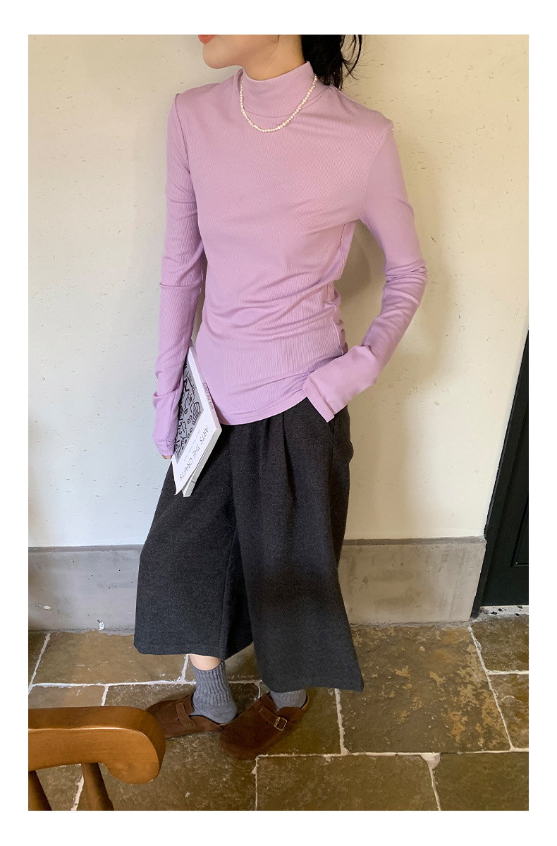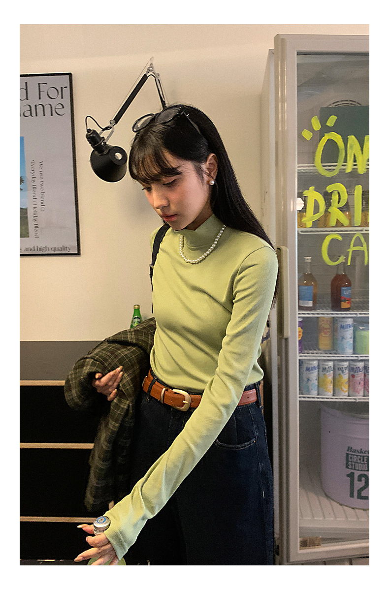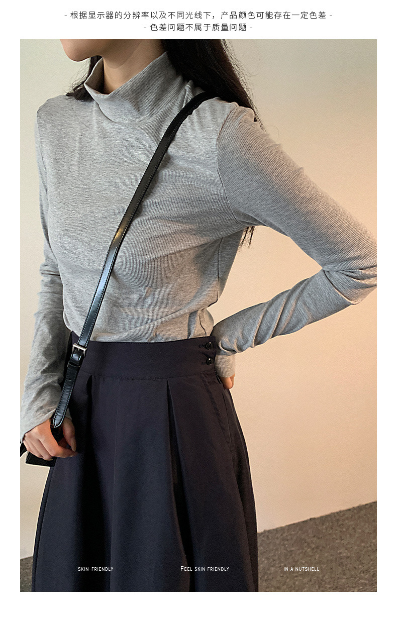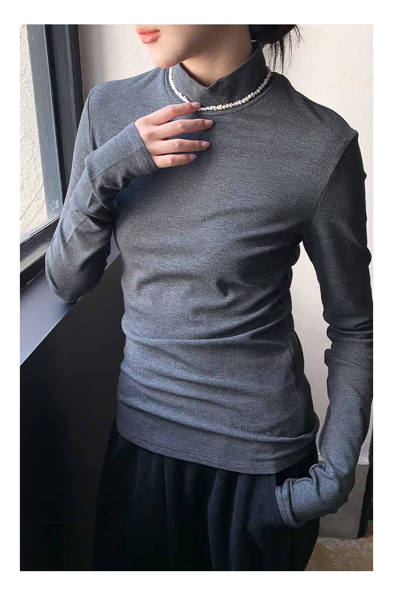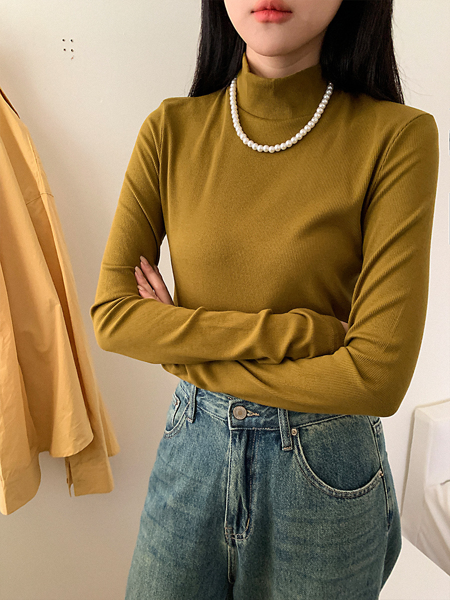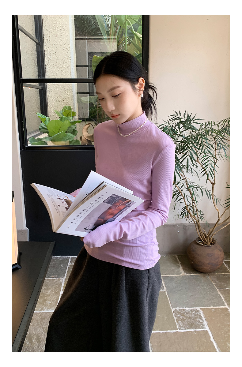 공식 7 색 기모 올 매치 세미 하이 칼라 바닥 스웨터 T 여성용 피트 패턴 접힌 탑을 입고 이순신 셔츠스토어 가기