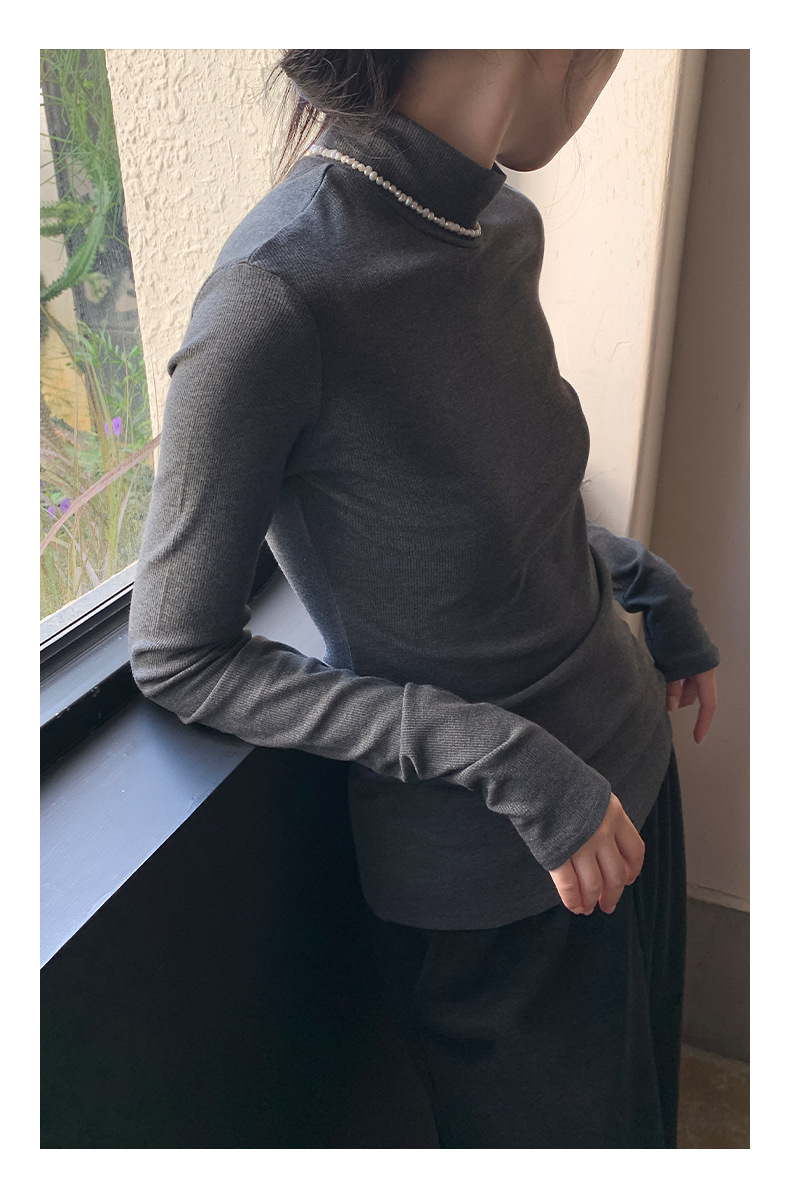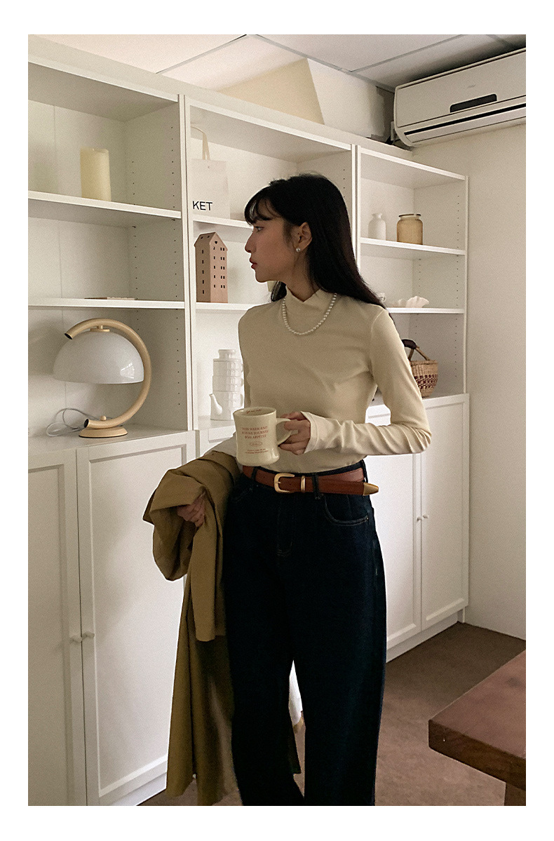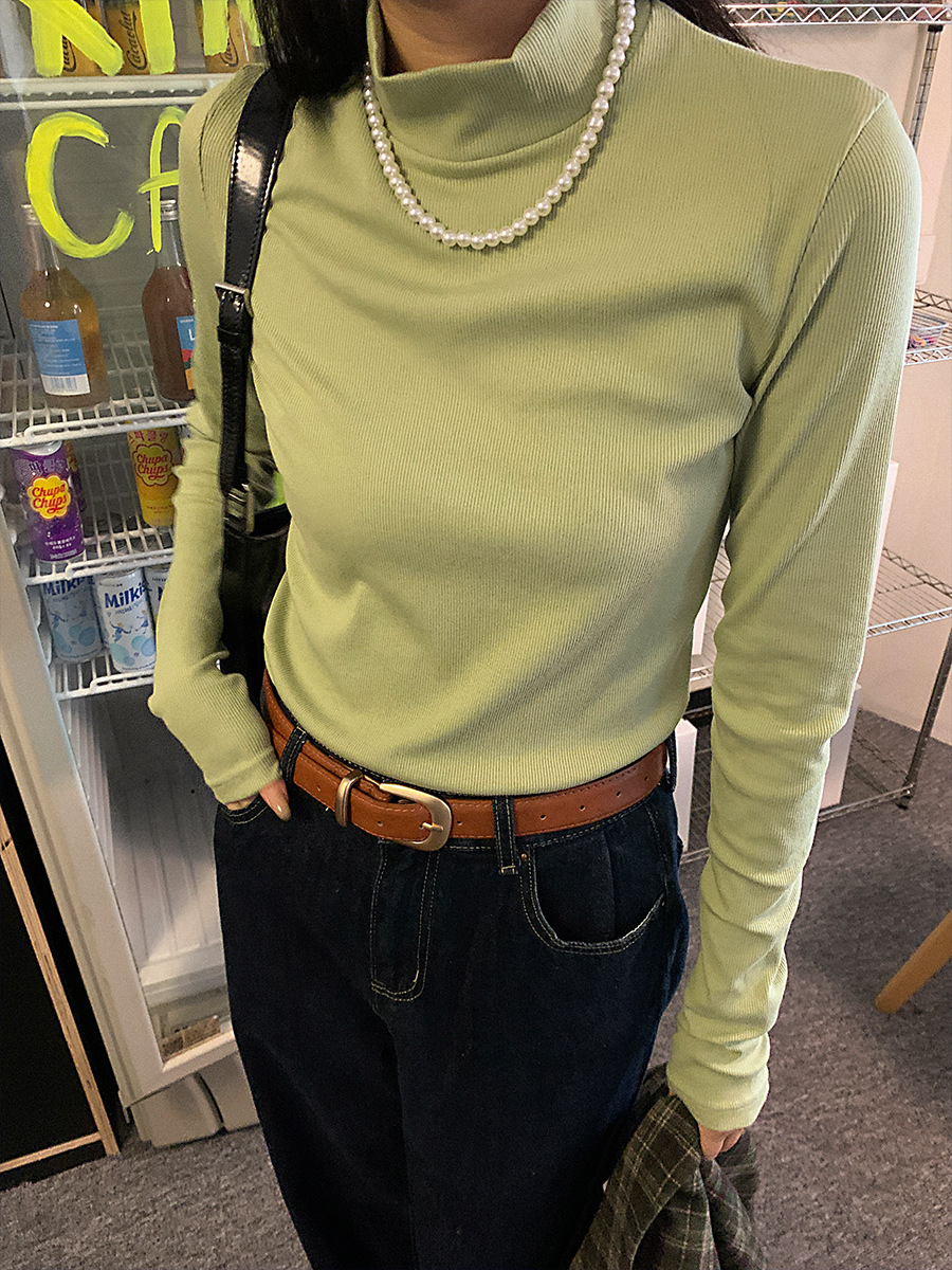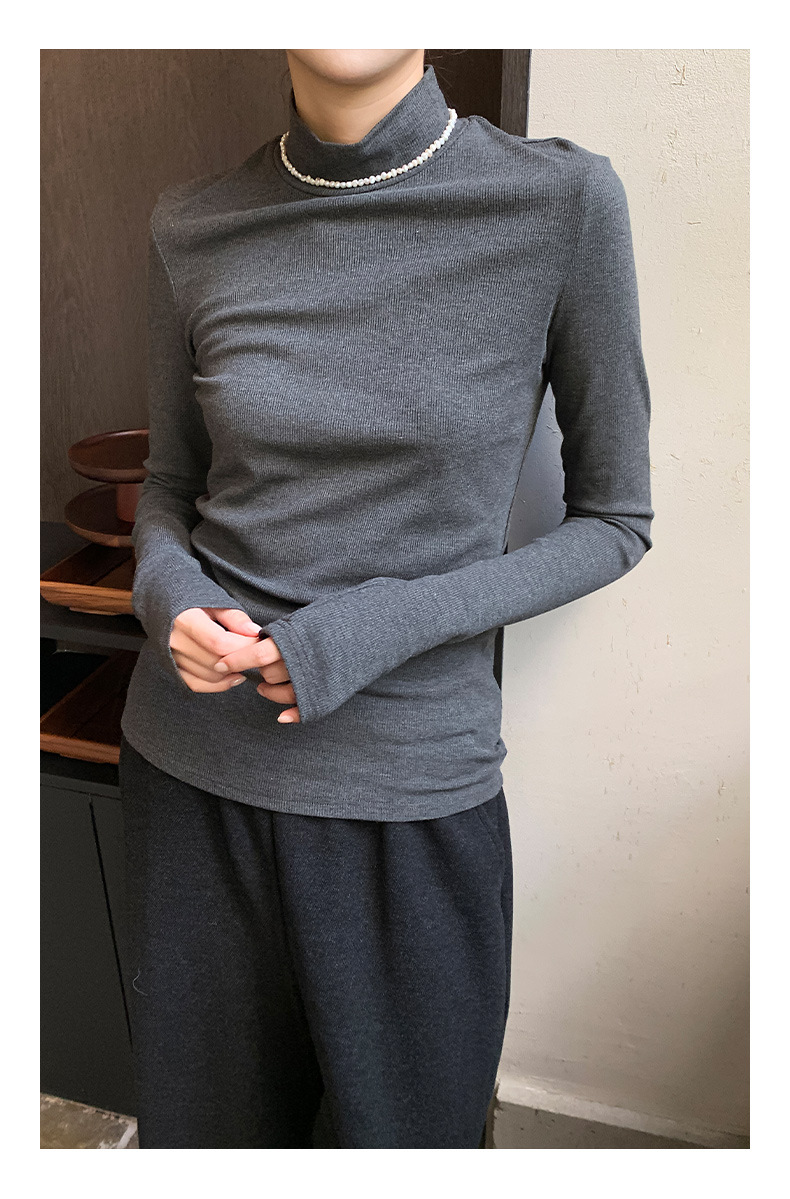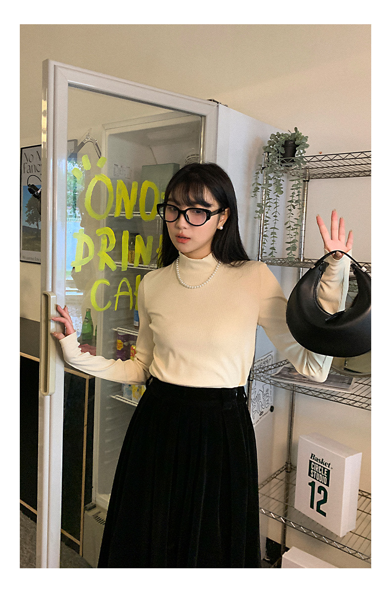 공식 7 색 기모 올 매치 세미 하이 칼라 바닥 스웨터 T 여성용 피트 패턴 접힌 탑을 입고 이순신 셔츠스토어 가기