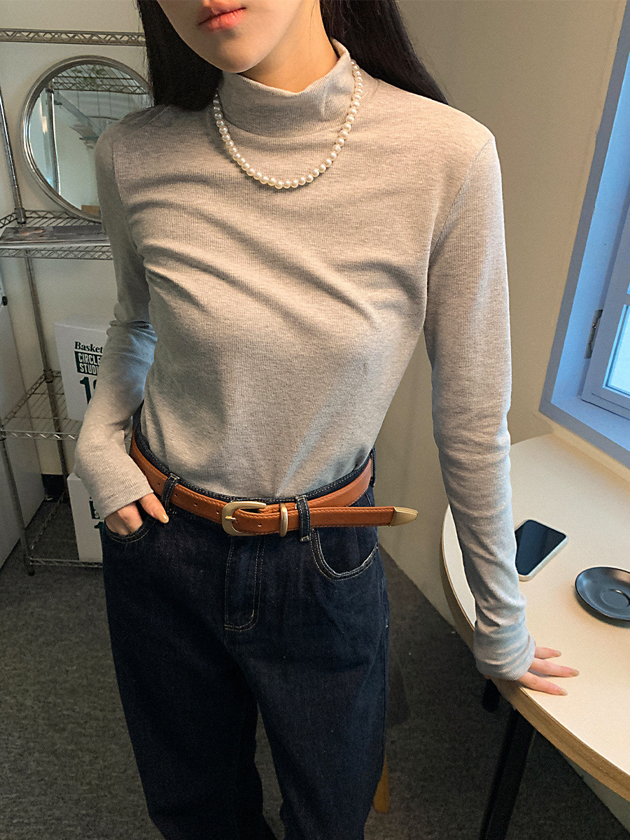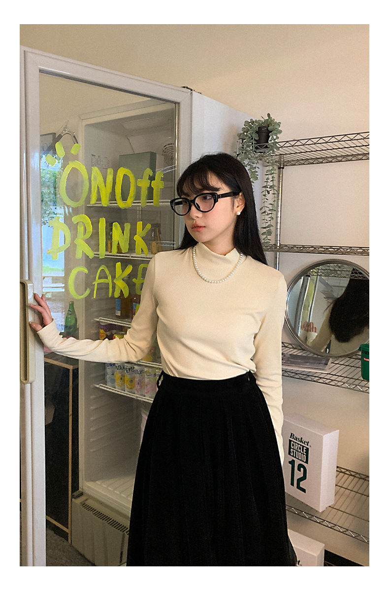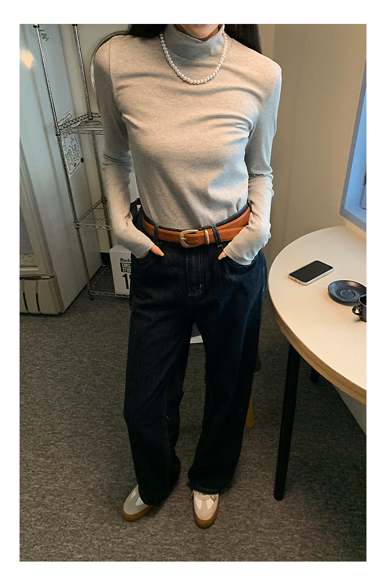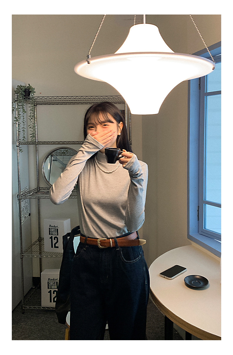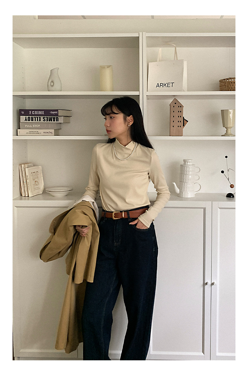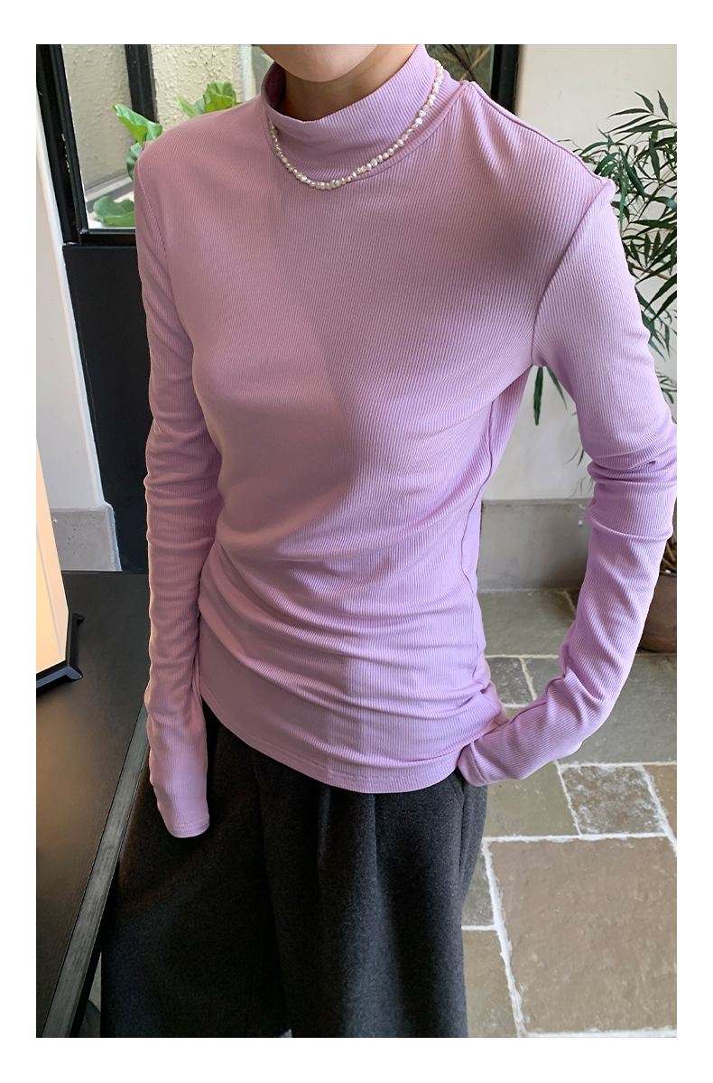 공식 7 색 기모 올 매치 세미 하이 칼라 바닥 스웨터 T 여성용 피트 패턴 접힌 탑을 입고 이순신 셔츠스토어 가기