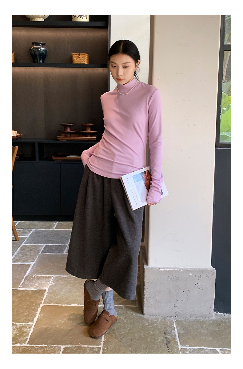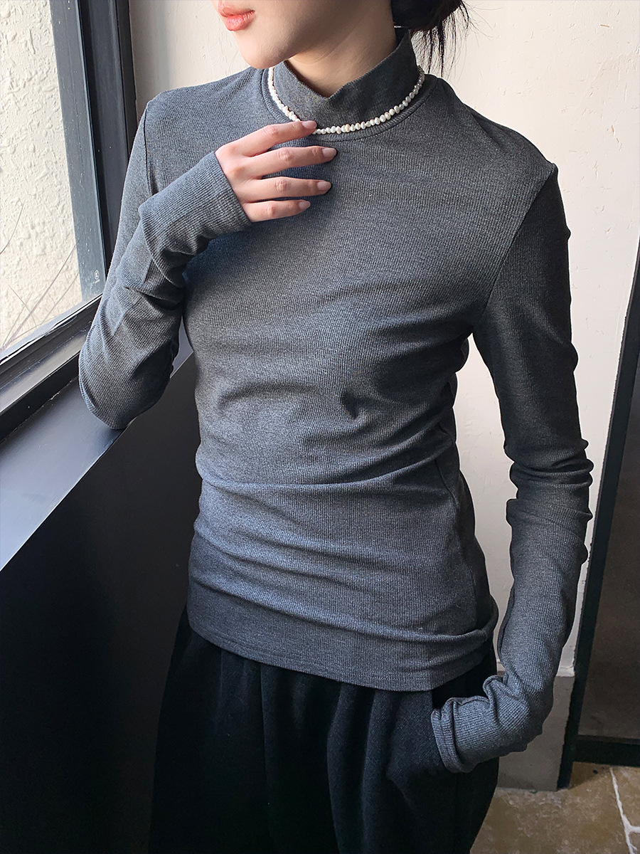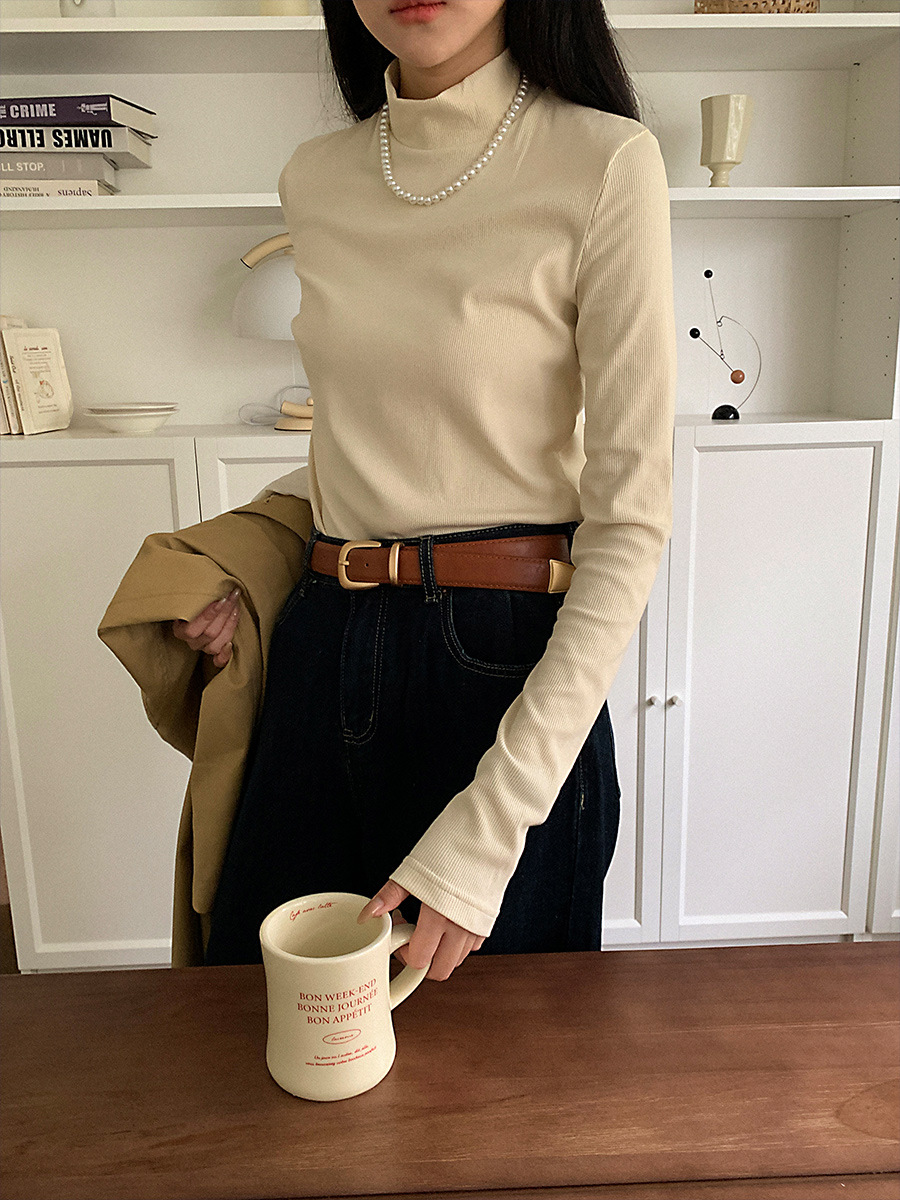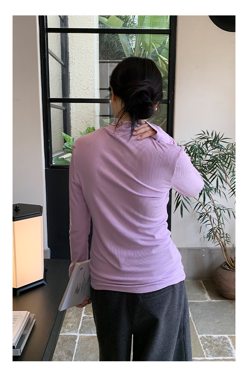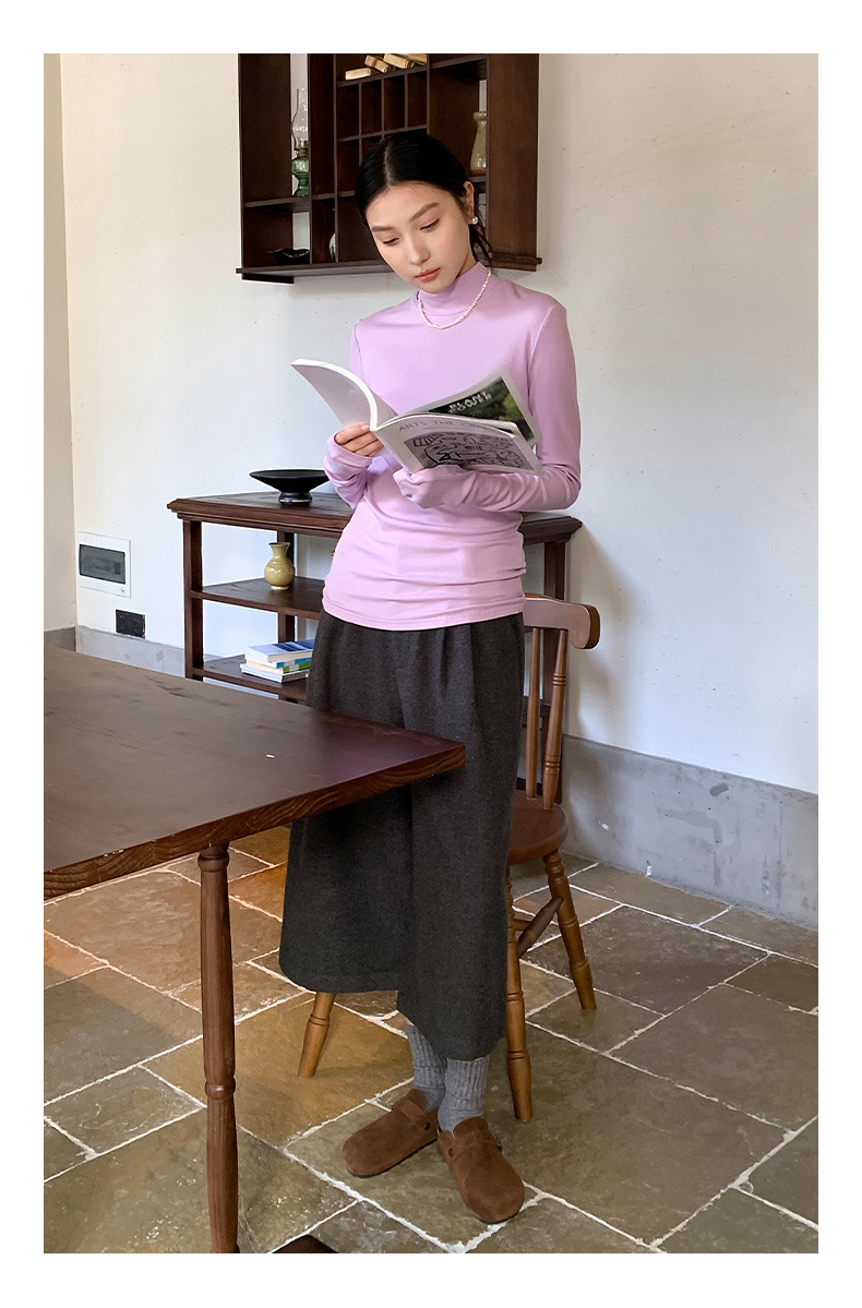 공식 7 색 기모 올 매치 세미 하이 칼라 바닥 스웨터 T 여성용 피트 패턴 접힌 탑을 입고 이순신 셔츠스토어 가기