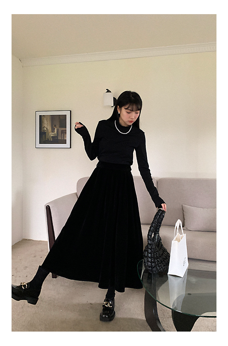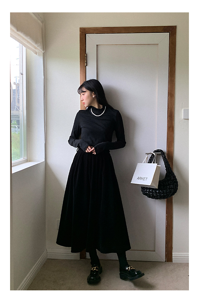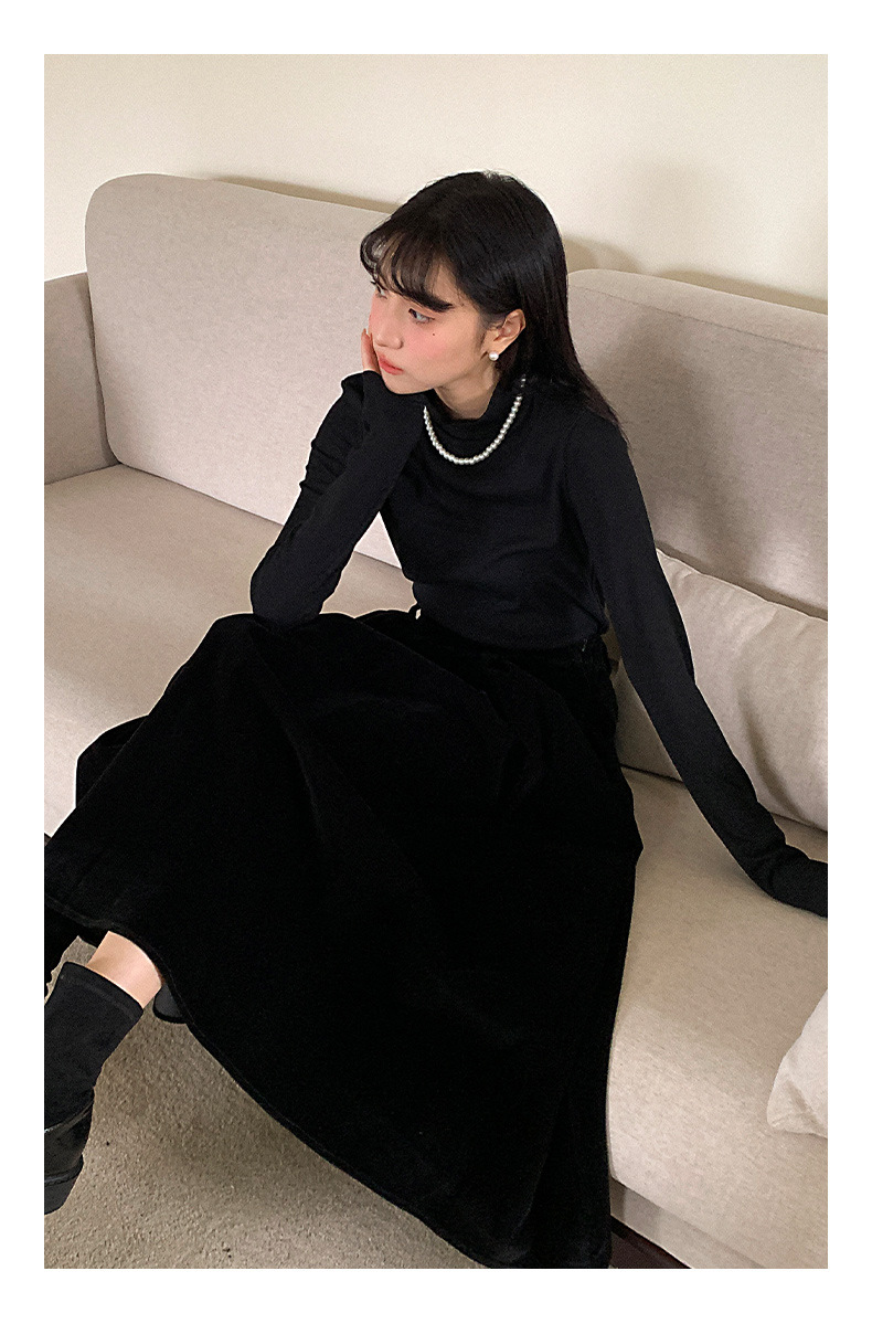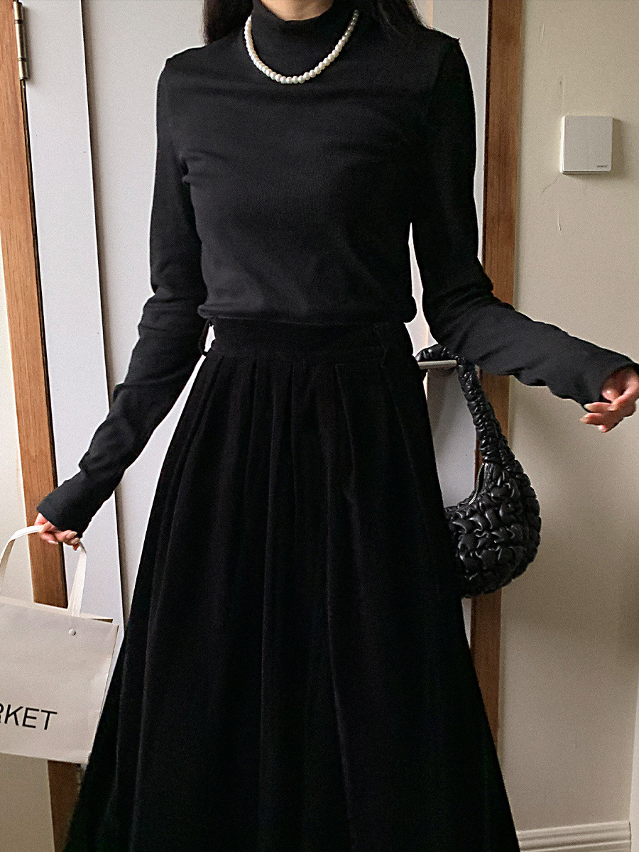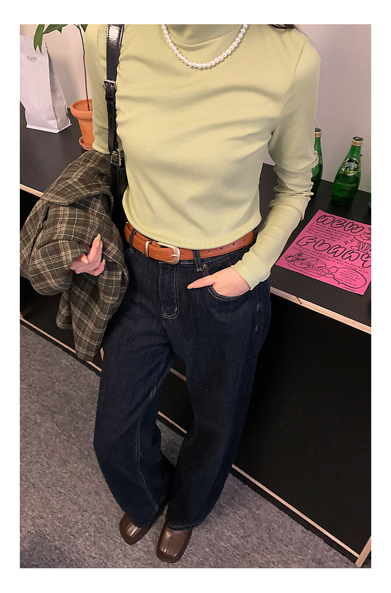 공식 7 색 기모 올 매치 세미 하이 칼라 바닥 스웨터 T 여성용 피트 패턴 접힌 탑을 입고 이순신 셔츠스토어 가기