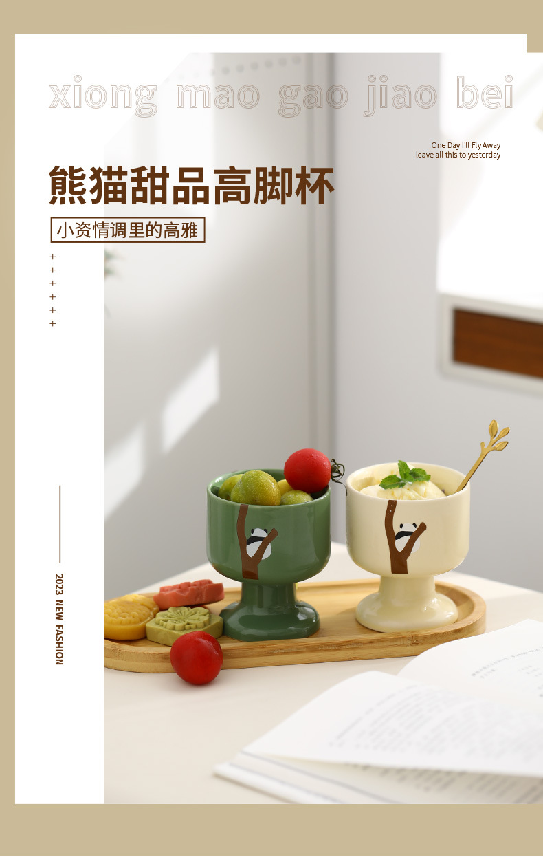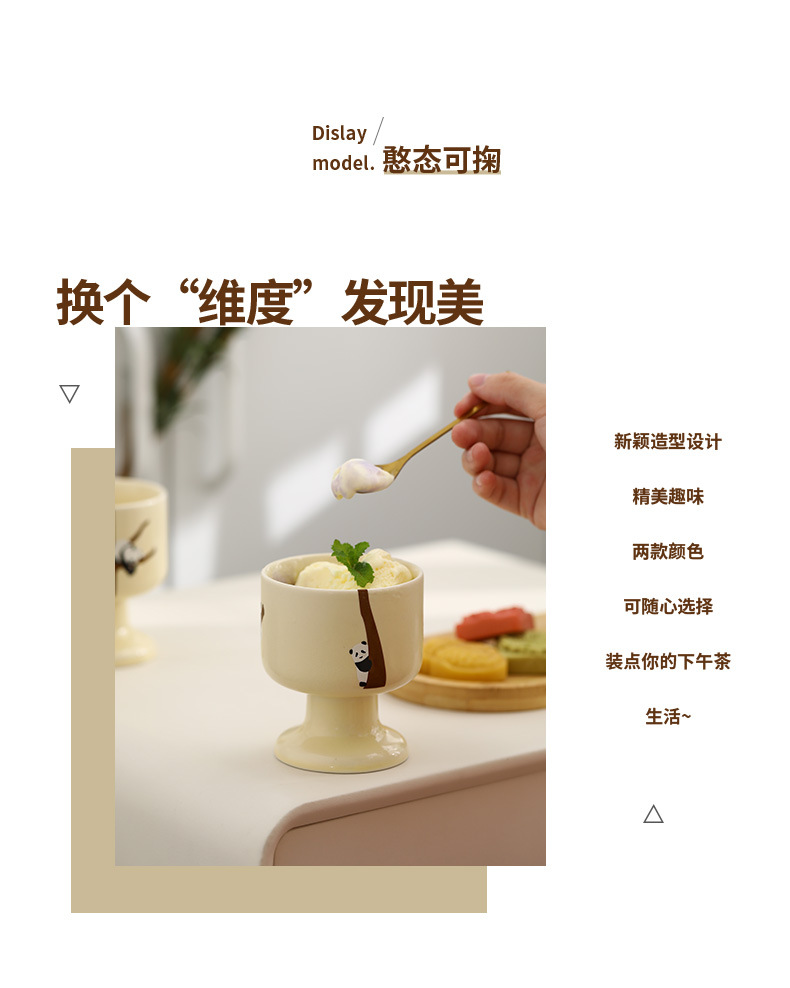 팬더 아이스크림 컵 키 큰 아이스크림 컵 요구르트 디저트 커피 컵 밀크 쉐이크 무스 오트밀 컵 밀크 쉐이크 세라믹 컵스토어 가기