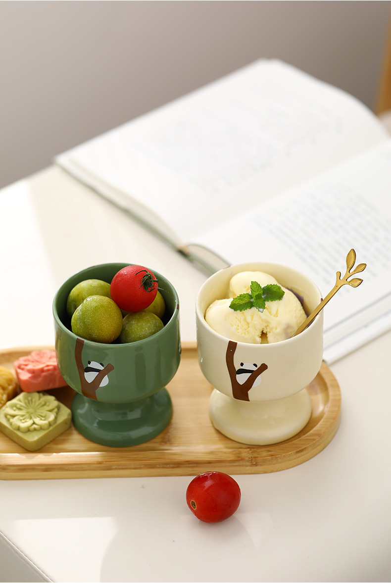 팬더 아이스크림 컵 키 큰 아이스크림 컵 요구르트 디저트 커피 컵 밀크 쉐이크 무스 오트밀 컵 밀크 쉐이크 세라믹 컵