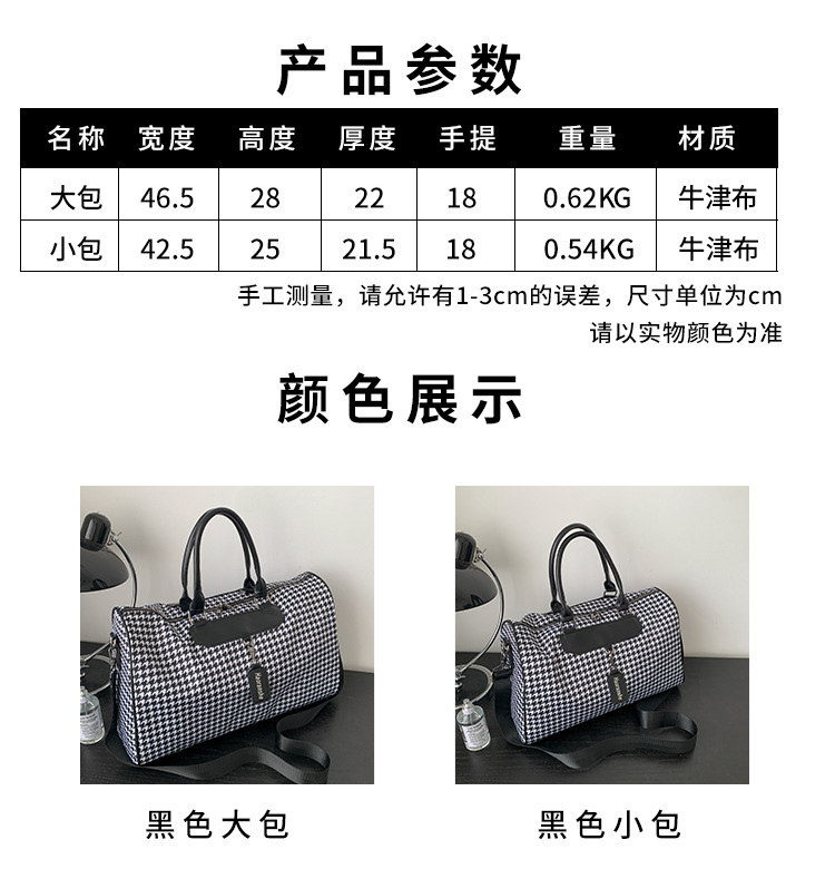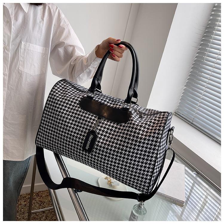 Houndstooth 여행 가방 여성용 대용량 핸드백 경량 여행 가방 생산 보관 체육관 가방 탑승 수하물 가방스토어 가기