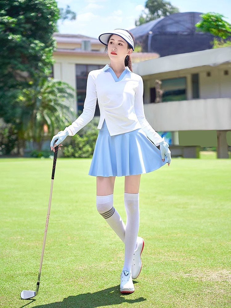 공장 도매 골프 여성 긴팔 티셔츠 폴로 셔츠 빠른 건조 V 넥 슬림 스트레치 슬림 탑 의류