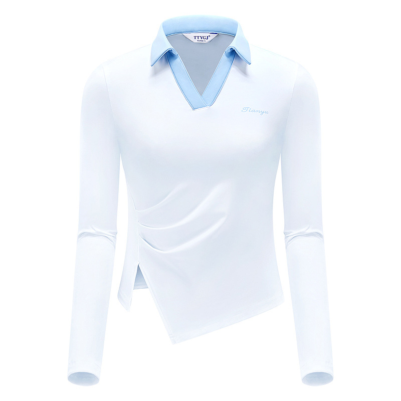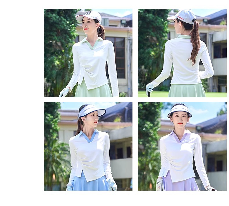공장 도매 골프 여성 긴팔 티셔츠 폴로 셔츠 빠른 건조 V 넥 슬림 스트레치 슬림 탑 의류스토어 가기