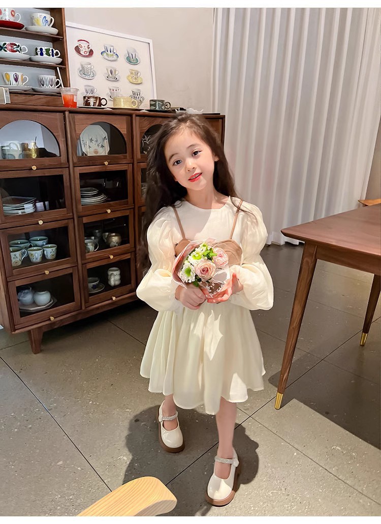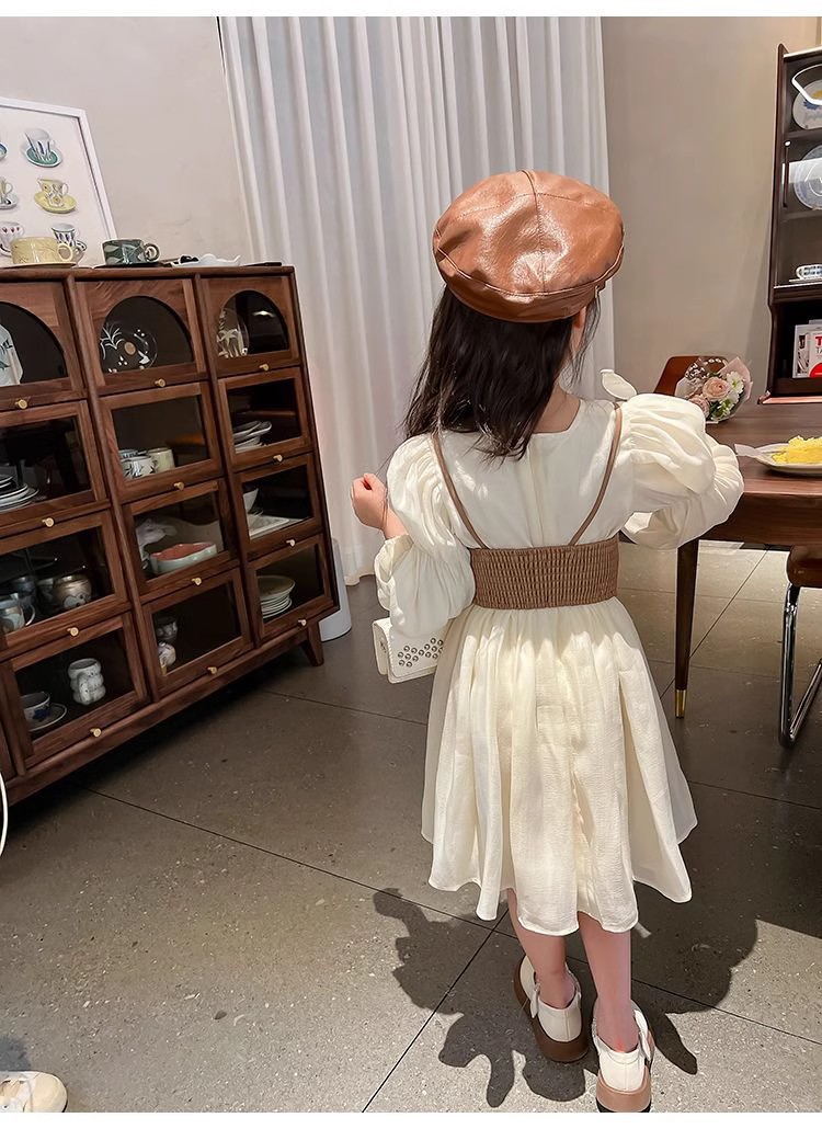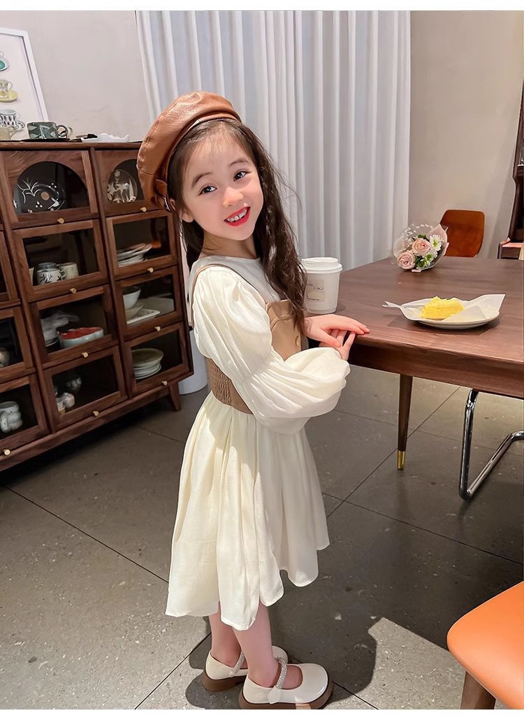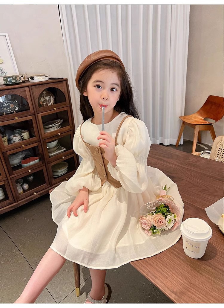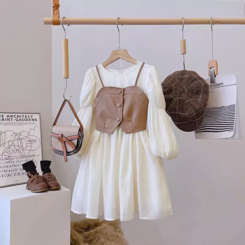 여자 드레스 가을 새로운 스타일 2025 서양식 PU 가죽 조끼 + 긴팔 쉬폰 스커트 공주 드레스 정장 재고 있음