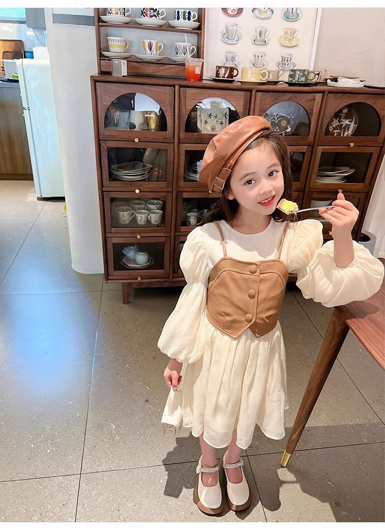 여자 드레스 가을 새로운 스타일 2025 서양식 PU 가죽 조끼 + 긴팔 쉬폰 스커트 공주 드레스 정장 재고 있음스토어 가기