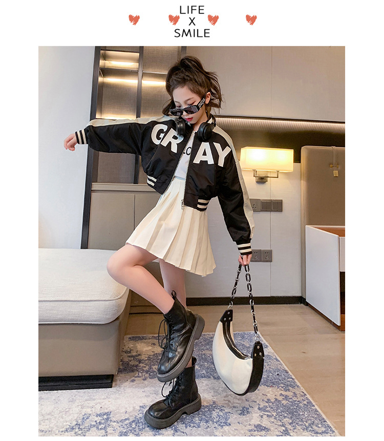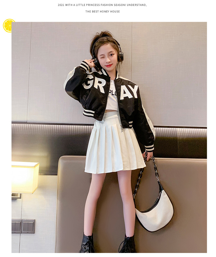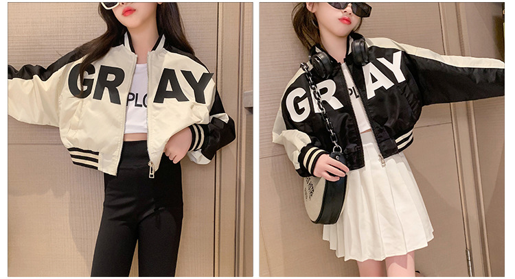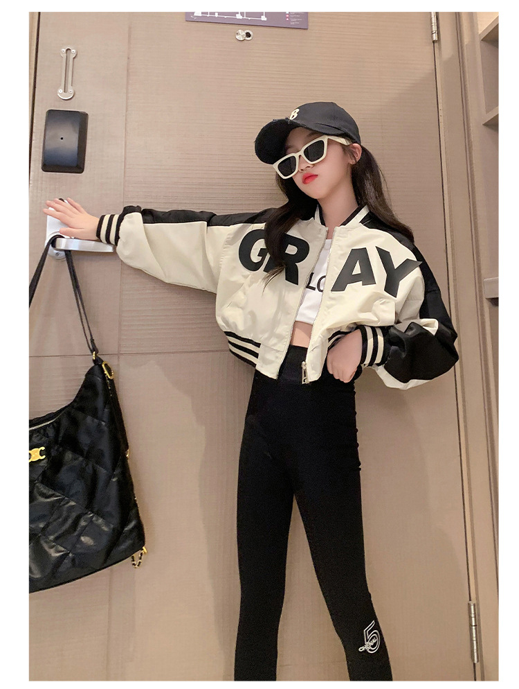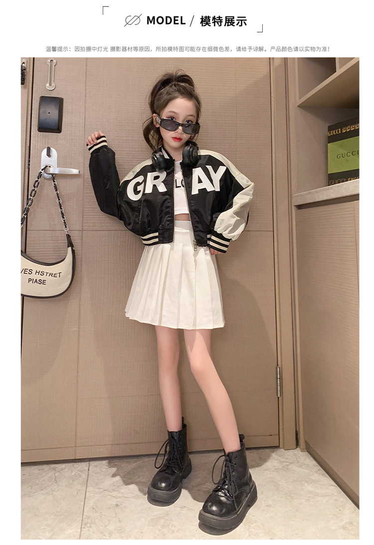 여아 가을 코트 2023 새로운 유행 서양 스타일 야구 세트 재킷 유행 미드 빅 어린이 봄과 가을 오토바이 세트스토어 가기