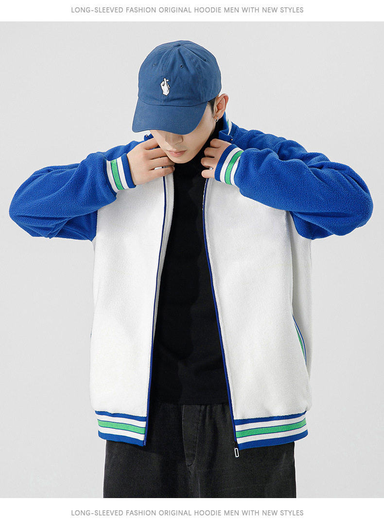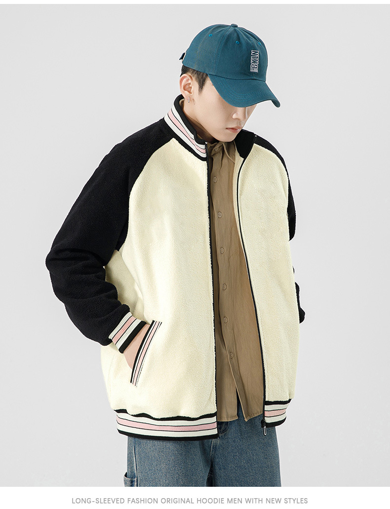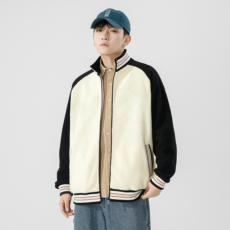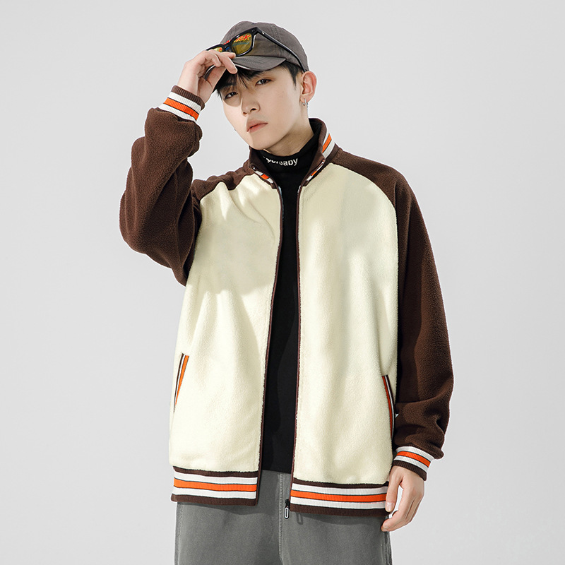 남자 카디건 스웨터 오스트리아 곡물 벨벳 가을과 겨울 색상 분할 칼라 지퍼 느슨한 입자 벨벳 따뜻한 두꺼운 재킷