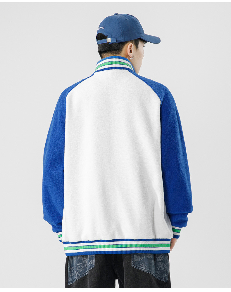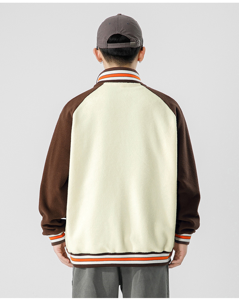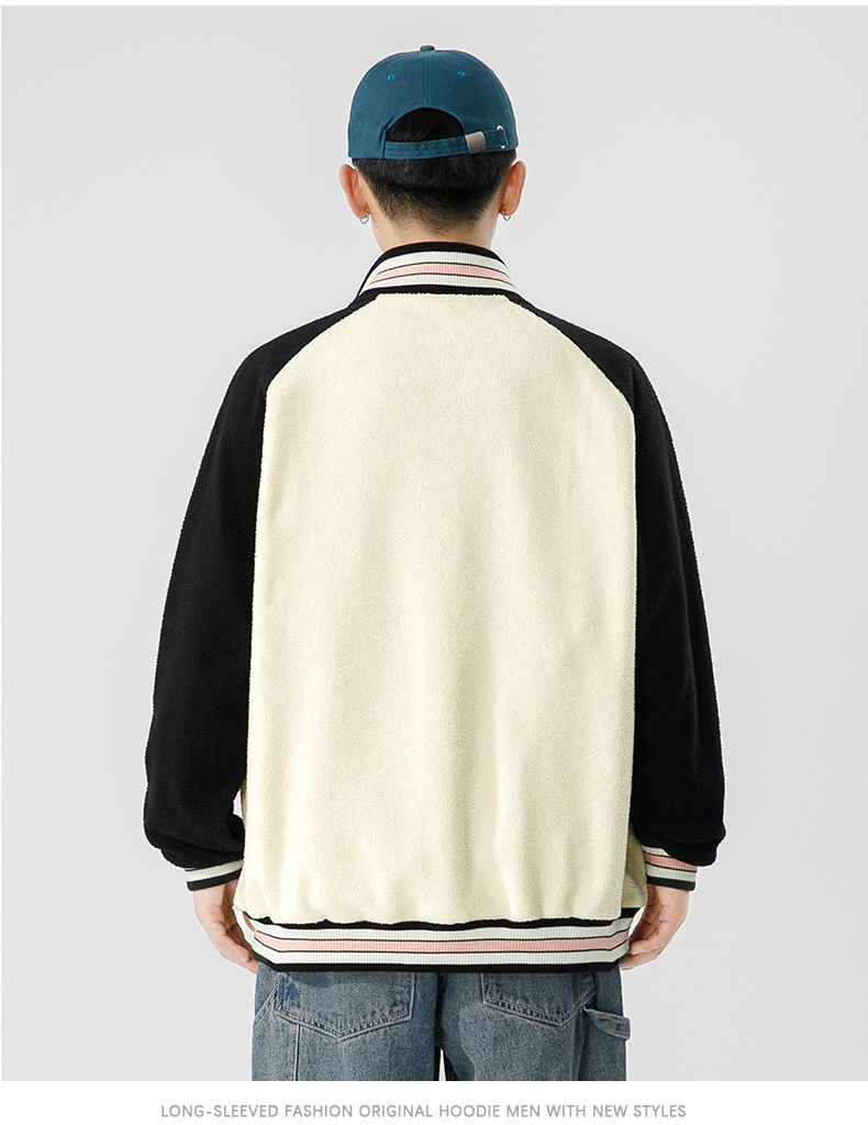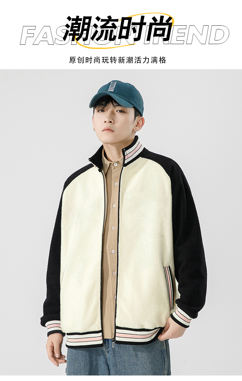 남자 카디건 스웨터 오스트리아 곡물 벨벳 가을과 겨울 색상 분할 칼라 지퍼 느슨한 입자 벨벳 따뜻한 두꺼운 재킷