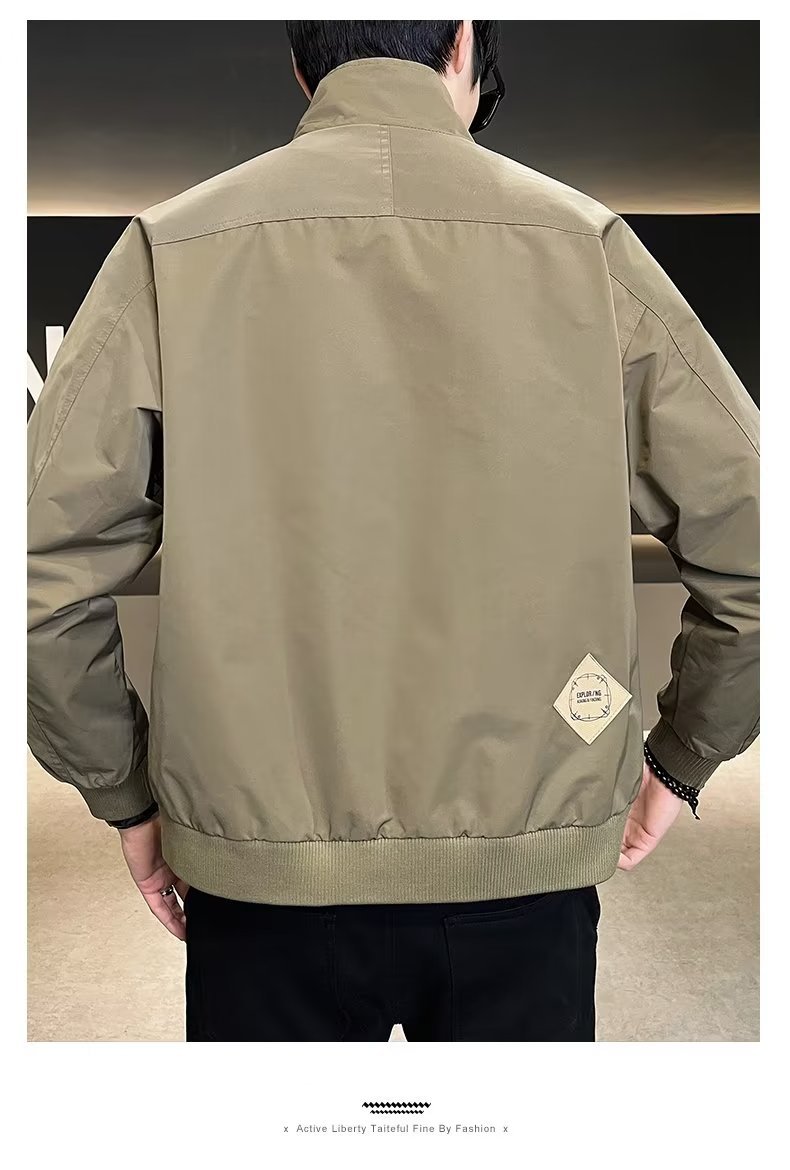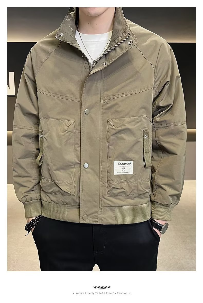 봄과 가을 스탠드 칼라 재킷 남자의 2023 가을 새로운 느슨한 캐주얼 남자의 작업 재킷 남자의 짧은 옷스토어 가기