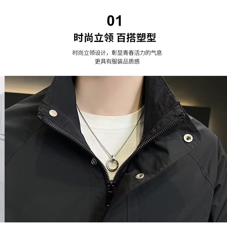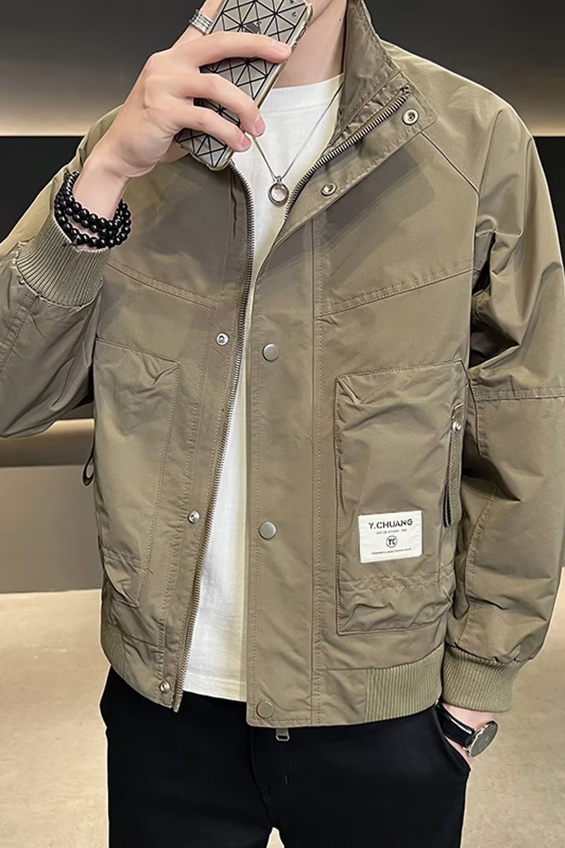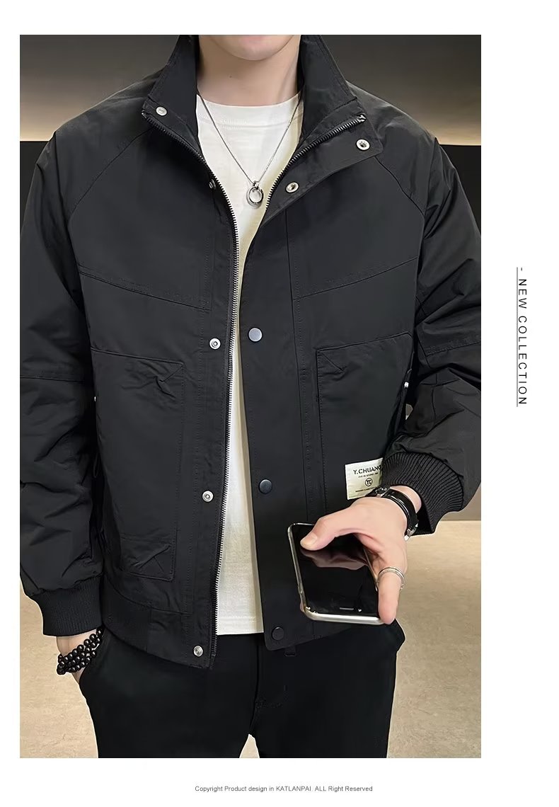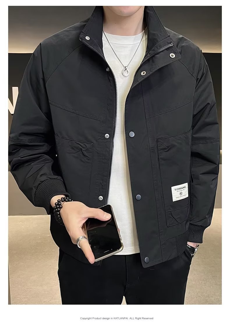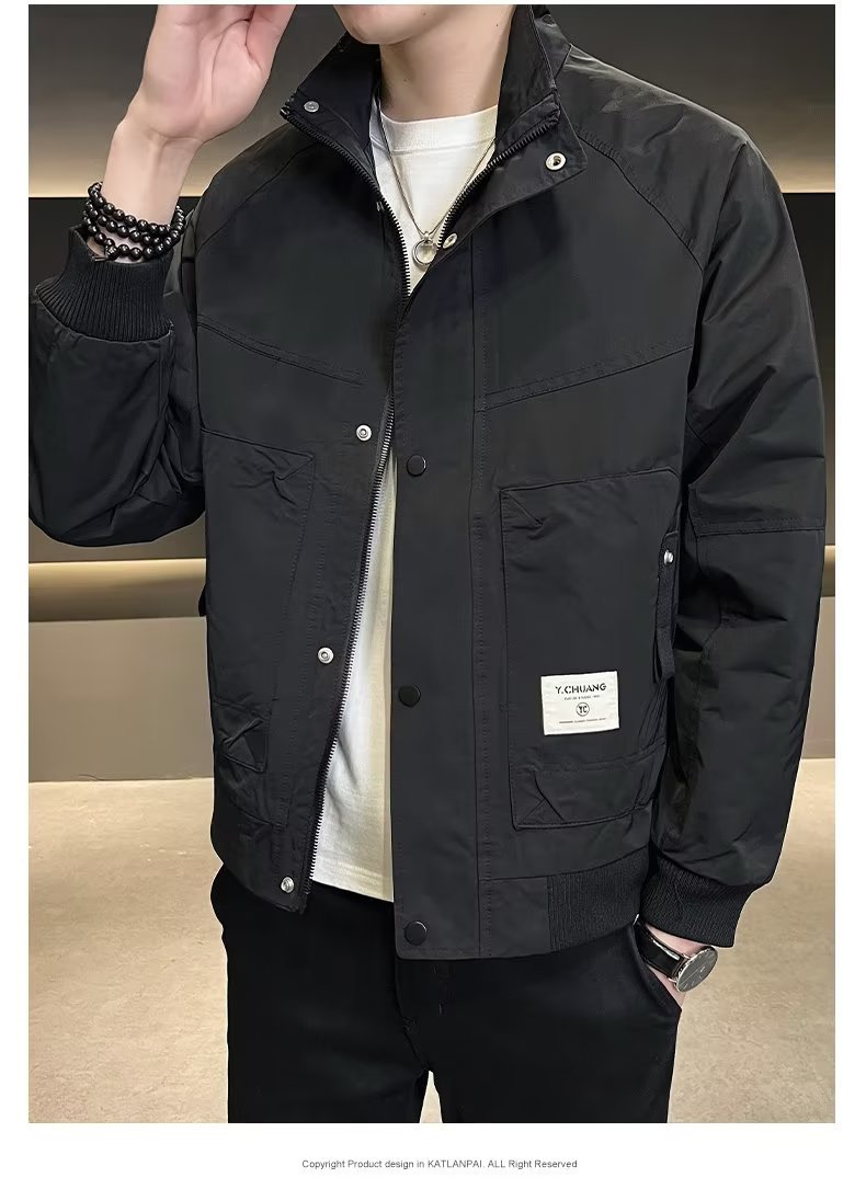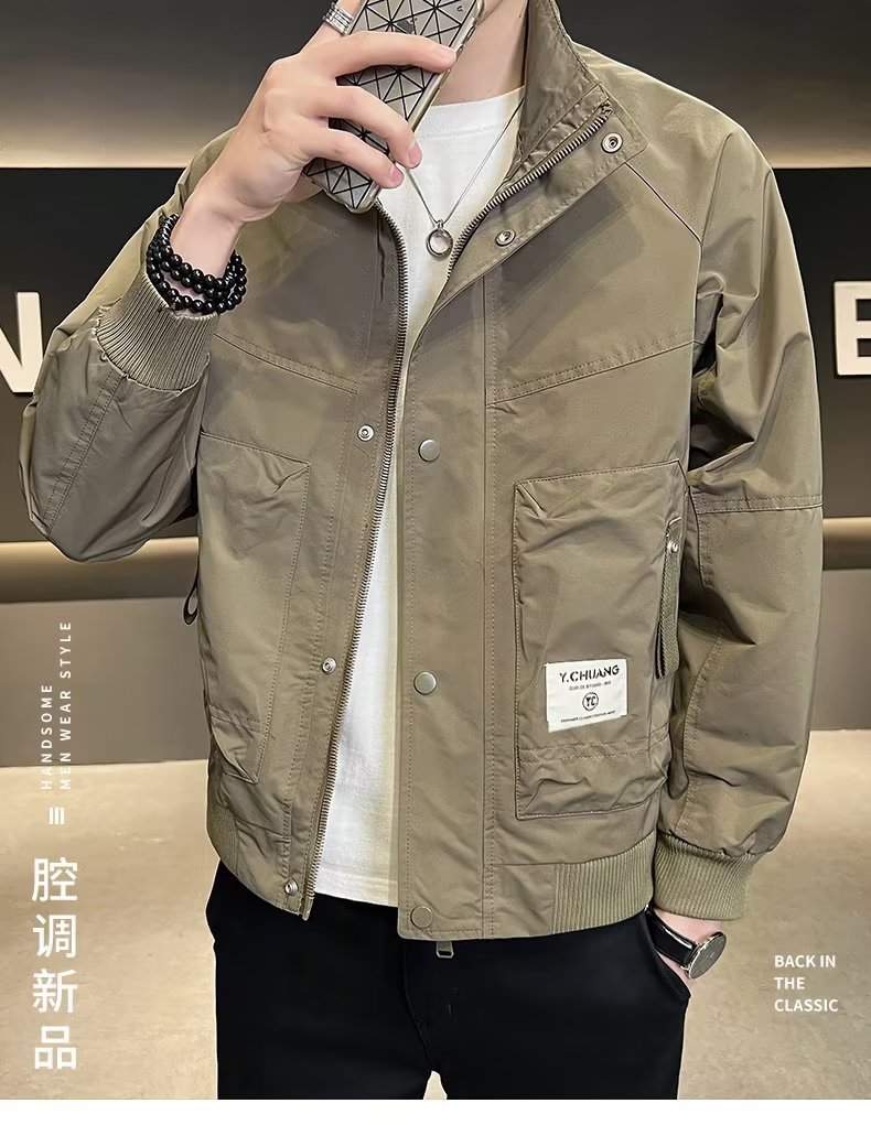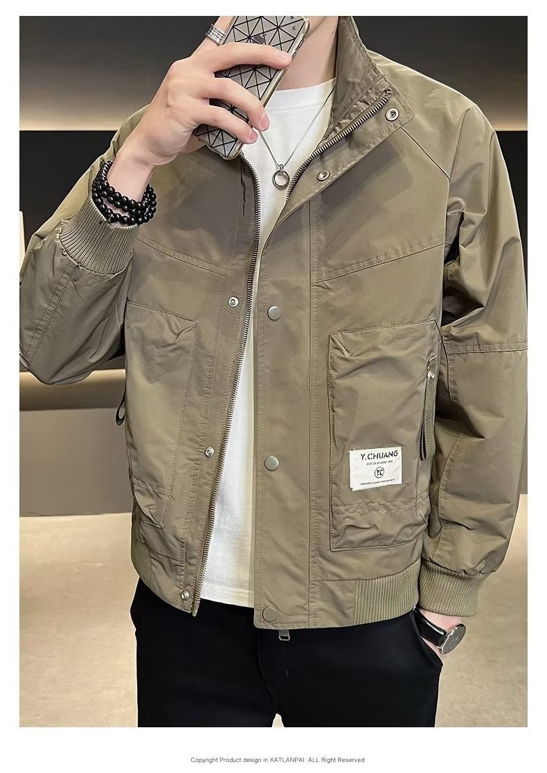봄과 가을 스탠드 칼라 재킷 남자의 2023 가을 새로운 느슨한 캐주얼 남자의 작업 재킷 남자의 짧은 옷