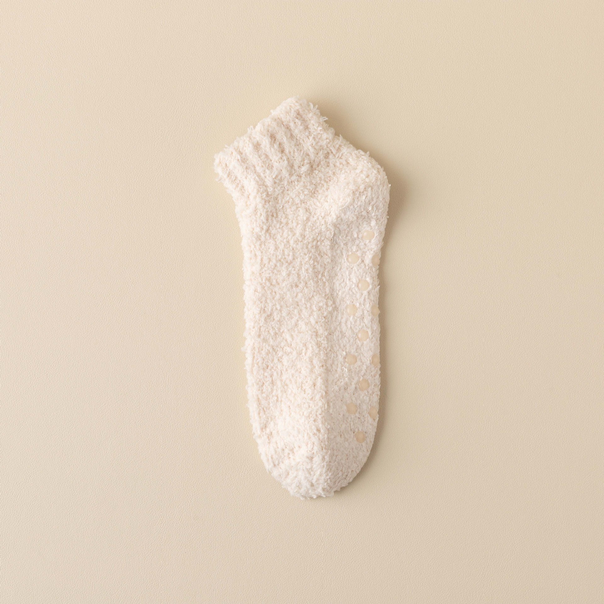 단색 산호 양털 디스펜서 양말 여자의 겨울 기모 두꺼운 따뜻한 미끄럼 방지 바닥 양말 짧은 튜브 문 양말