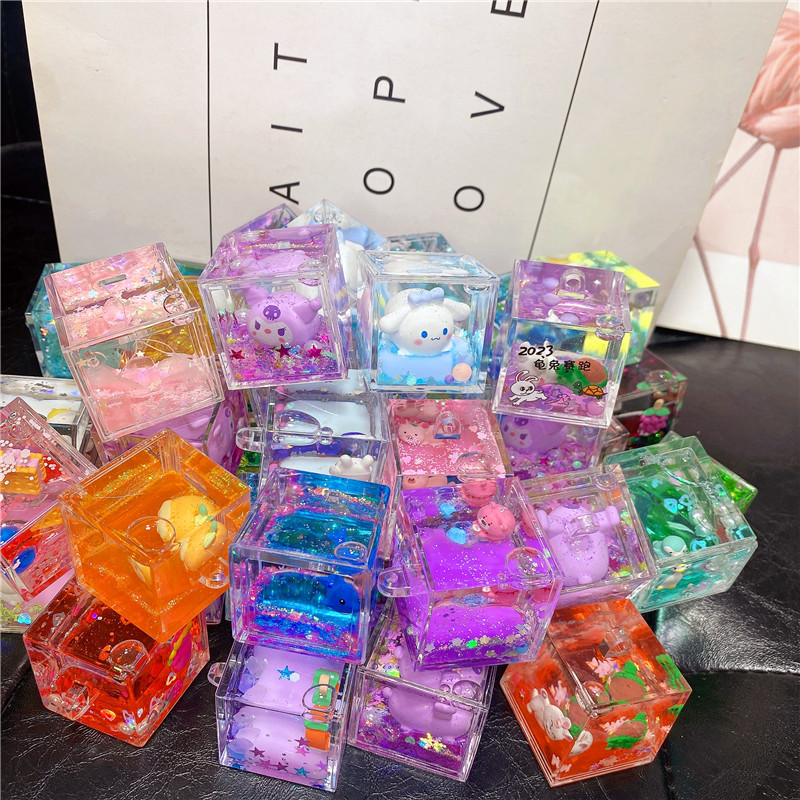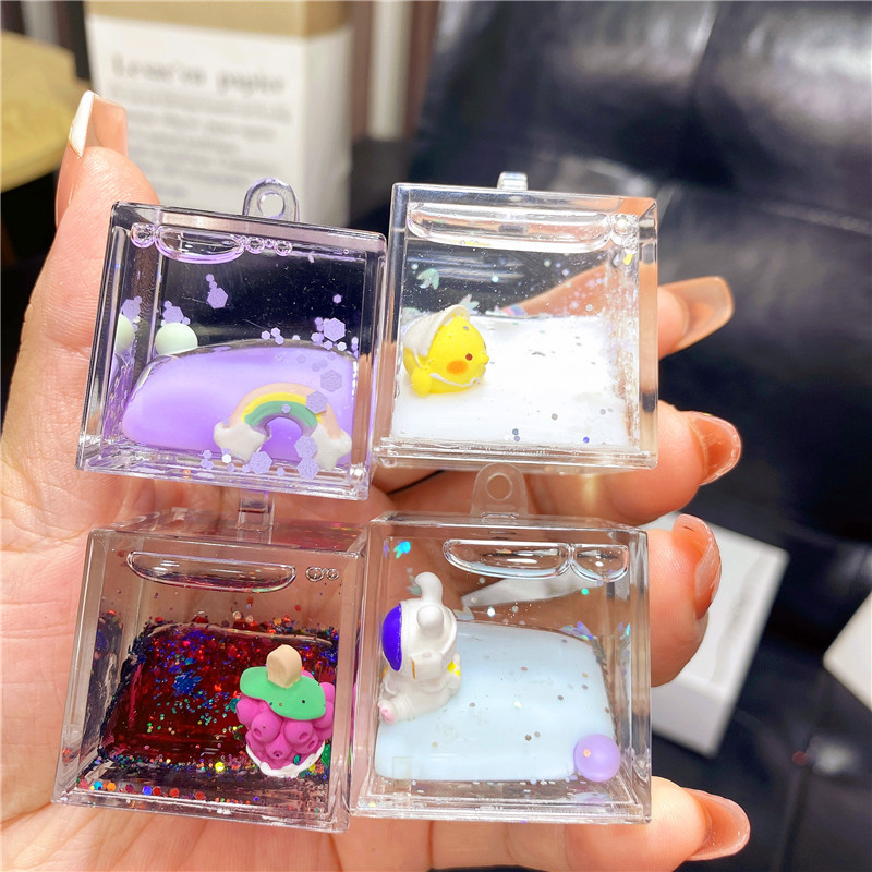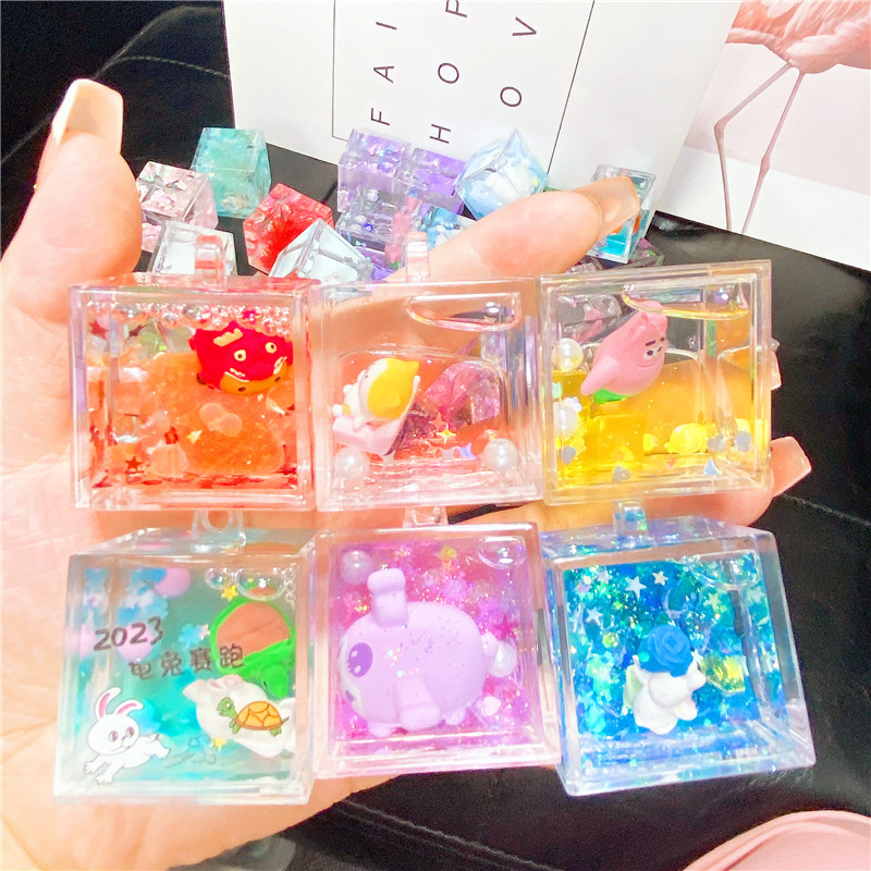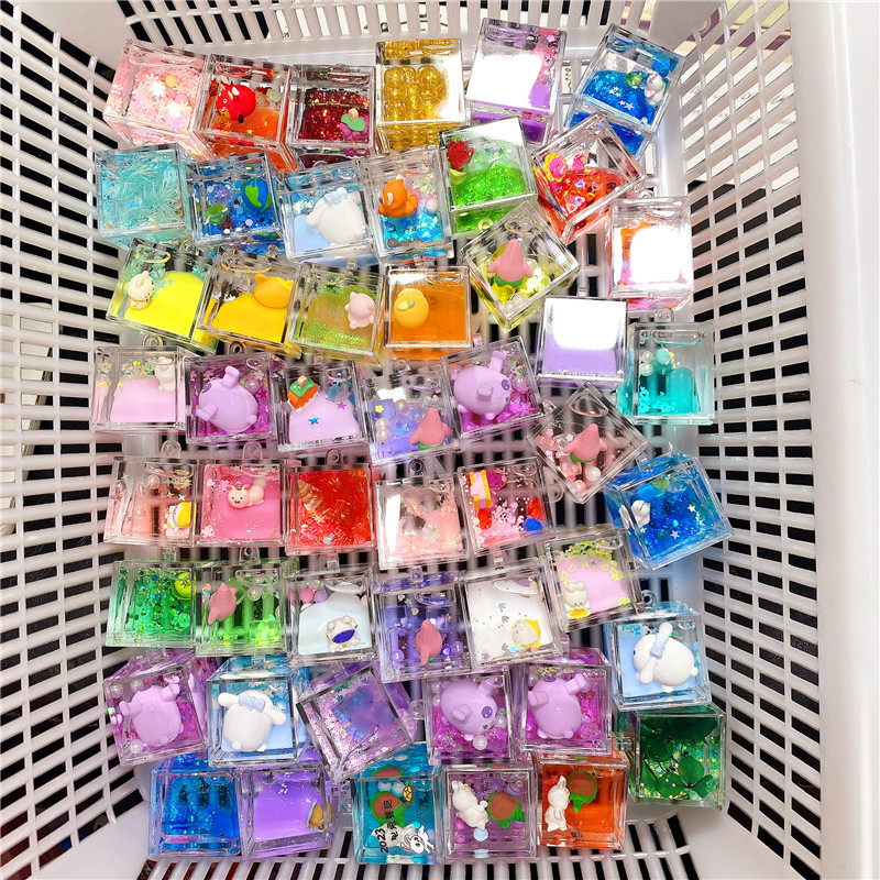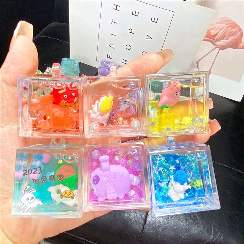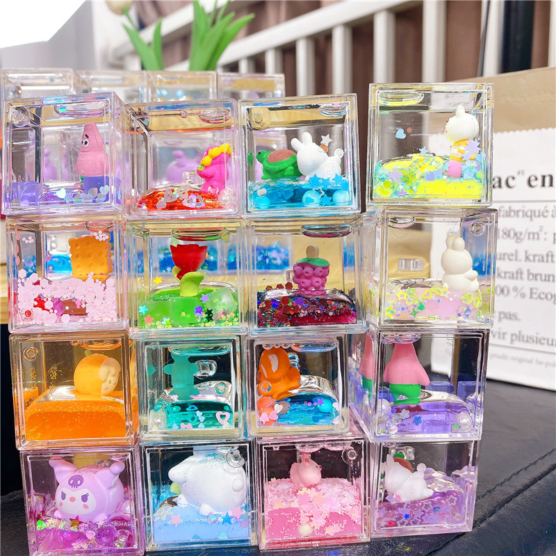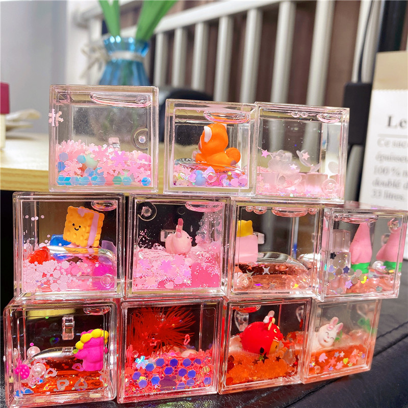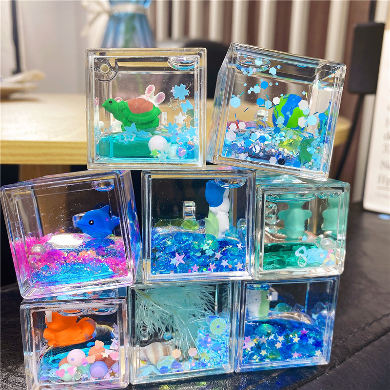 온라인 유명 인사 액체 오일 퀵 샌드 벽돌 사각형 장식 플로팅 병 어린이 장난감 책 가정용 데스크탑 장식 블라인드 가방스토어 가기
