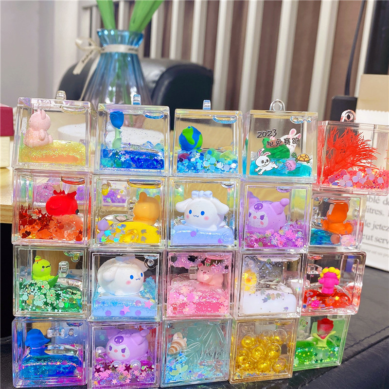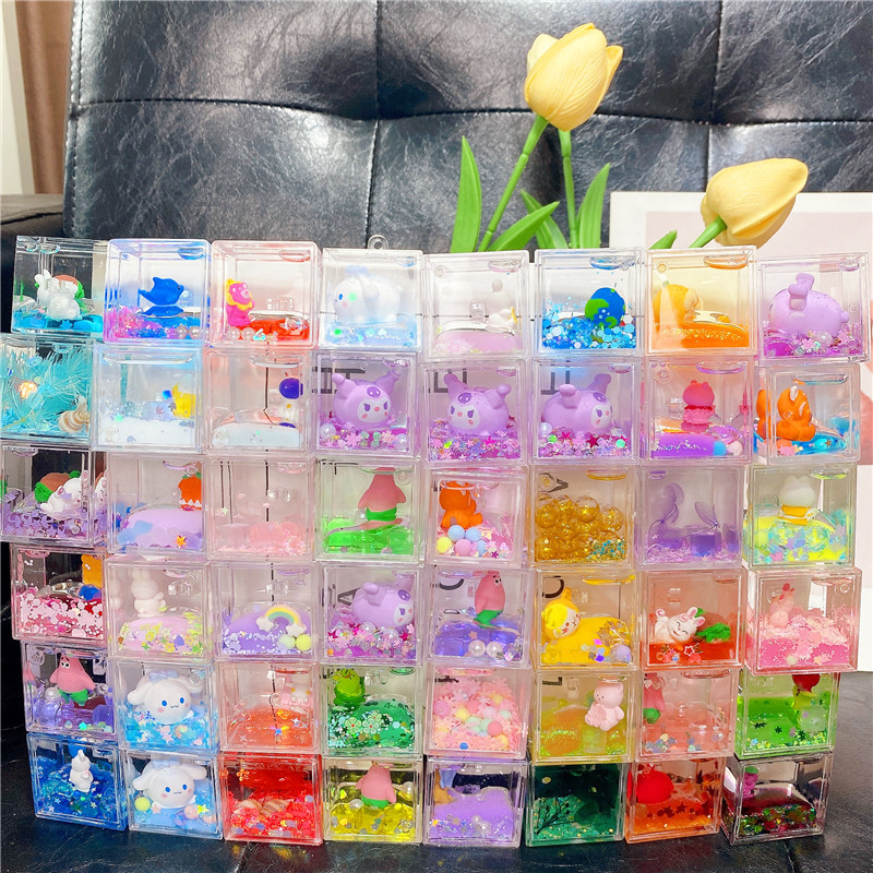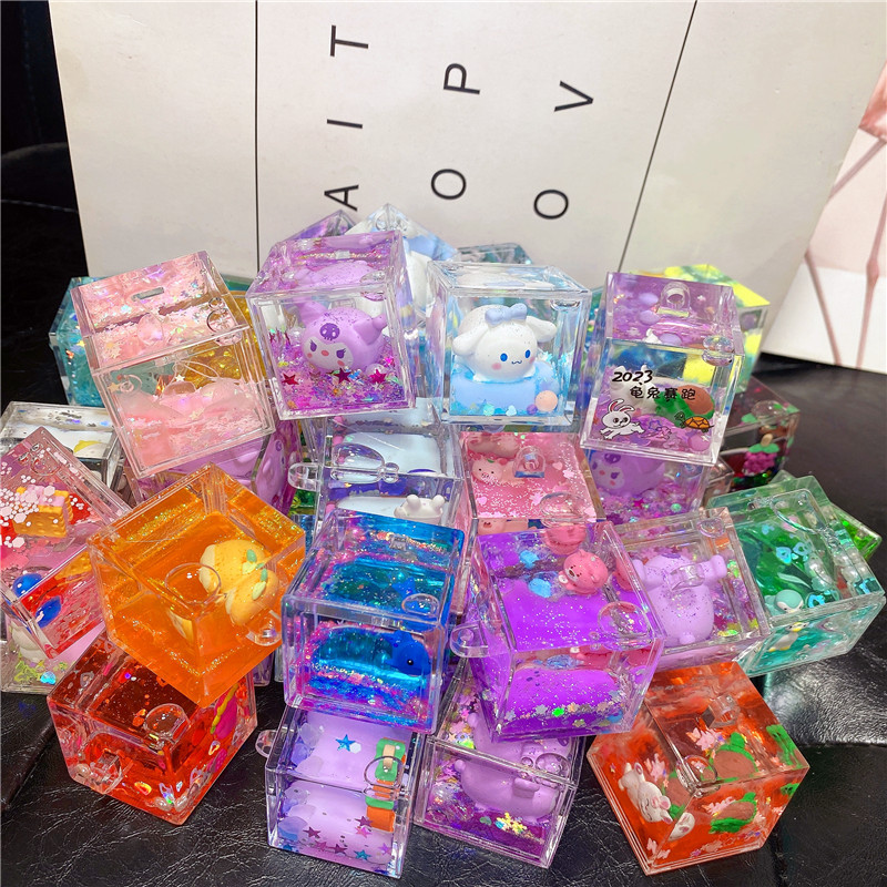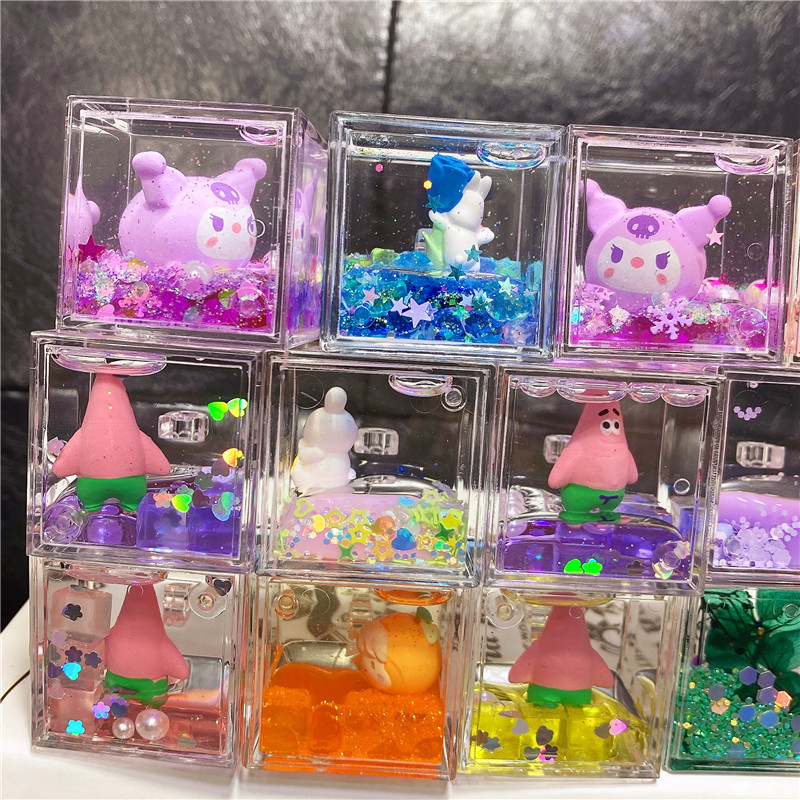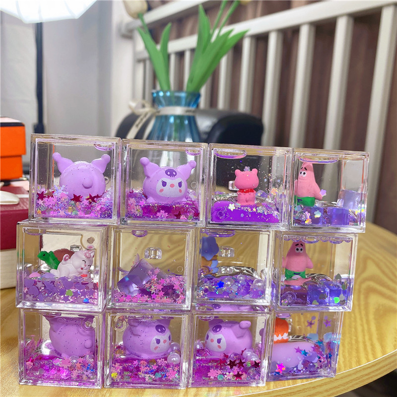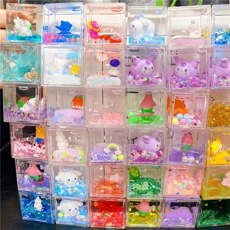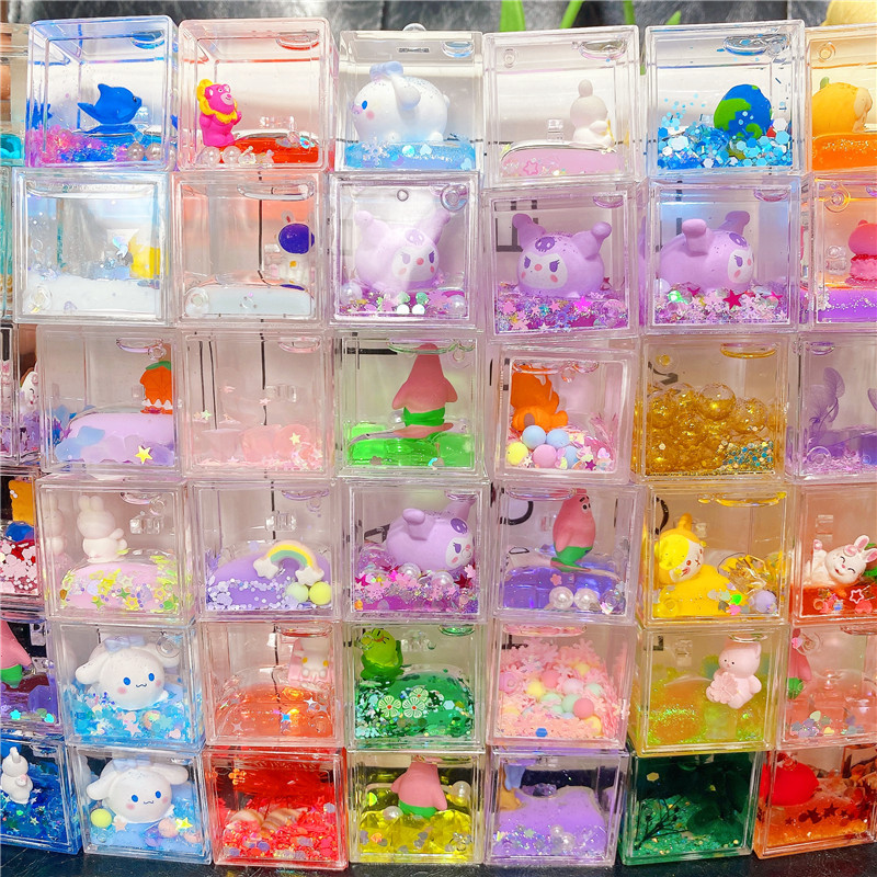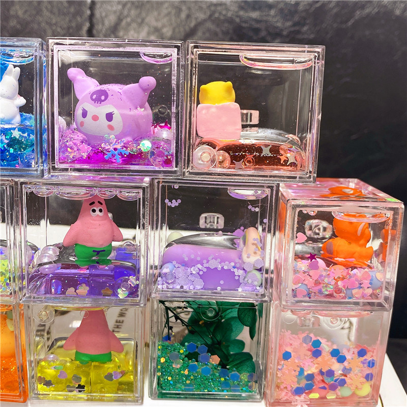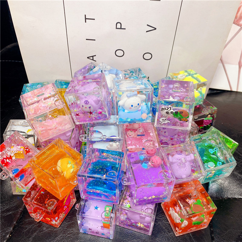온라인 유명 인사 액체 오일 퀵 샌드 벽돌 사각형 장식 플로팅 병 어린이 장난감 책 가정용 데스크탑 장식 블라인드 가방스토어 가기