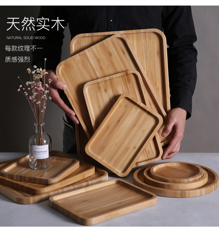 대나무 나무 쟁반 창조적 인 대나무 피자 티 트레이 일본식 직사각형 가정용 케이크 빵 단단한 나무 대나무 쟁반