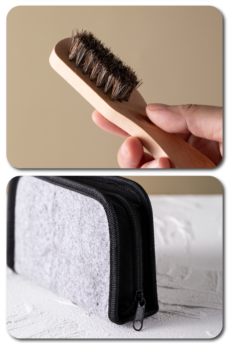 호텔 가죽 신발 관리 도구 신발 광택 신발 브러쉬 세트 벨트 가방 말 머리 신발 브러쉬 편리한 펠트 가방 보관 가방