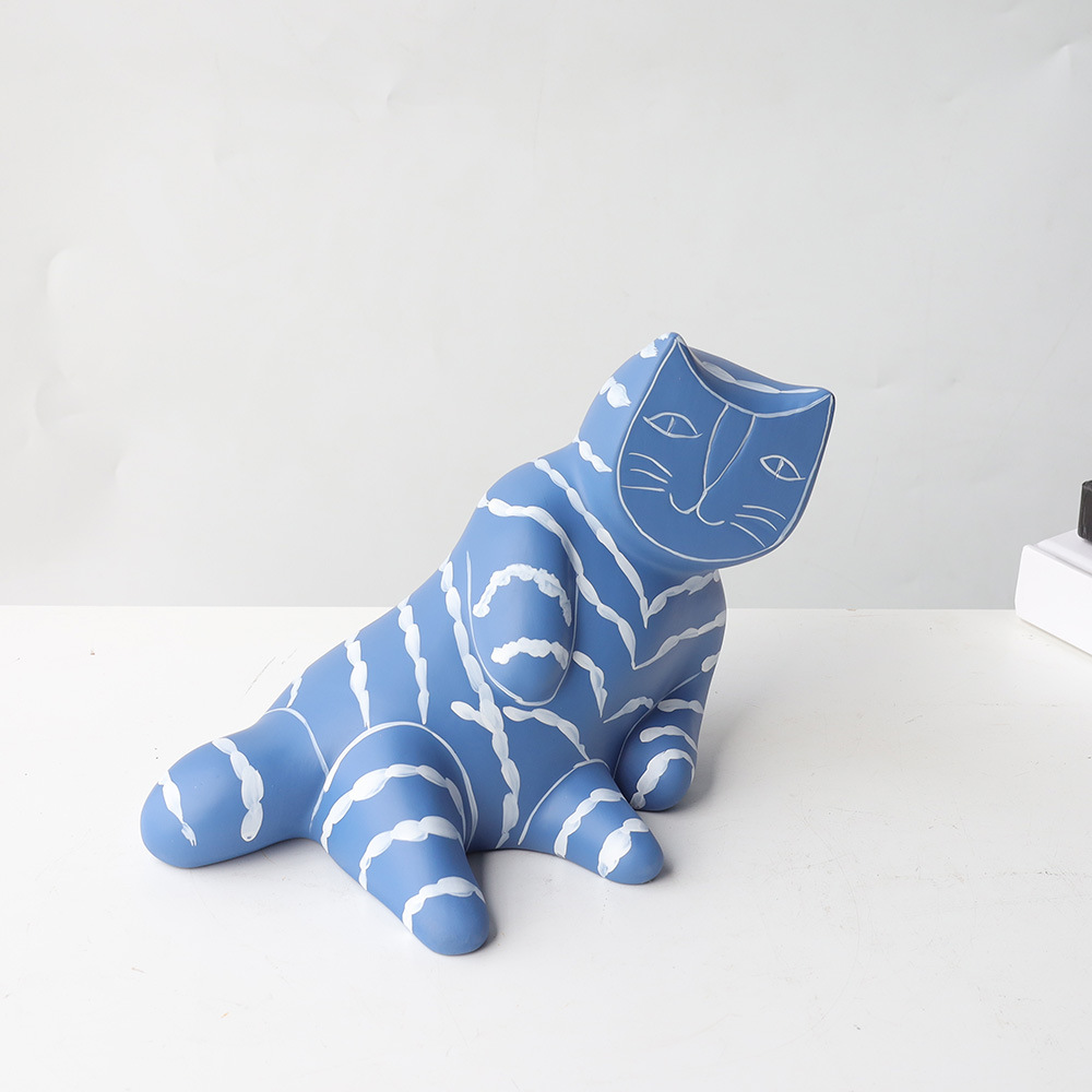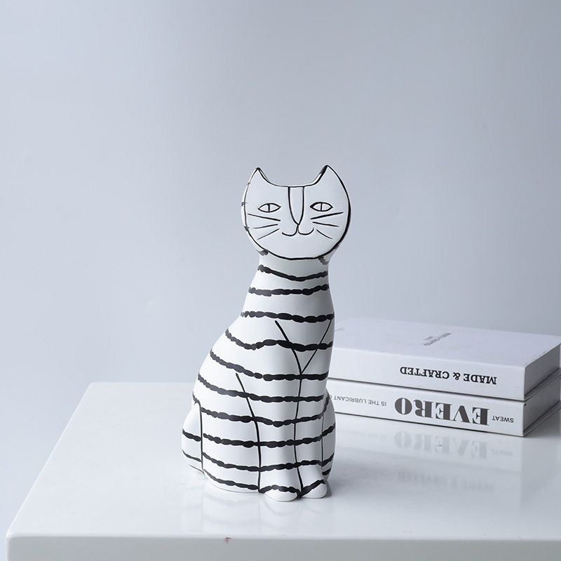 현대 북유럽 스타일 홈 데스크탑 장식 거실 입구 TV 캐비닛 수지 줄무늬 평면 얼굴 고양이 동물 장식품