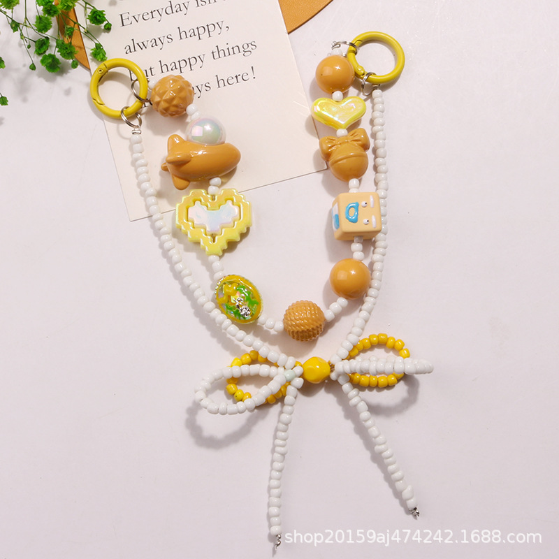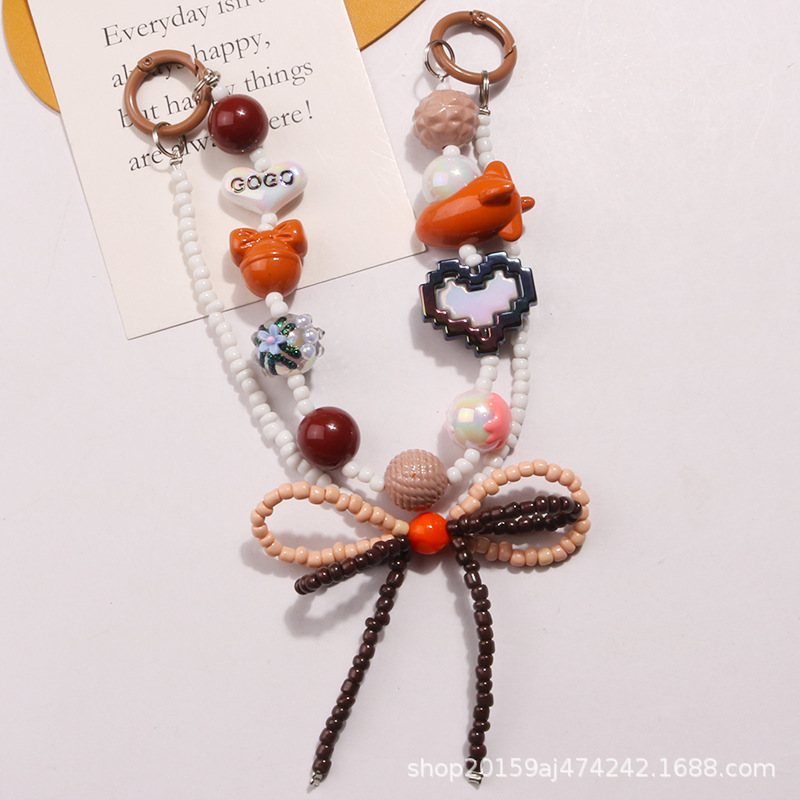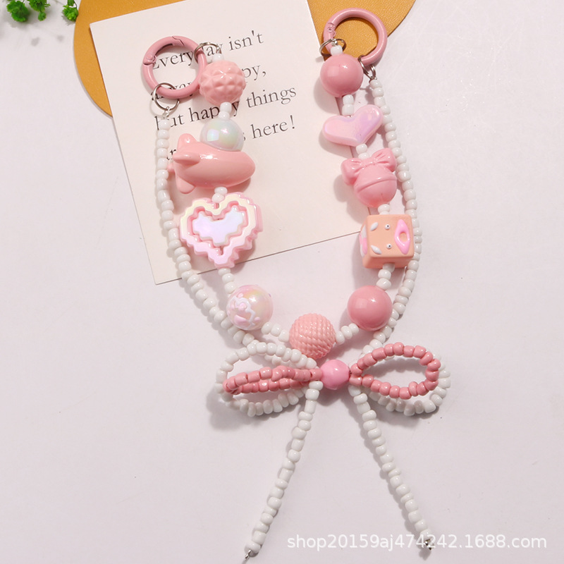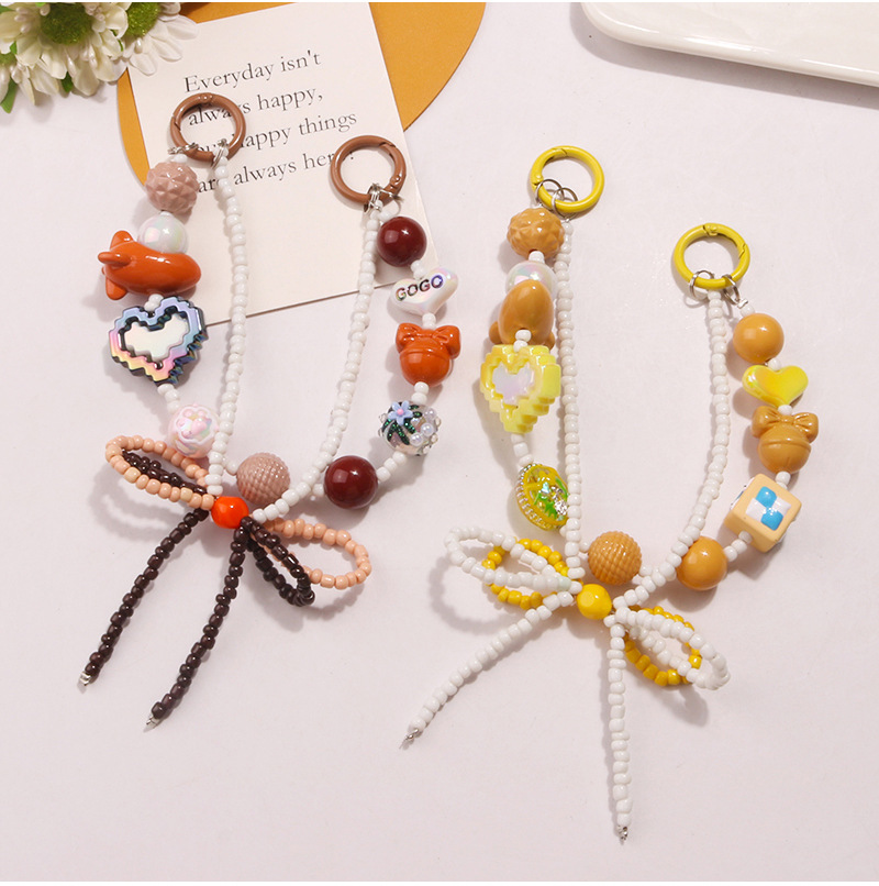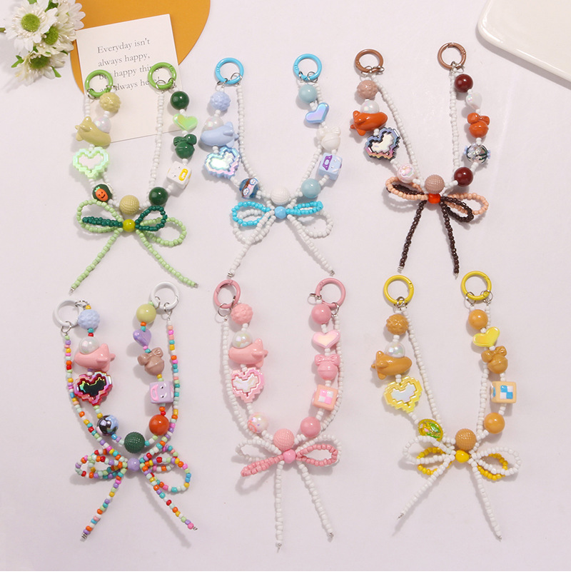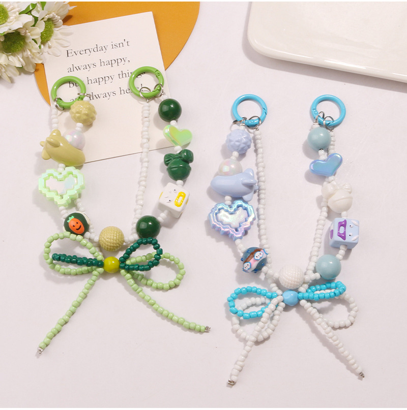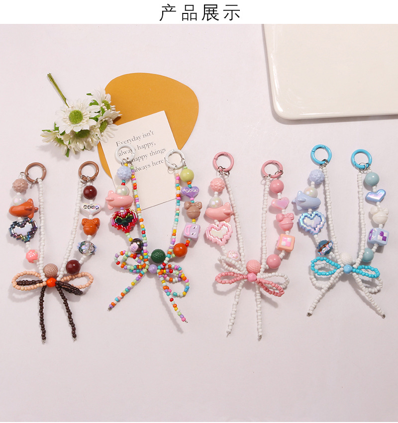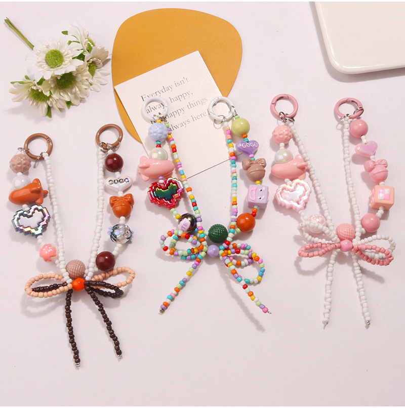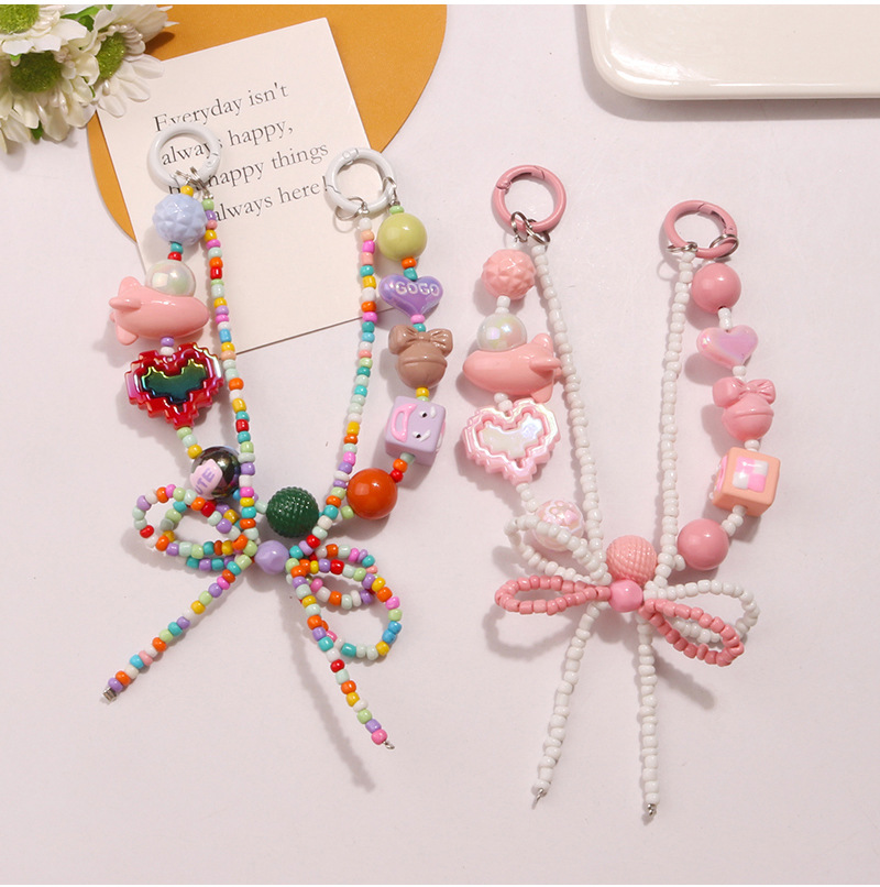 새로운 아크릴 손으로 그린 비즈 더블 체인 키 체인 펜던트 다채로운 비즈 활 긴 체인 매달려 장식 가방 장식