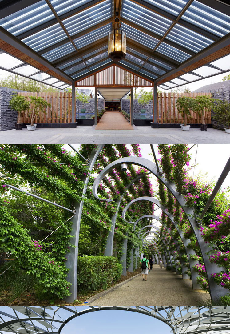 대형 야외 스테인레스 스틸 갤러리 파빌리온 조각 공장 강철 구조 창조적 인 복도 정원 풍경 갤러리스토어 가기