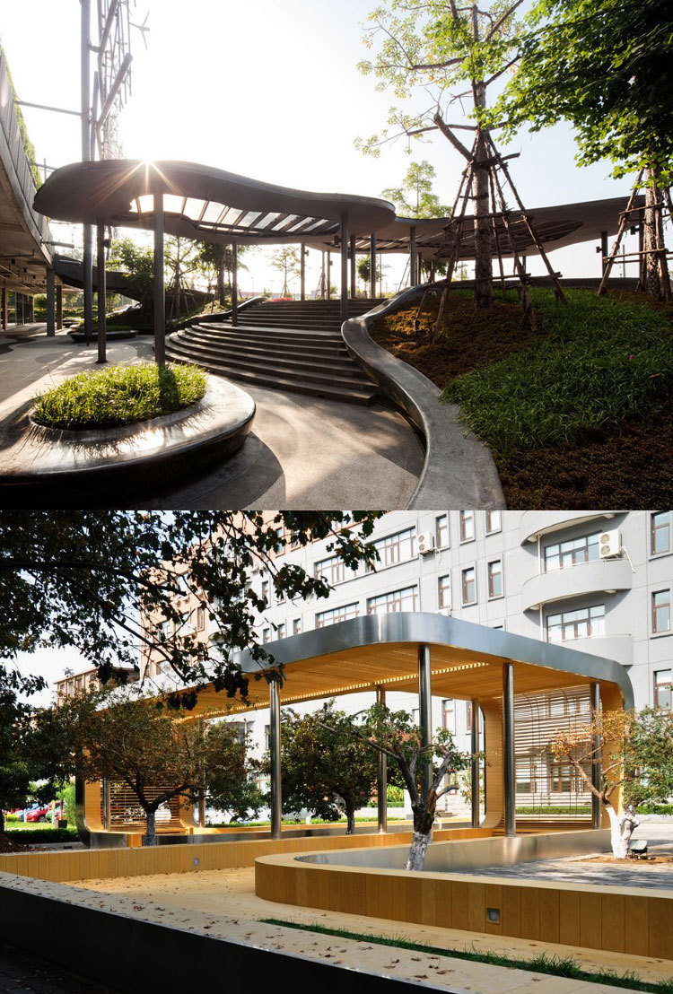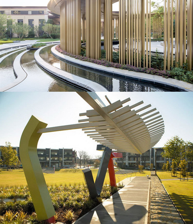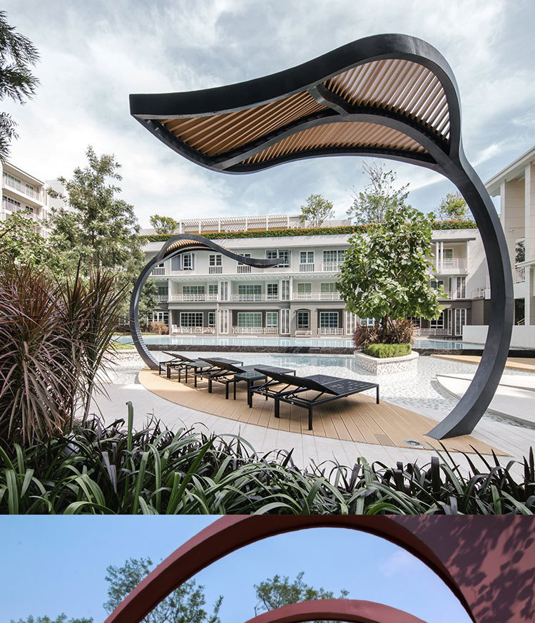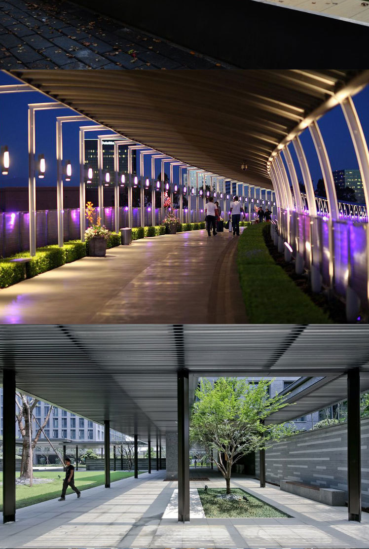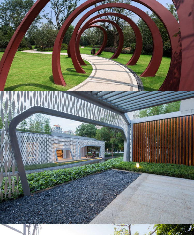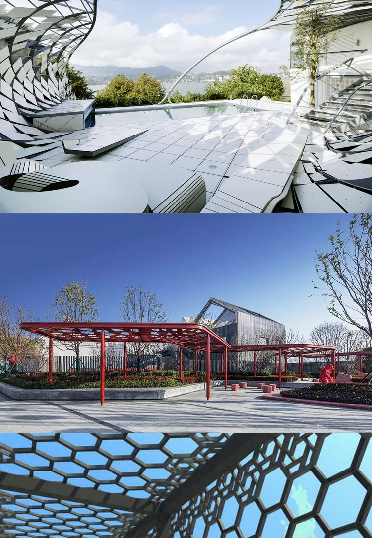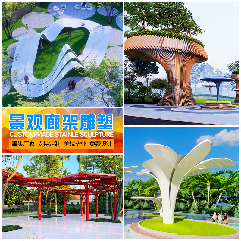 대형 야외 스테인레스 스틸 갤러리 파빌리온 조각 공장 강철 구조 창조적 인 복도 정원 풍경 갤러리