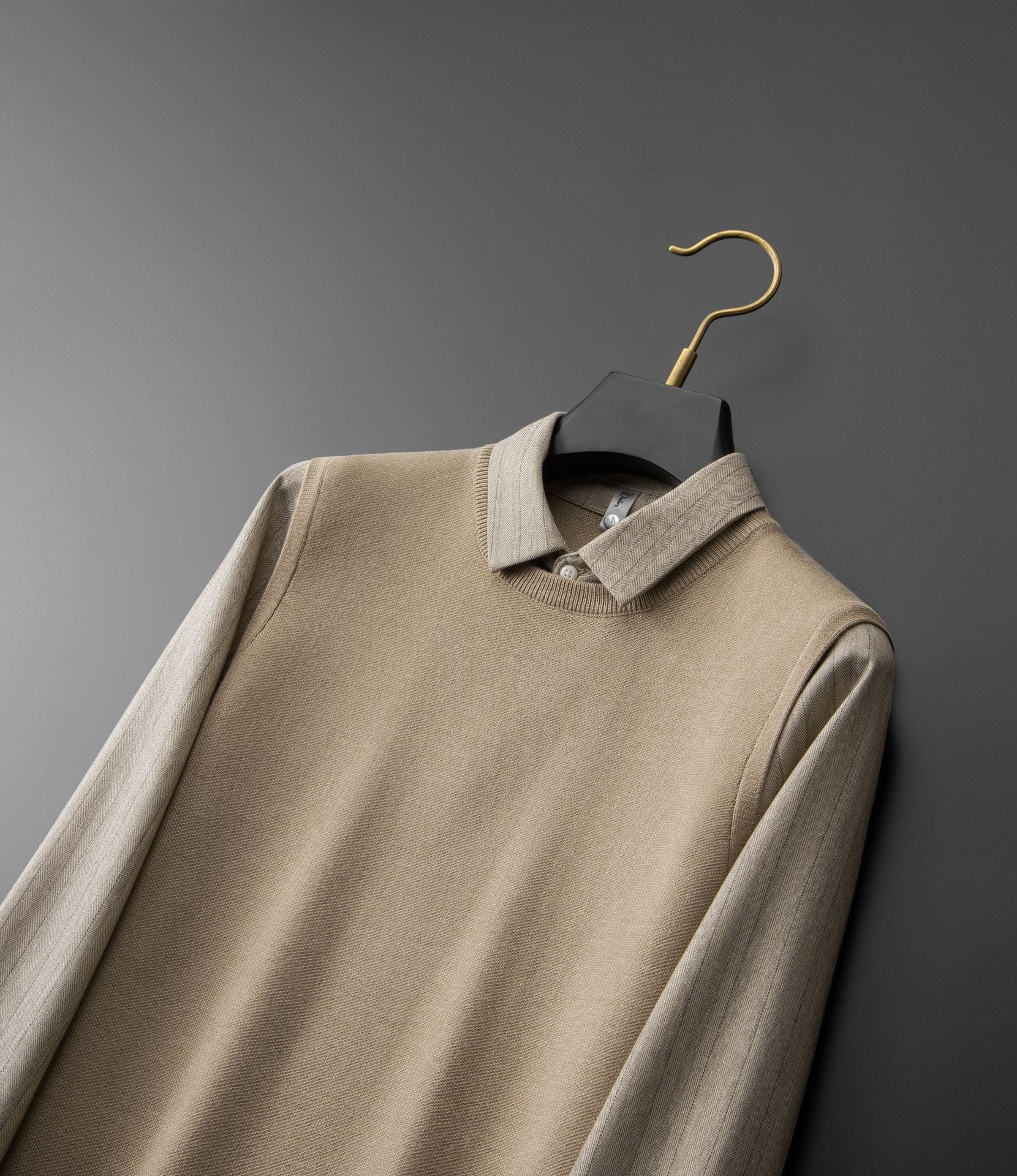 가짜 투피스 스웨터 남성용 유행 겨울 새로운 두꺼운 스트라이프 셔츠 칼라 니트웨어 남성용 슬림핏 스웨터
