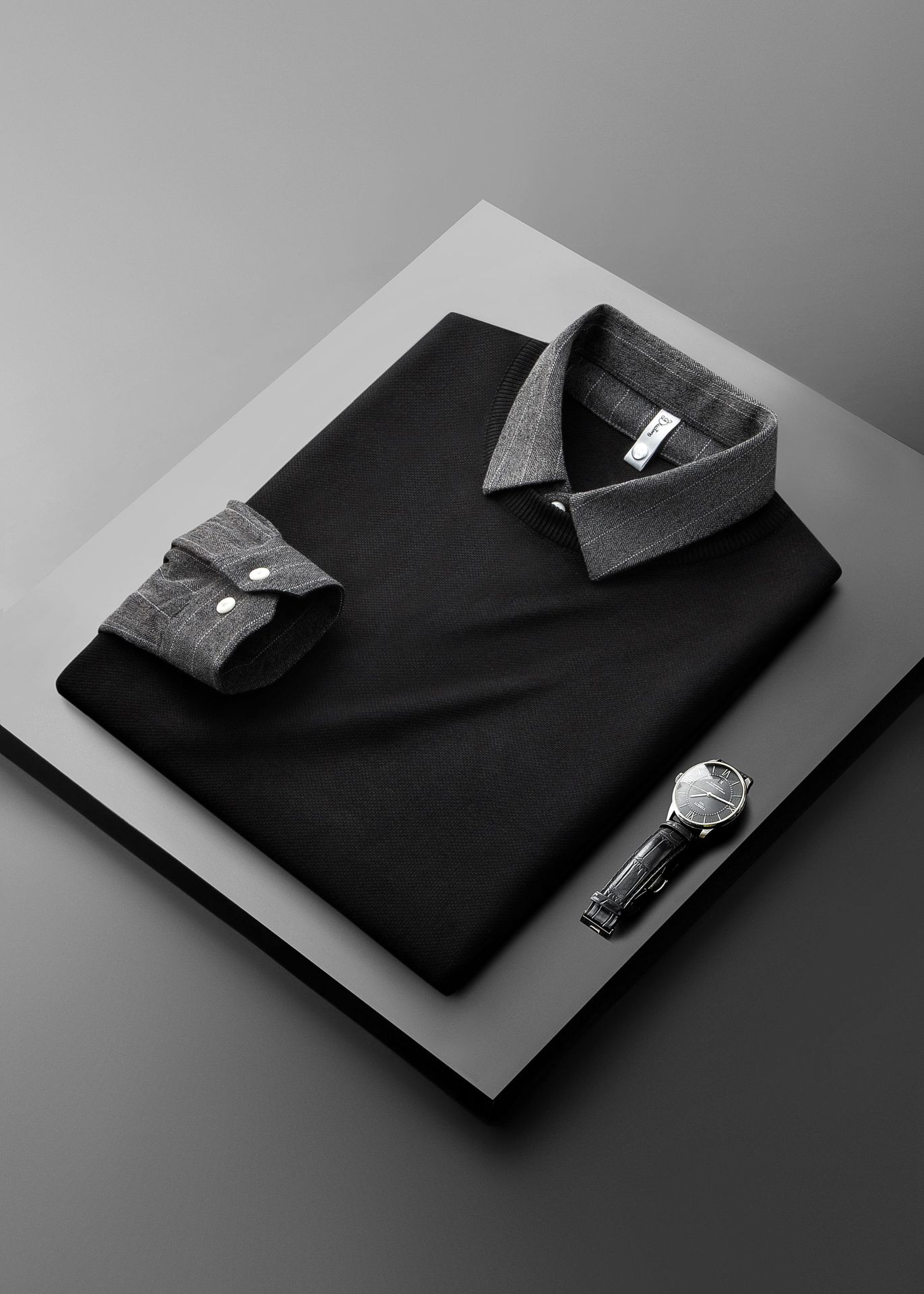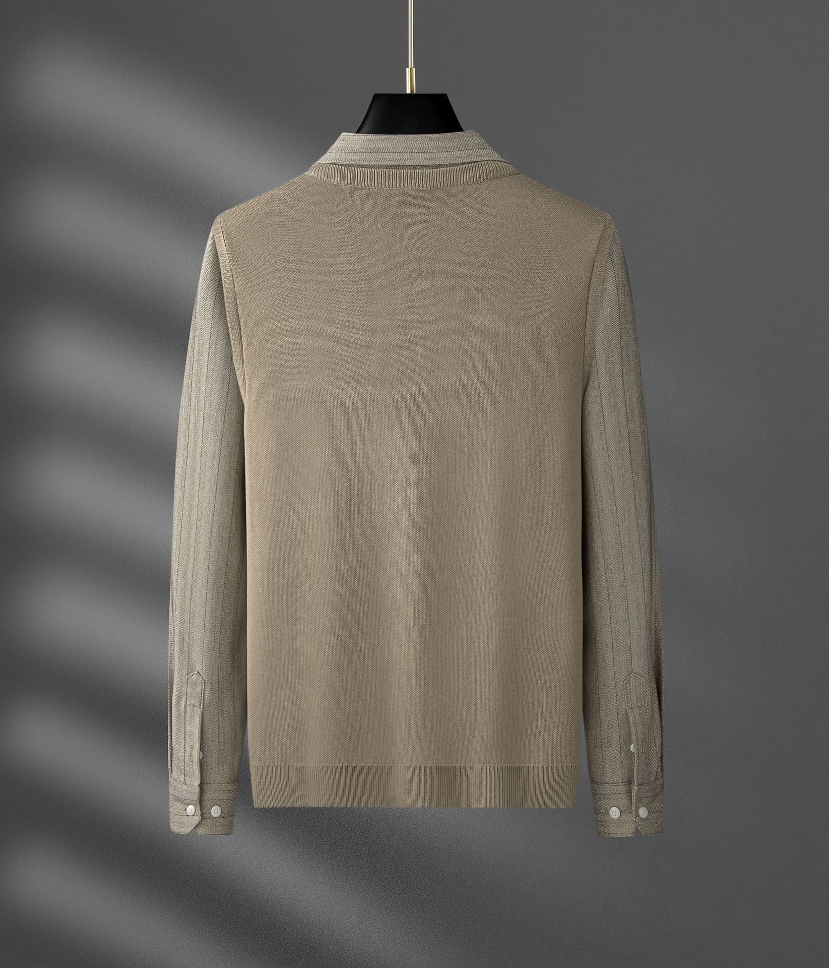 가짜 투피스 스웨터 남성용 유행 겨울 새로운 두꺼운 스트라이프 셔츠 칼라 니트웨어 남성용 슬림핏 스웨터스토어 가기