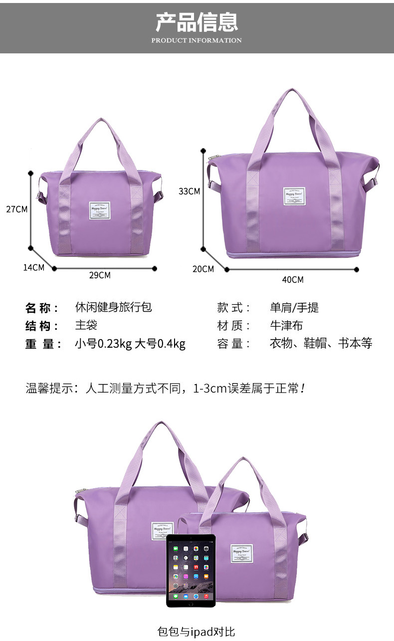 여행 가방 여성의 대용량 경량 출산 보관 단거리 여행 수하물 가방 휴대용 스포츠 요가 피트니스 가방
