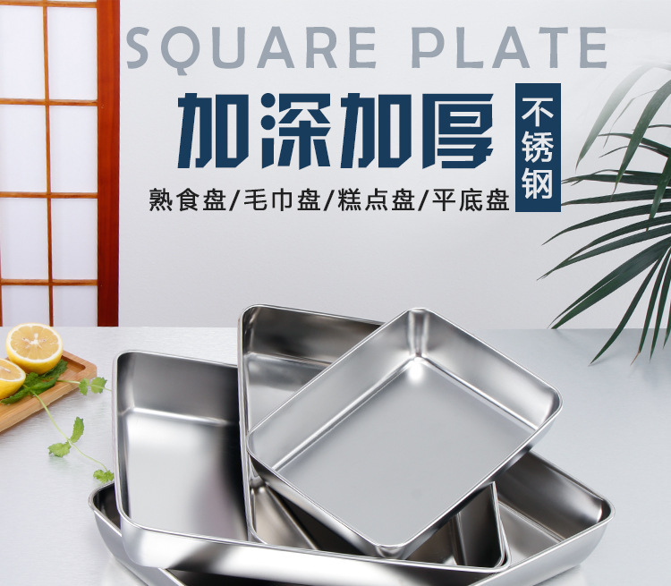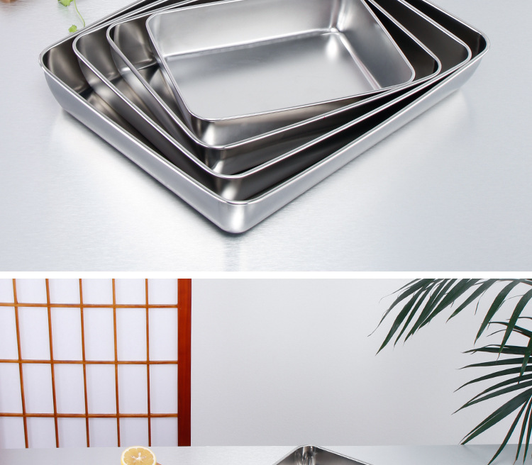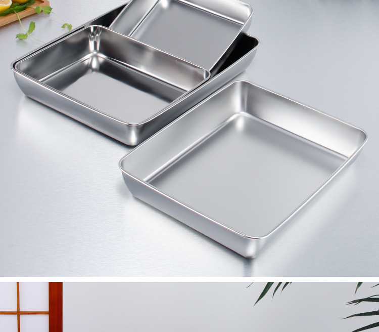티라미수 플레이트 스테인레스 스틸 플랫 바닥 사각형 접시 뚜껑이있는 직사각형 상자 찐 케이크 베이킹 플레이트 요리 식품 접시스토어 가기