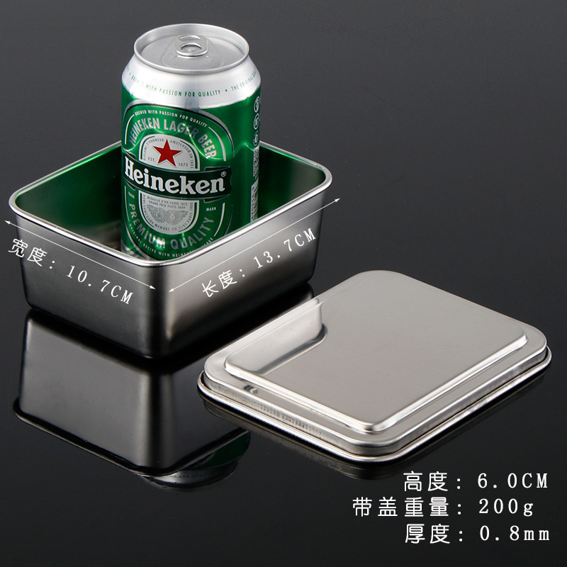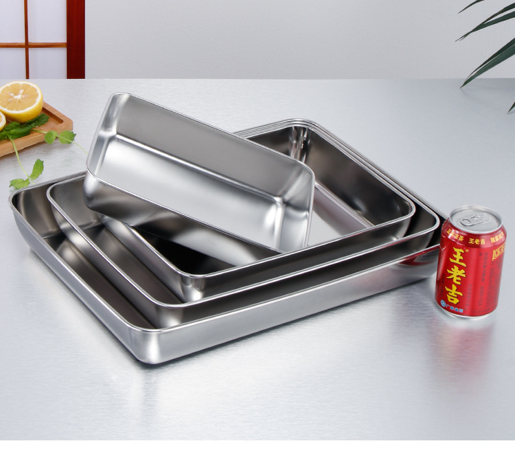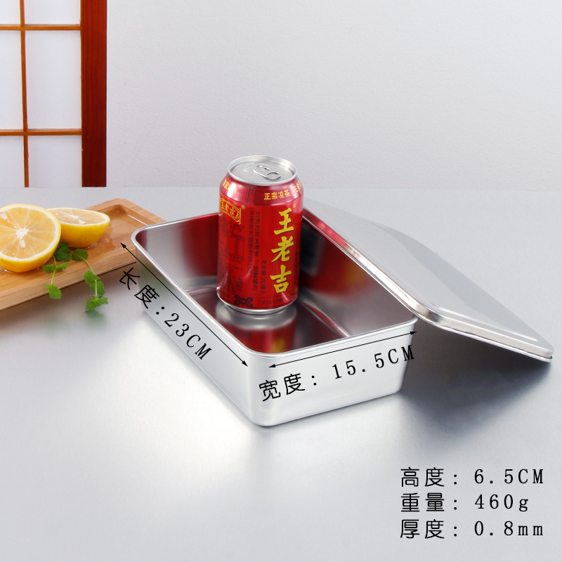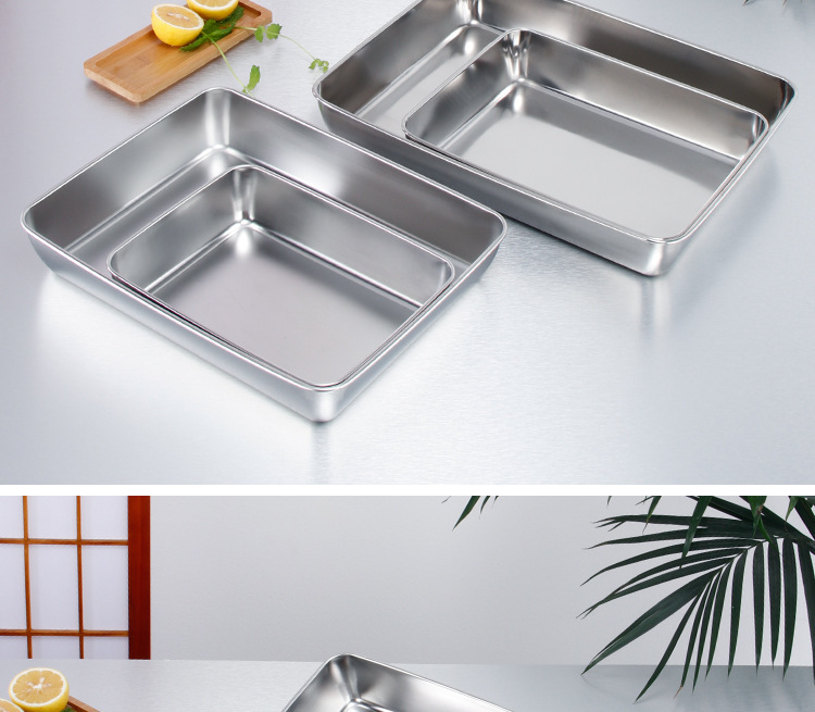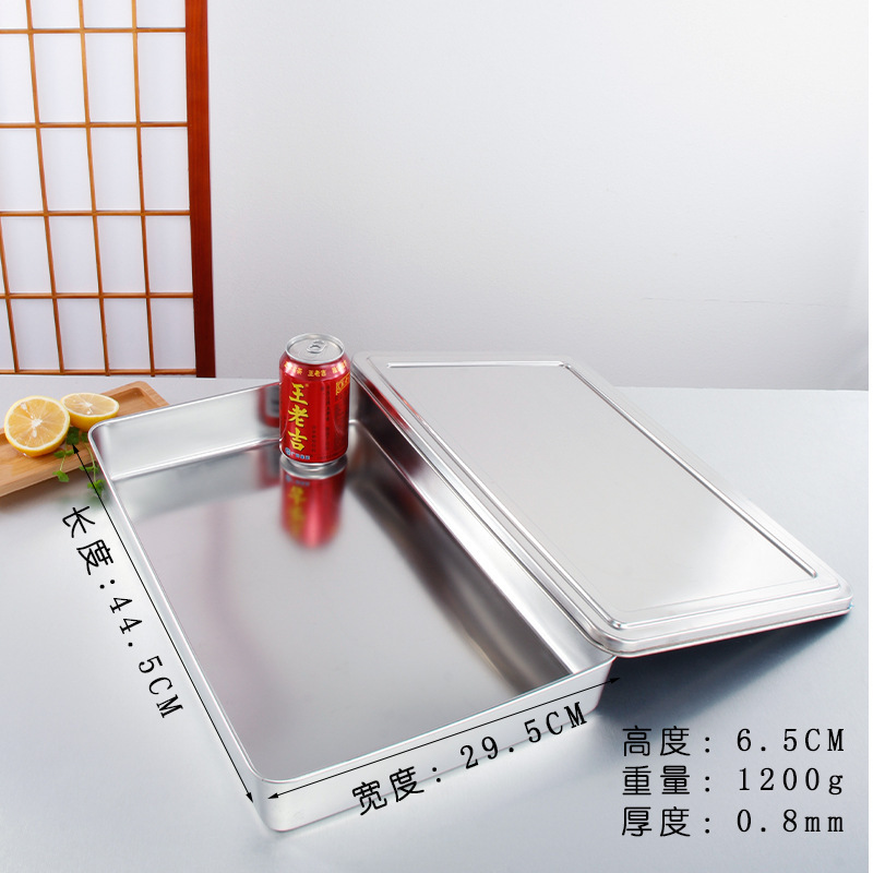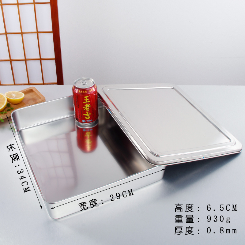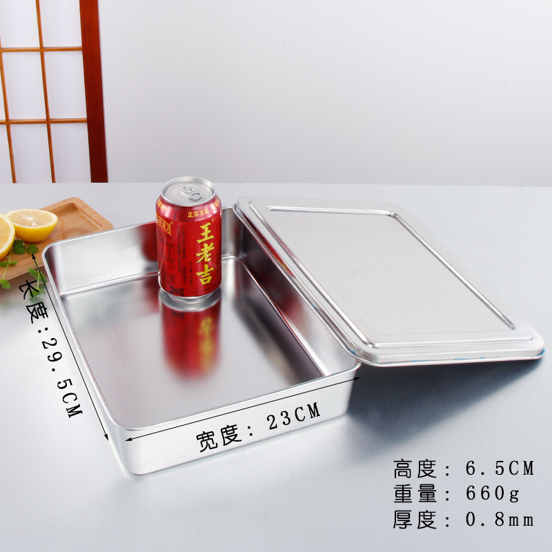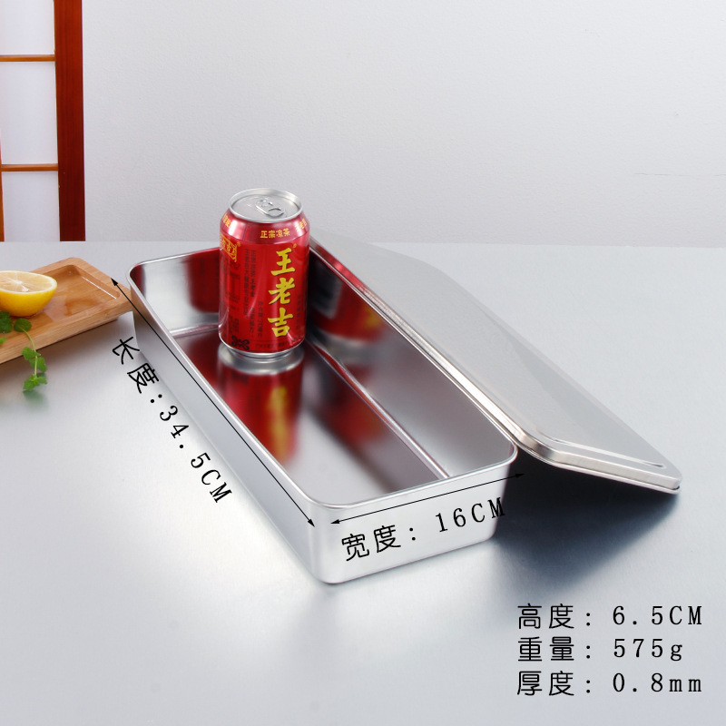 티라미수 플레이트 스테인레스 스틸 플랫 바닥 사각형 접시 뚜껑이있는 직사각형 상자 찐 케이크 베이킹 플레이트 요리 식품 접시