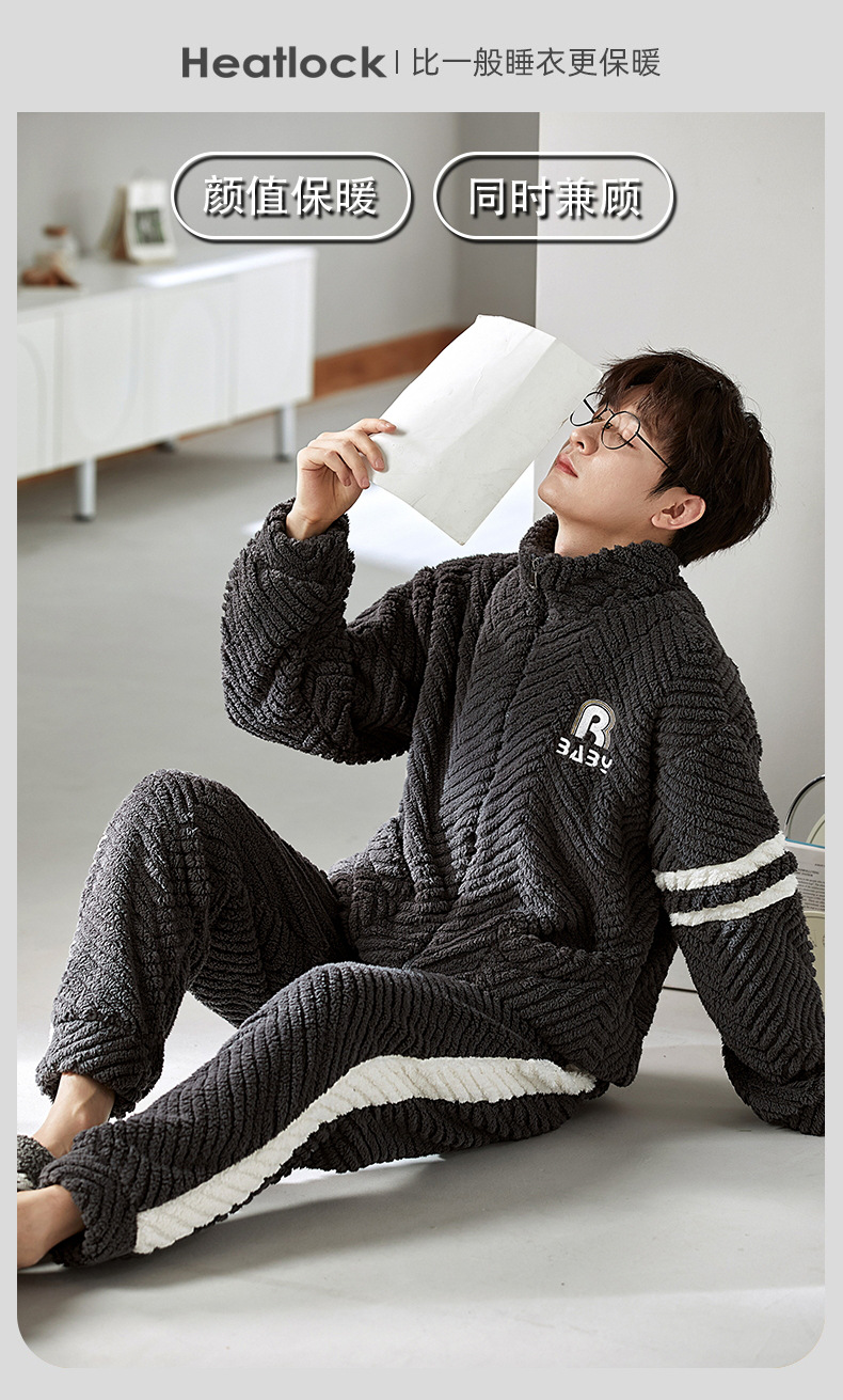 커플 잠옷 가을과 겨울 두꺼운 산호 양털 여자의 만화 겨울 플란넬 남자의 가정 옷 지퍼 세트