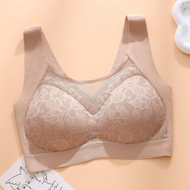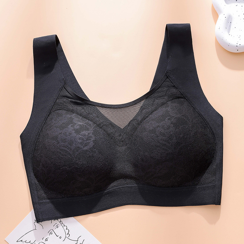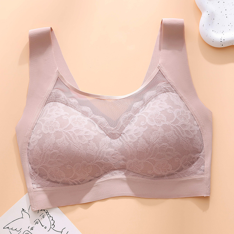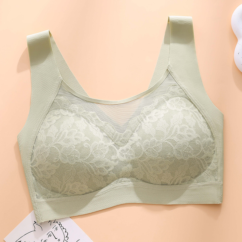 여름 가볍고 얇은 이음매없는 속옷 레이스 고정 컵 스틸 링없이 통기성과 편안한 상단 지원 아름다운 등 스포츠 조끼 브라스토어 가기