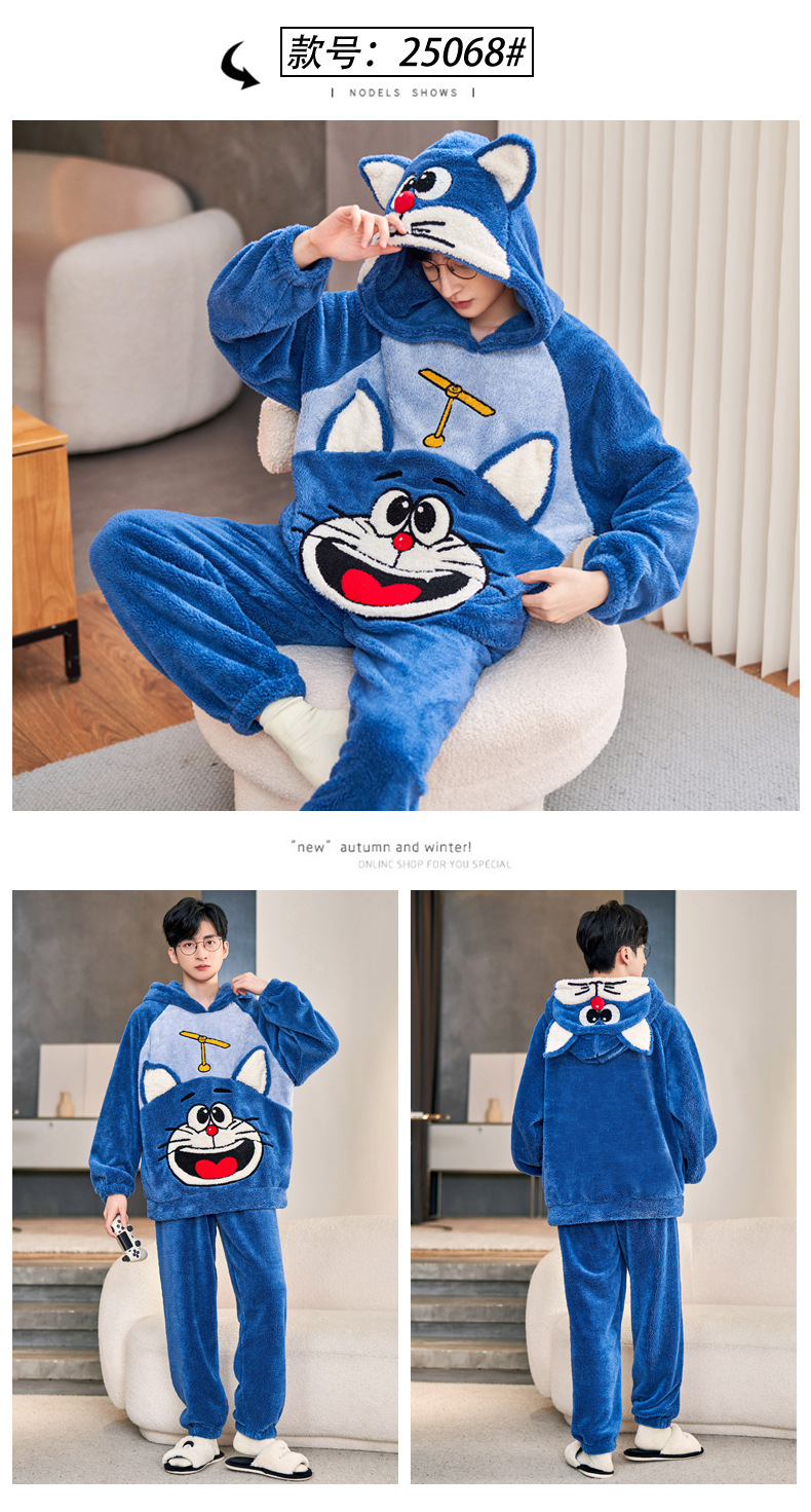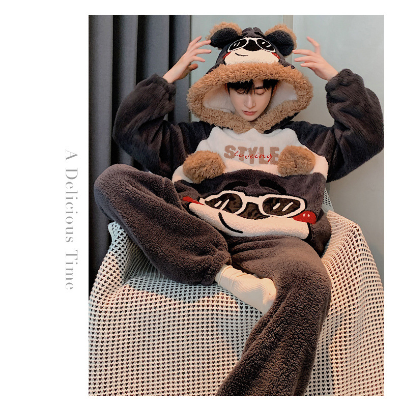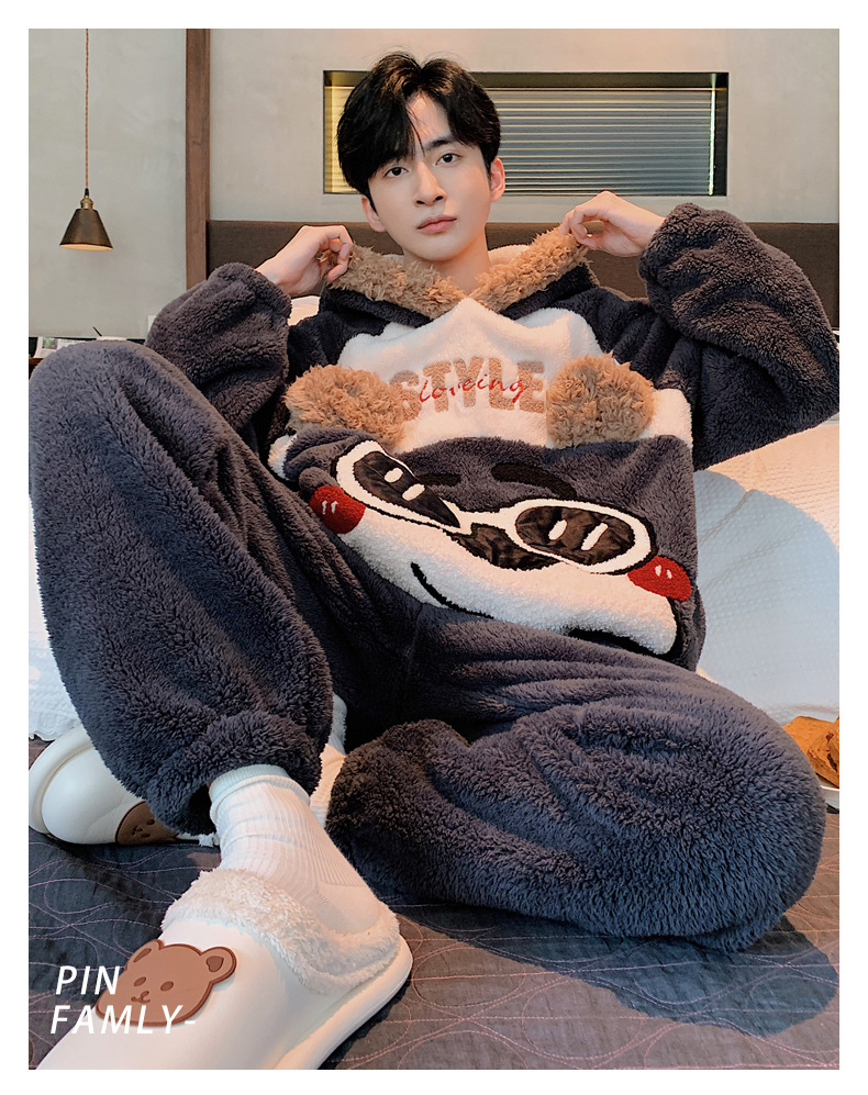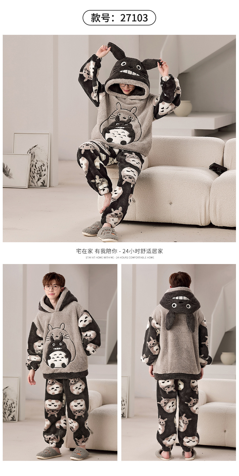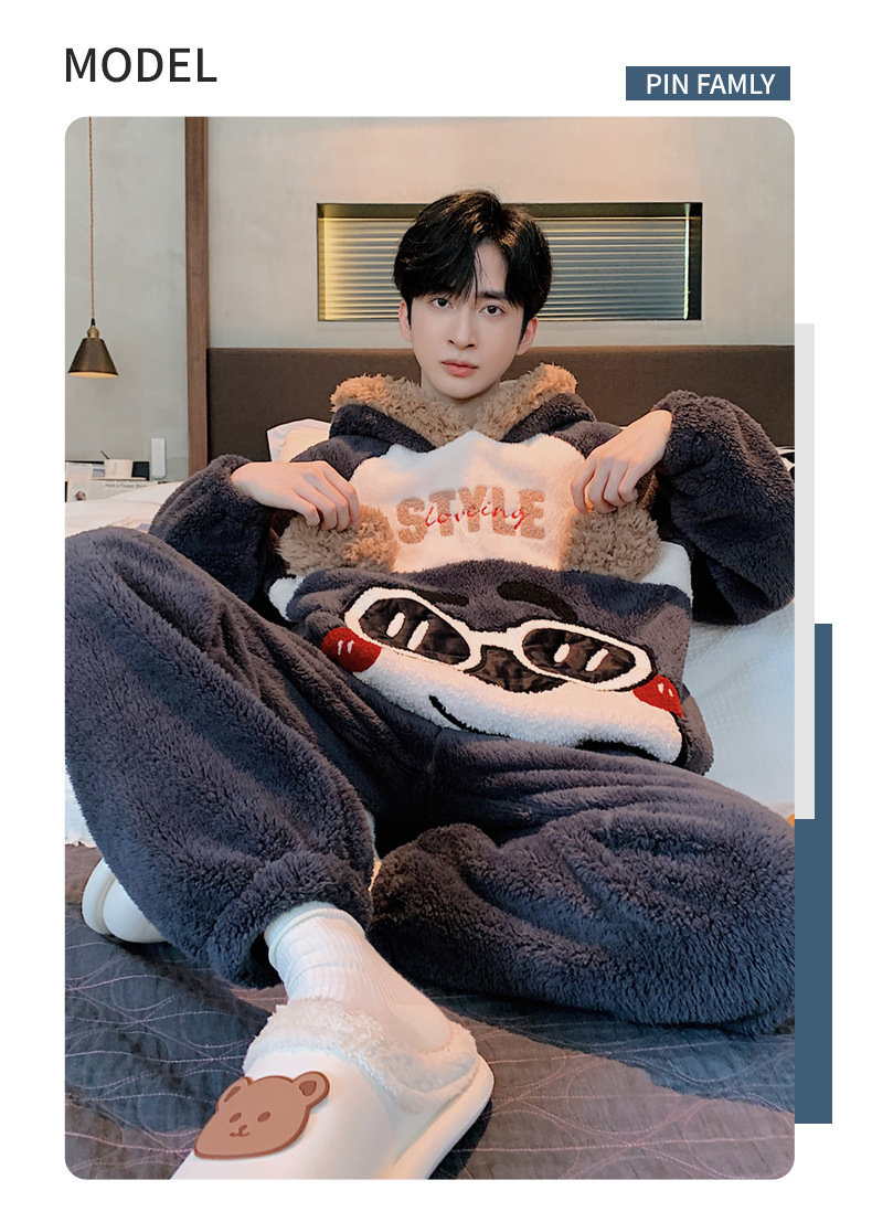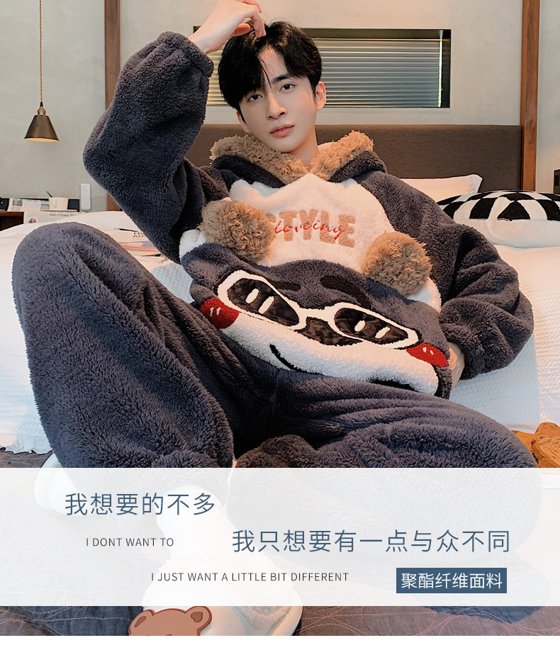 가을과 겨울 봉제 잠옷 남자의 만화 후드 십대 산호 양털 플러스 사이즈 초대형 겉옷 가정 옷스토어 가기