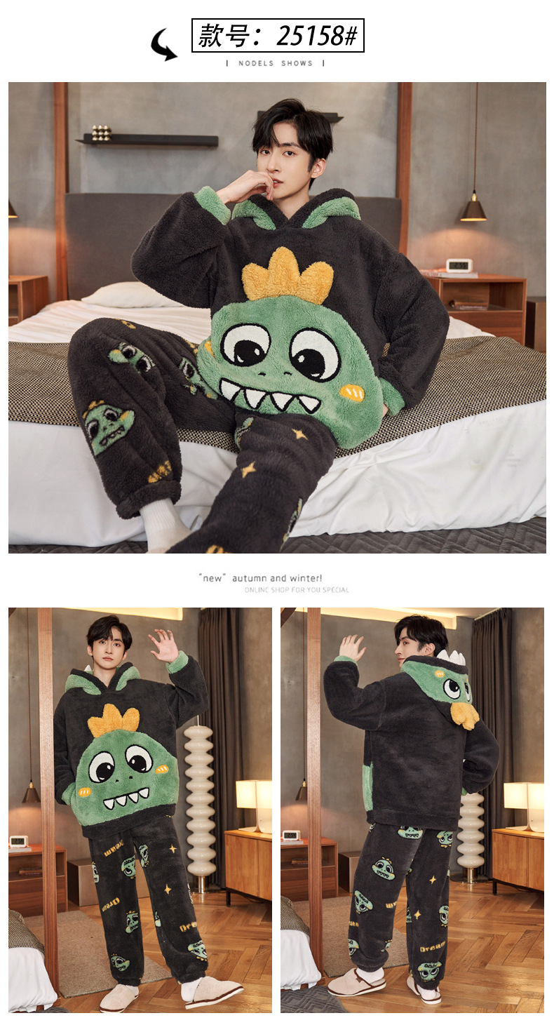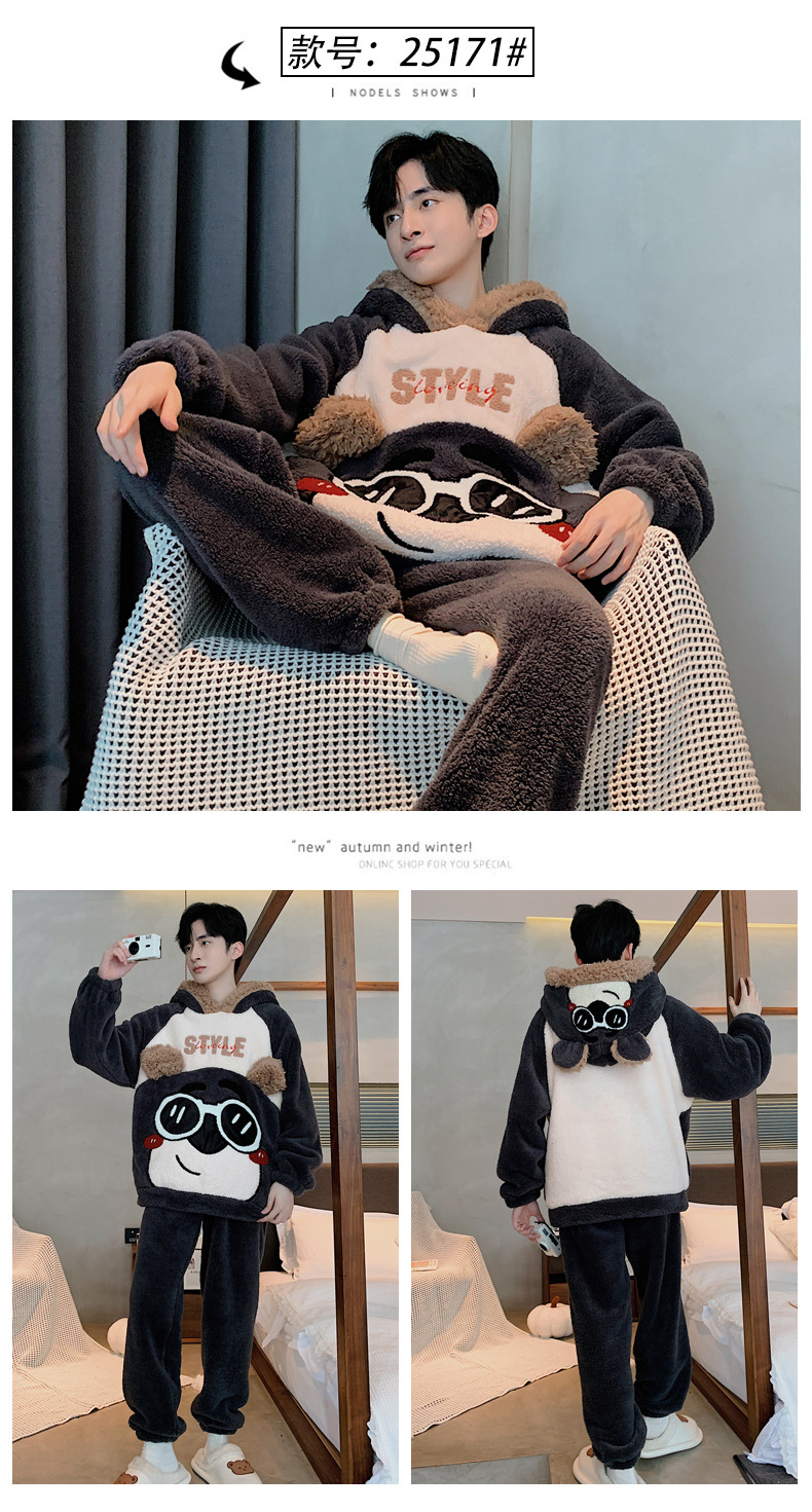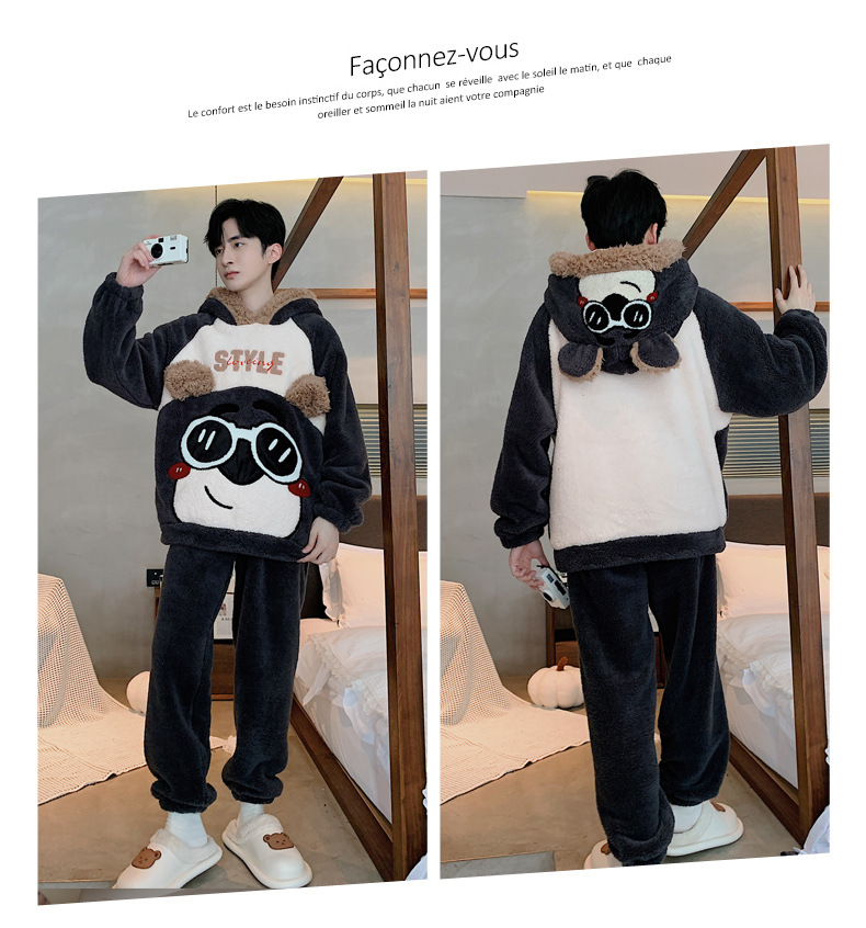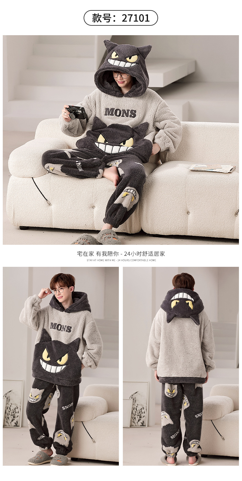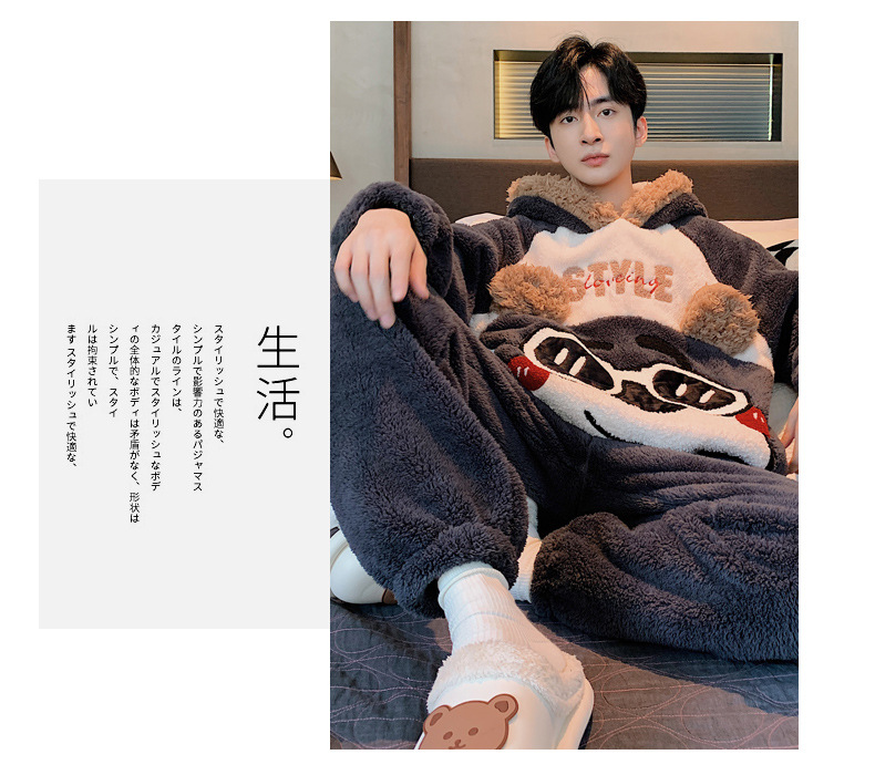 가을과 겨울 봉제 잠옷 남자의 만화 후드 십대 산호 양털 플러스 사이즈 초대형 겉옷 가정 옷스토어 가기