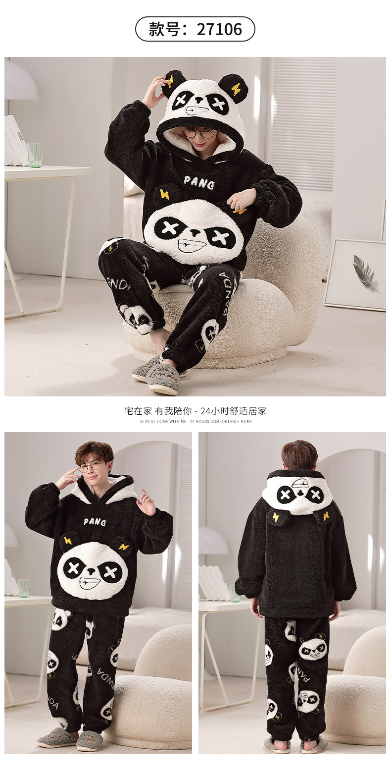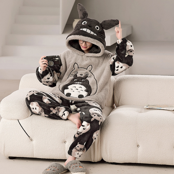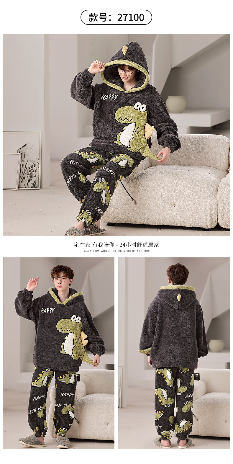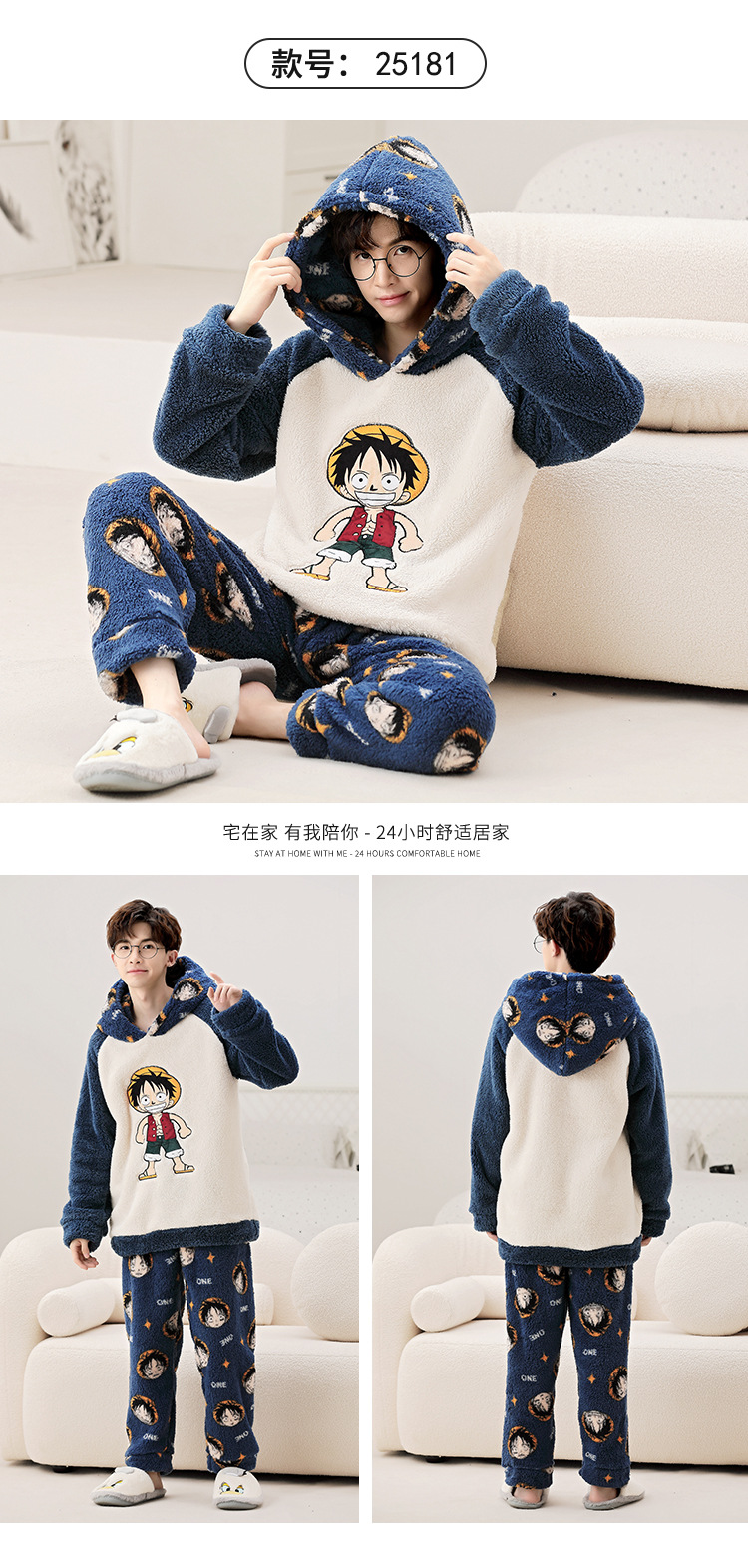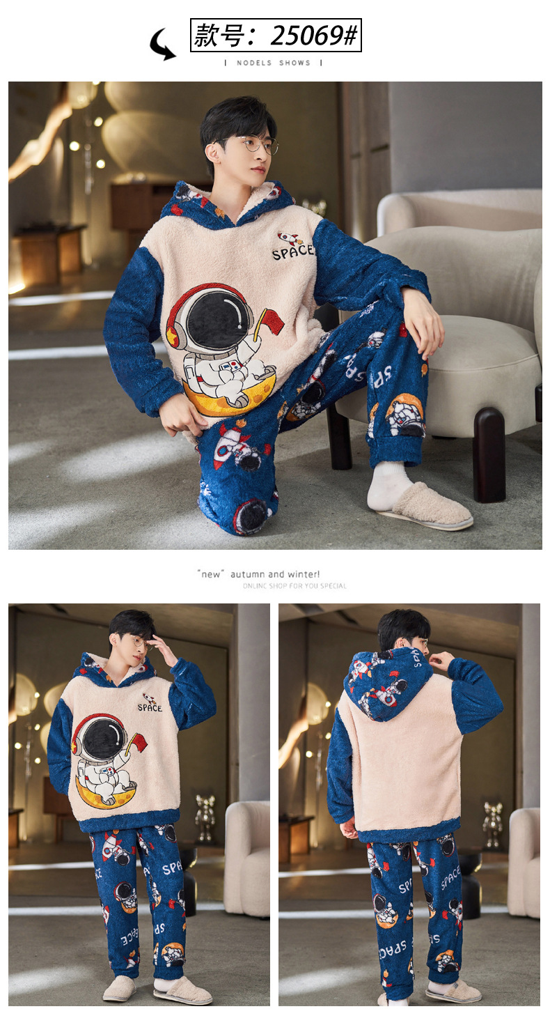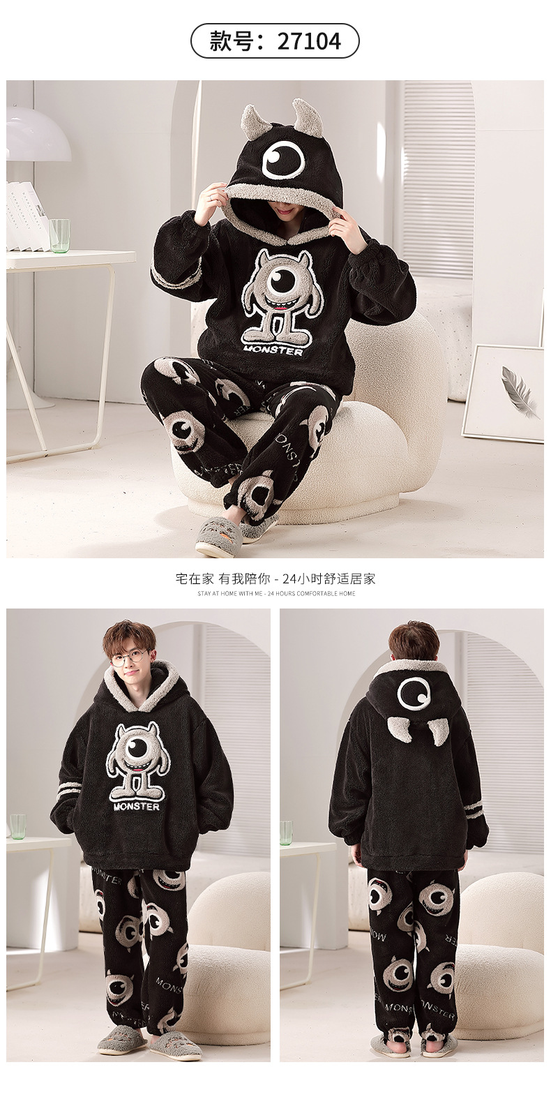 가을과 겨울 봉제 잠옷 남자의 만화 후드 십대 산호 양털 플러스 사이즈 초대형 겉옷 가정 옷스토어 가기