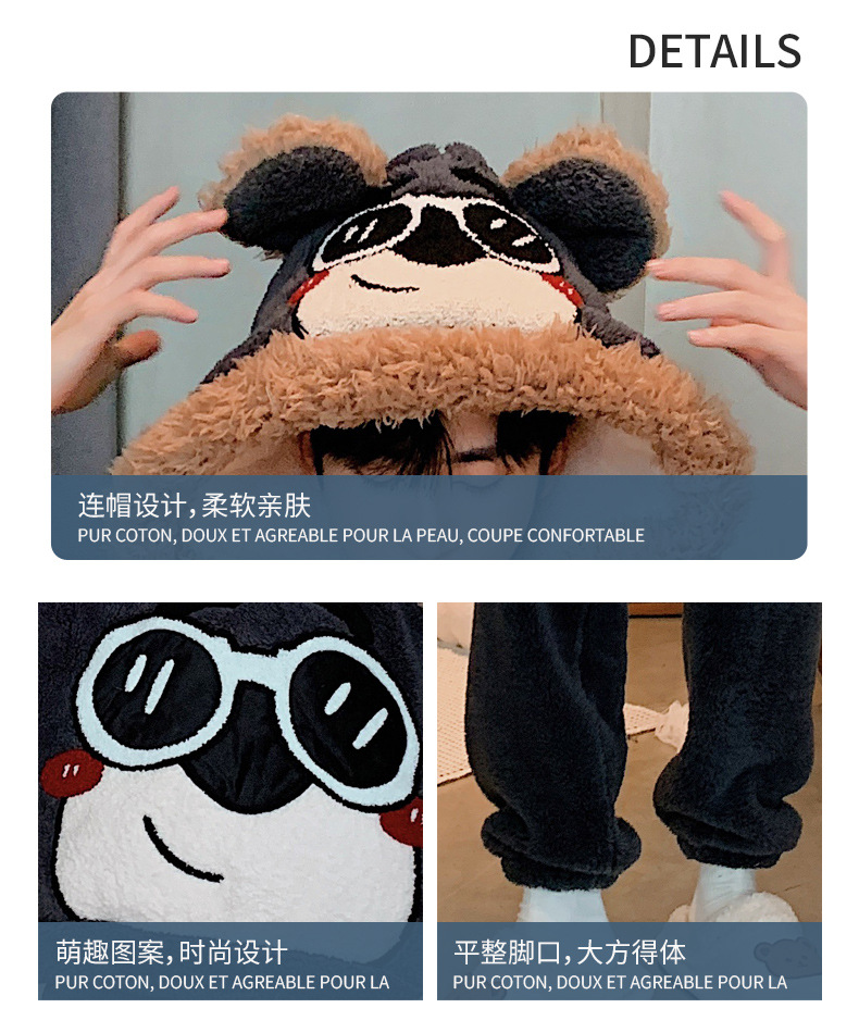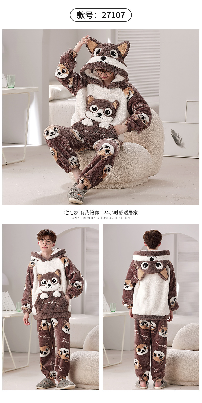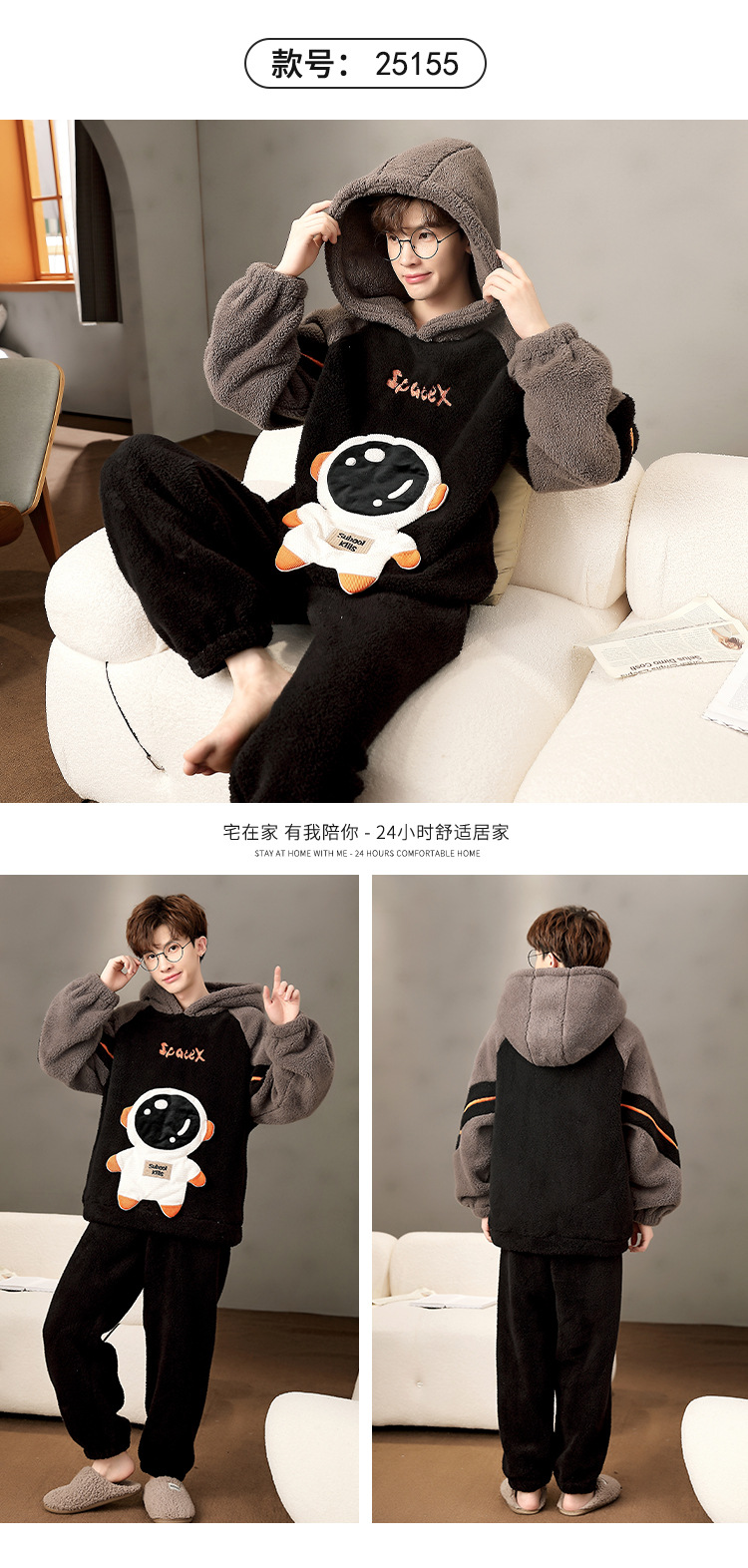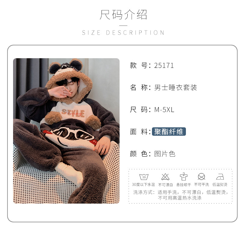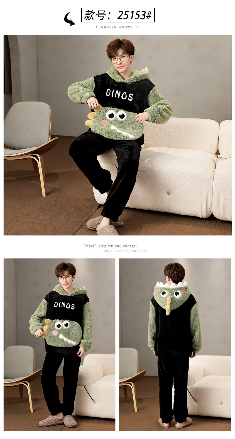 가을과 겨울 봉제 잠옷 남자의 만화 후드 십대 산호 양털 플러스 사이즈 초대형 겉옷 가정 옷스토어 가기