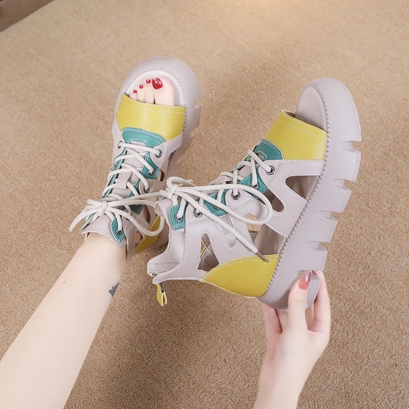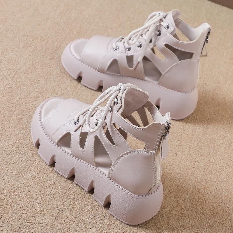 쿨 부츠 여성 레트로 플랫폼 샌들 레이스 업 패션 중공 샌들 여름 2025 새로운 통기성 캐주얼 머핀 신발스토어 가기