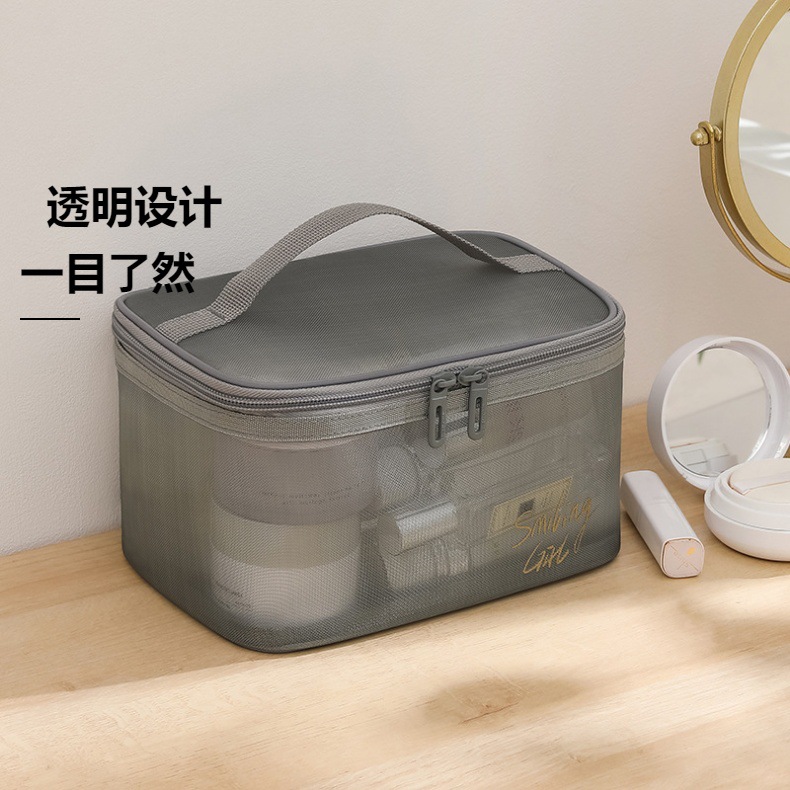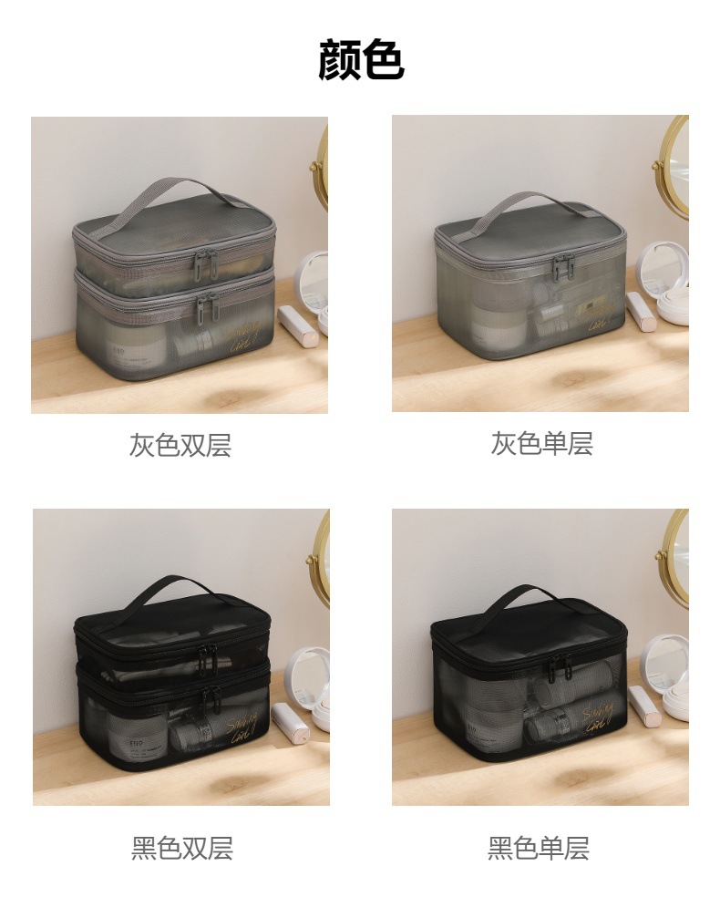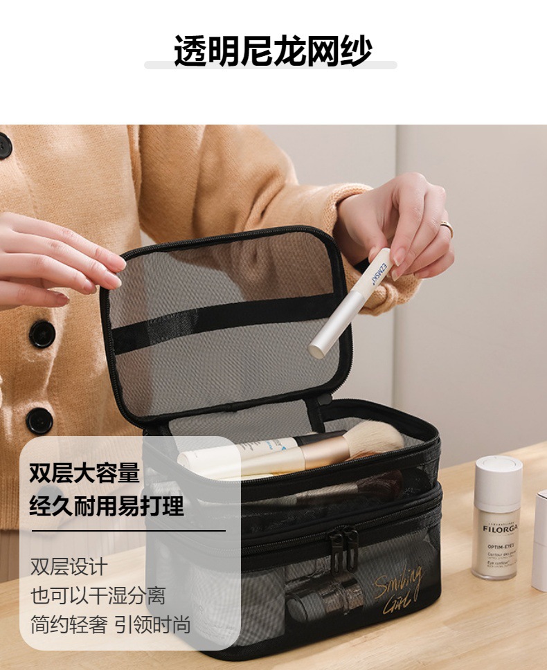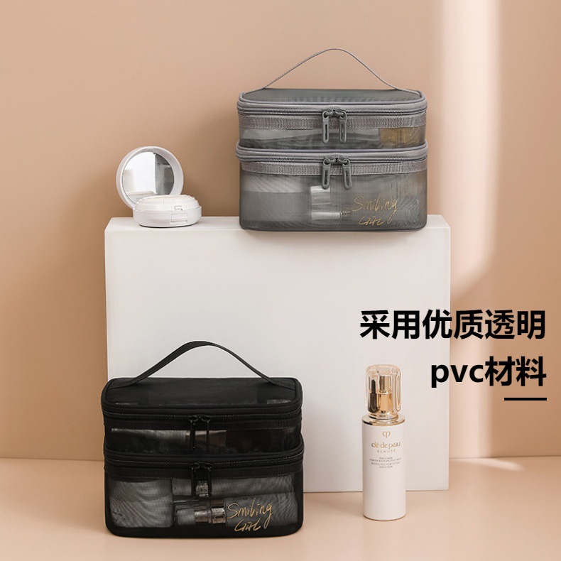 대용량 휴대용 투명 보관 가방 더블 레이어 휴대용 여행 보관 세척 가방에 새로운 메쉬 메이크업 가방