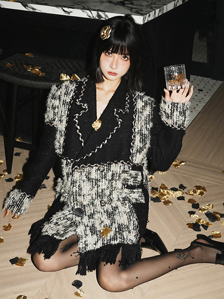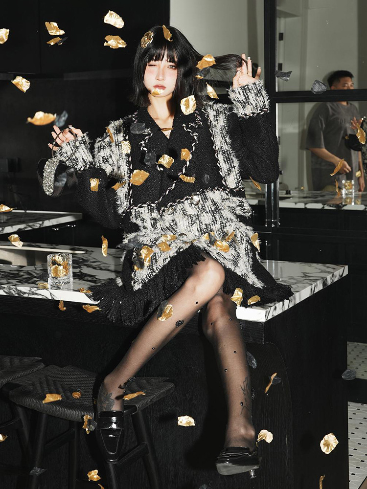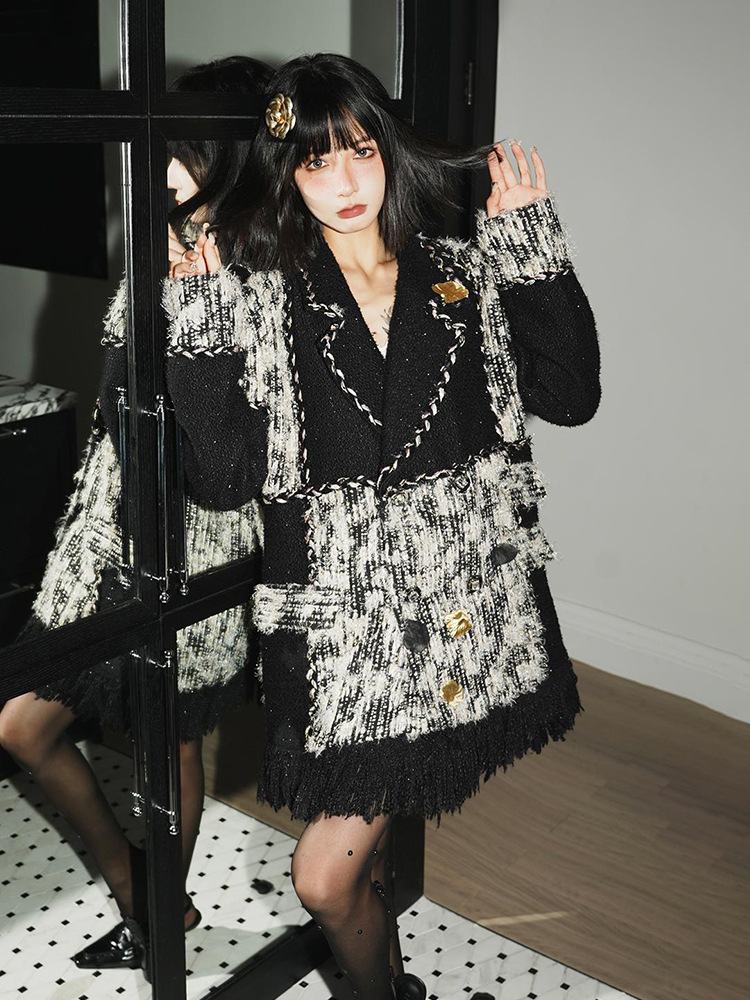 YT235871 가을과 겨울 의류가 올해 인기, 아름다운 폭발 옛돈 바람 작은 향기로운 바람 블랙 트위드 코트 재킷스토어 가기