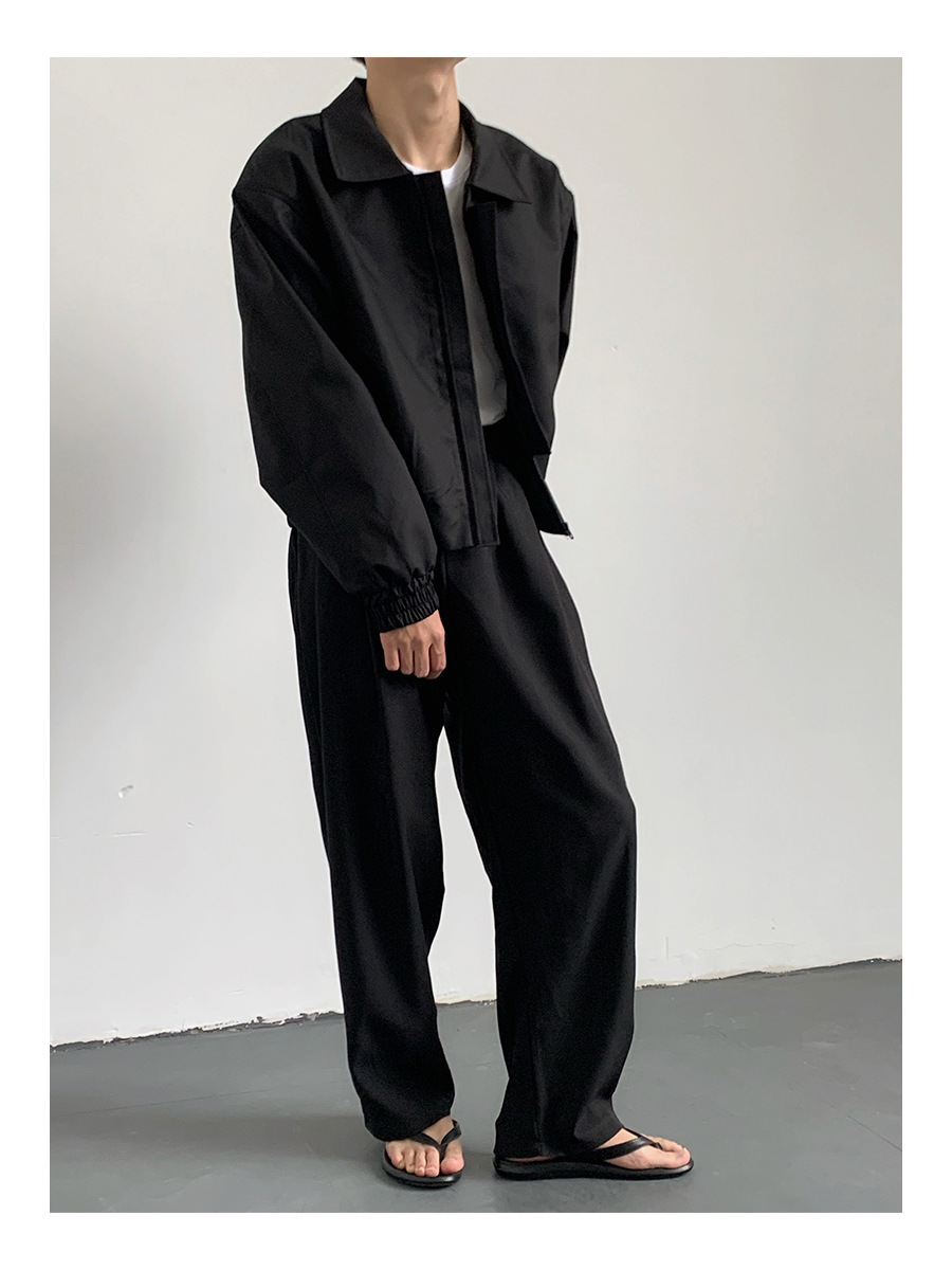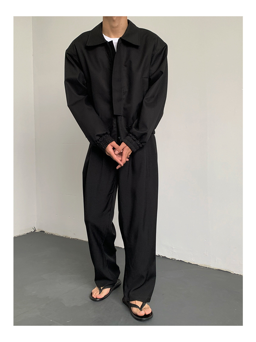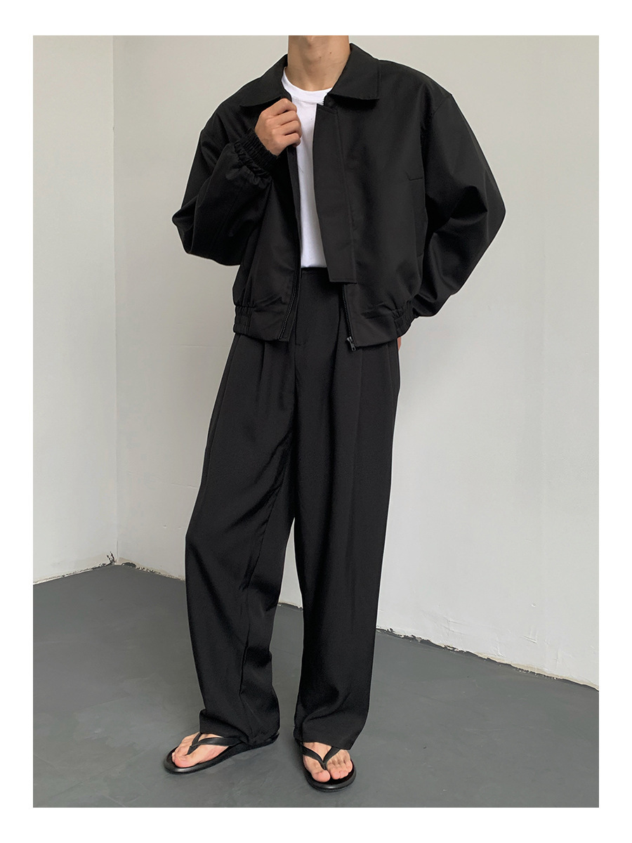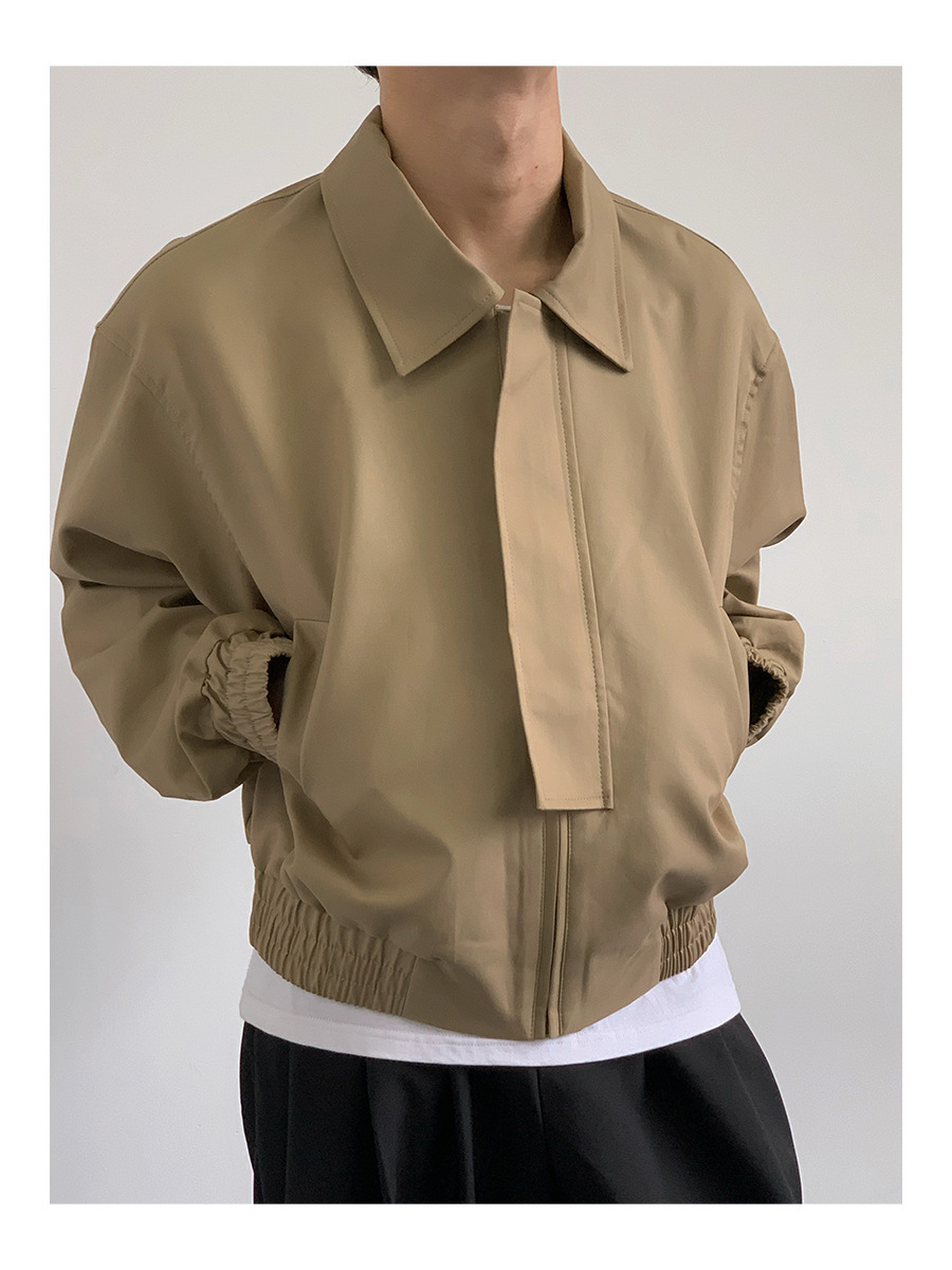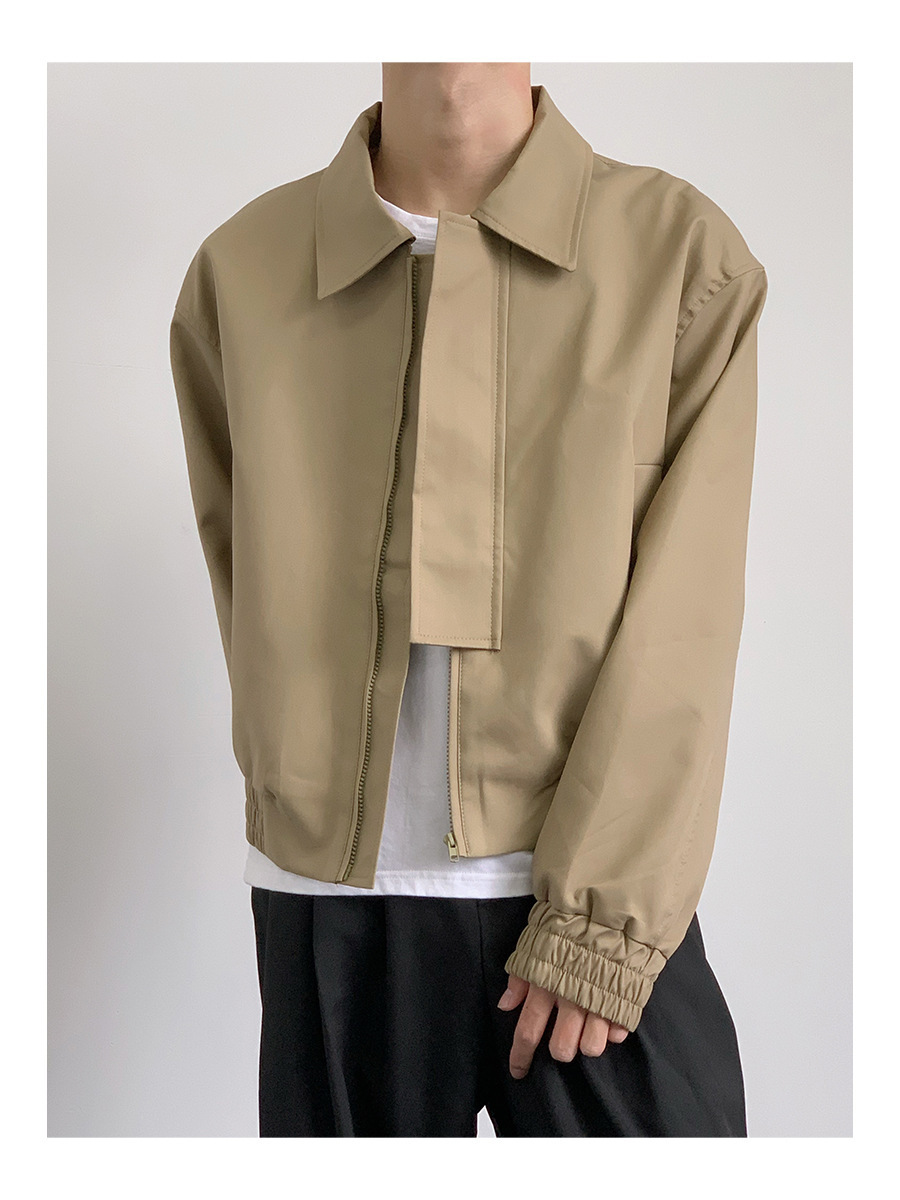 카키 빈티지 홍콩 스타일 봄과 가을 코트 힙합 짧은 어깨 패드 폭격기 재킷 남자의 바지