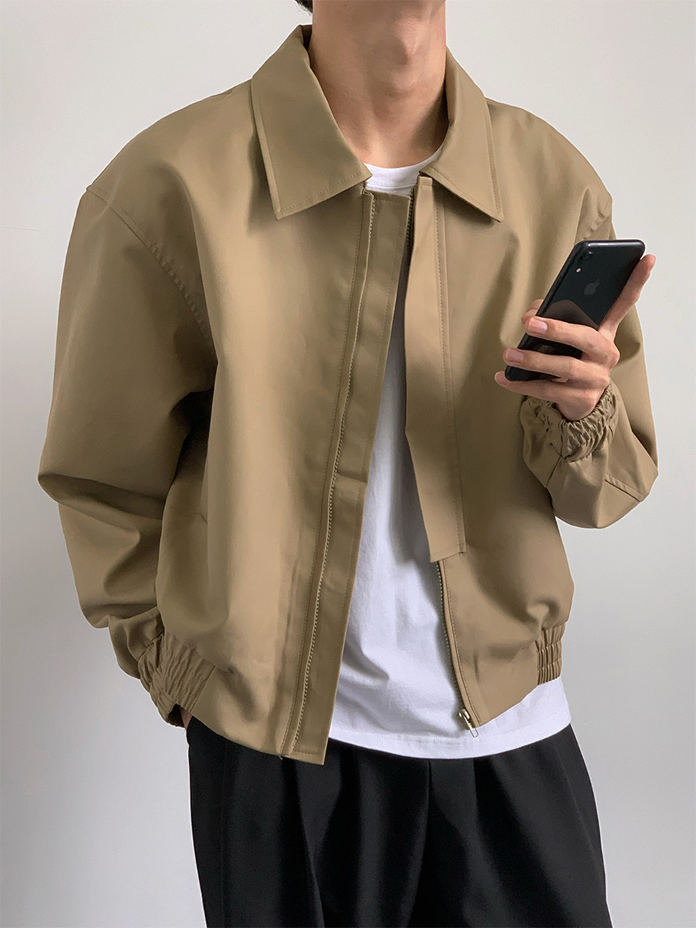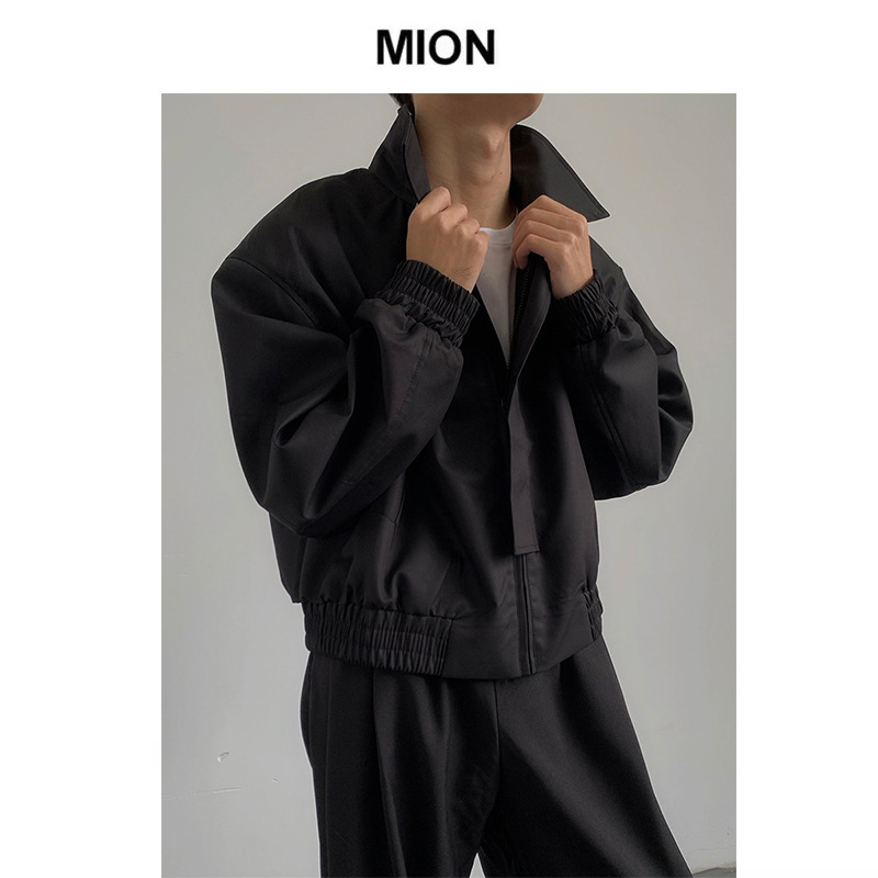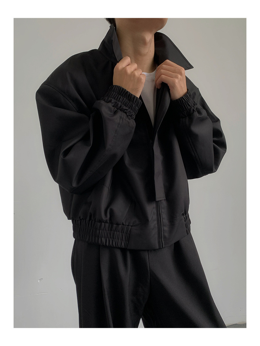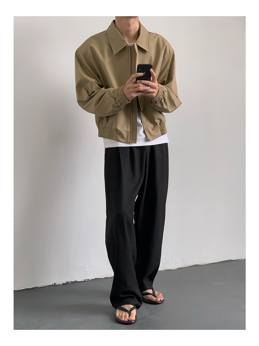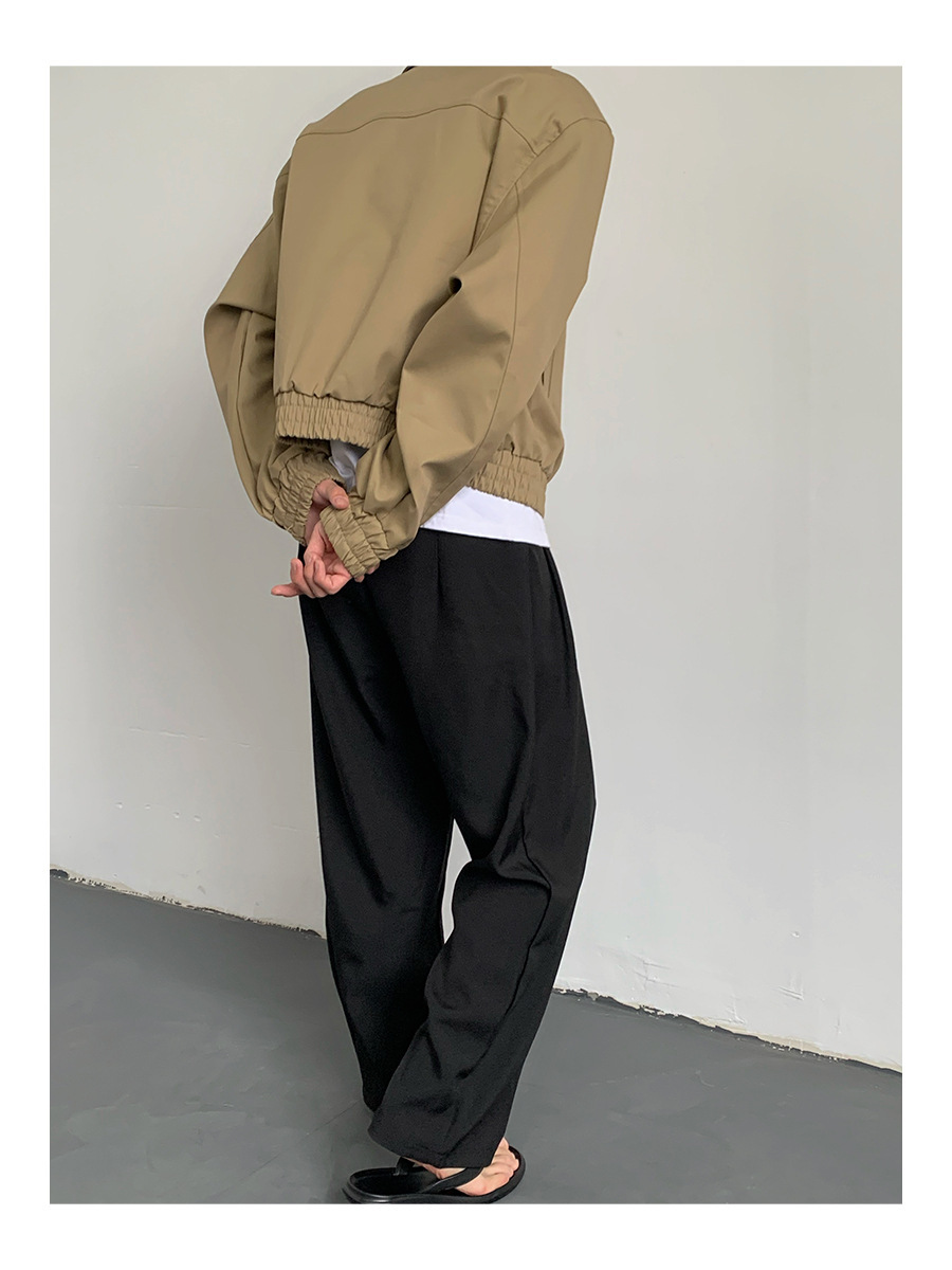 카키 빈티지 홍콩 스타일 봄과 가을 코트 힙합 짧은 어깨 패드 폭격기 재킷 남자의 바지스토어 가기