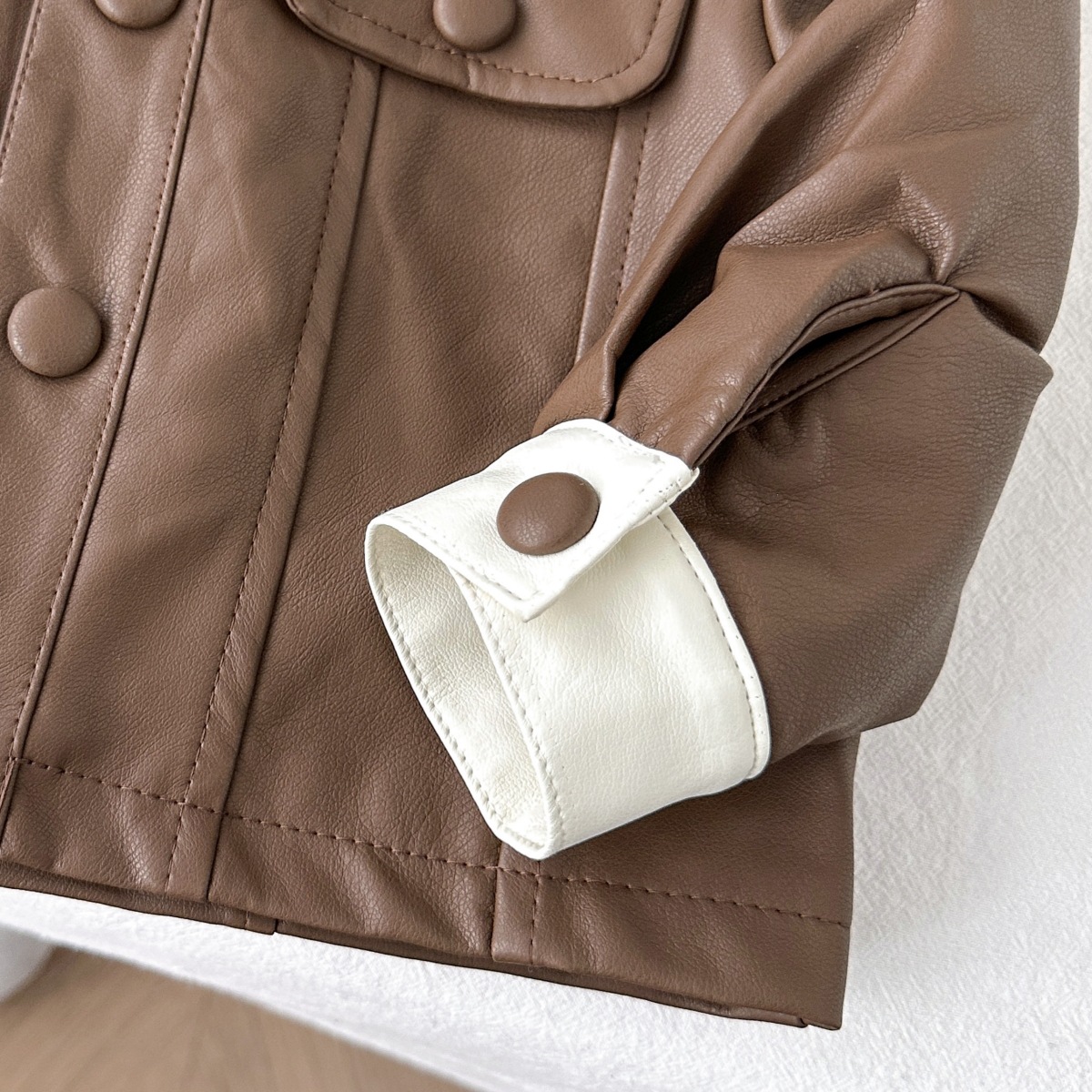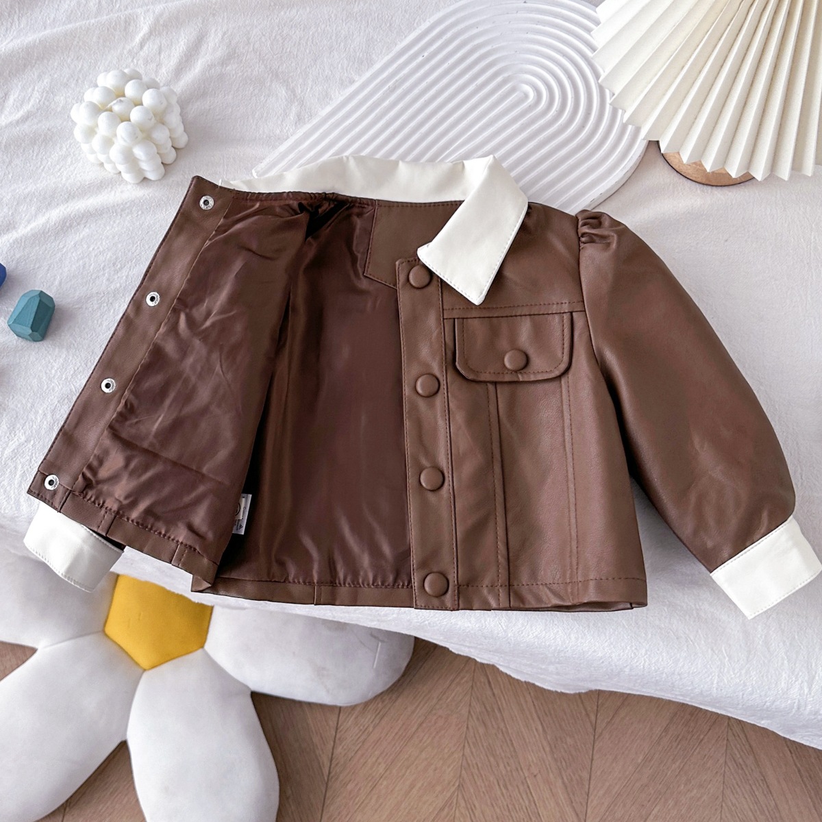 6571 소녀의 가죽 코트 2023 가을 새로운 스타일 어린이 아기 짧은 탑 소녀의 옷깃 재킷스토어 가기