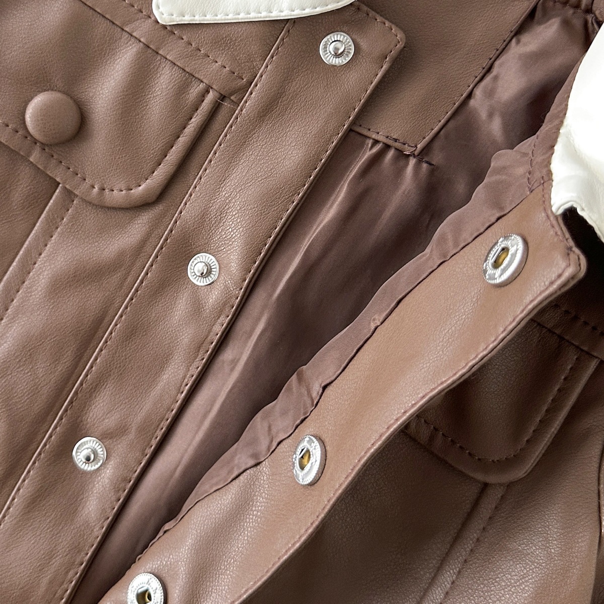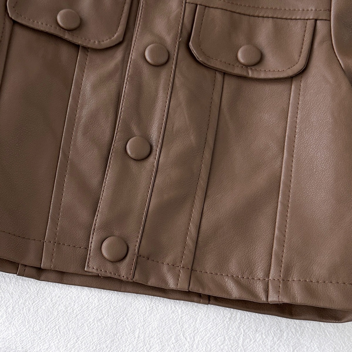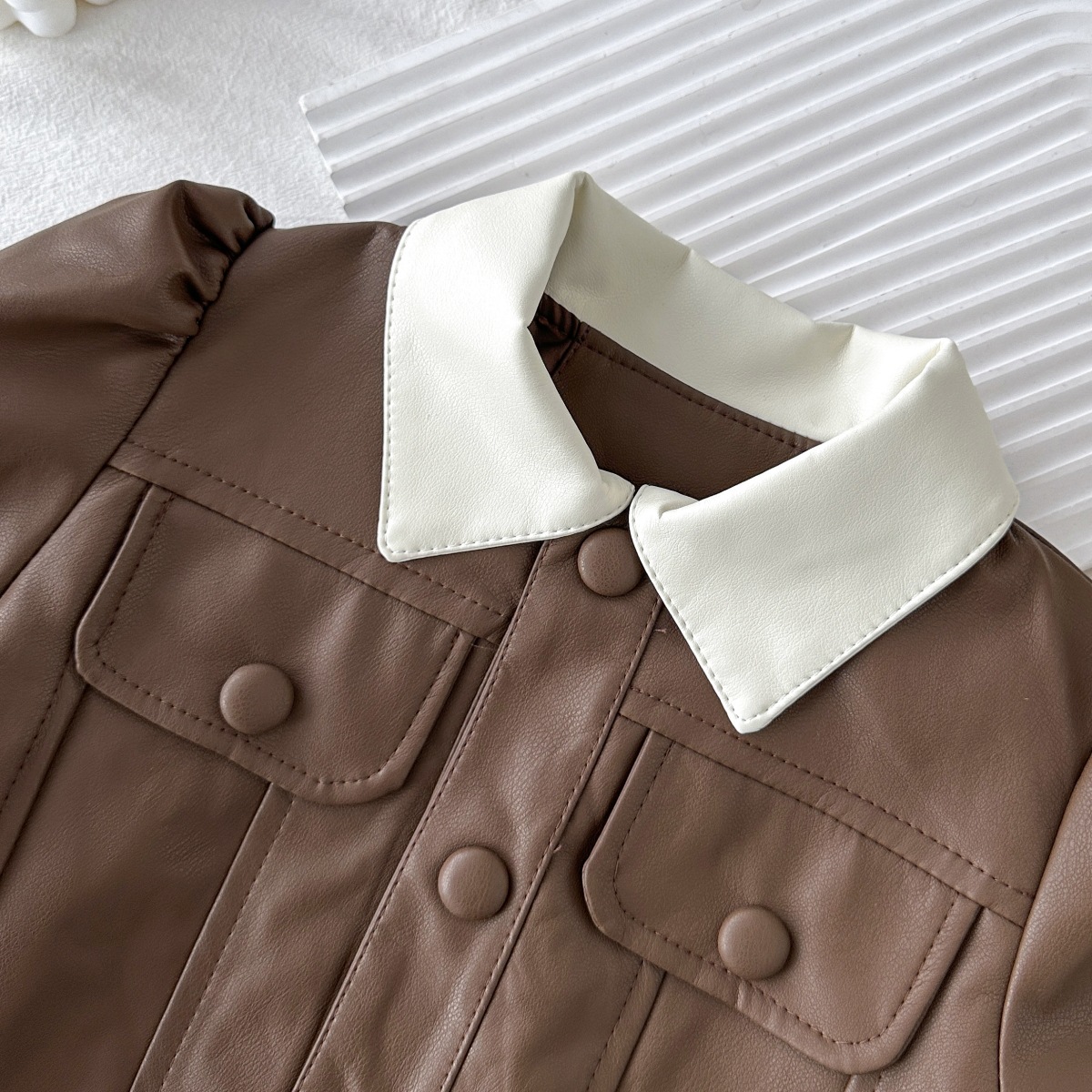 6571 소녀의 가죽 코트 2023 가을 새로운 스타일 어린이 아기 짧은 탑 소녀의 옷깃 재킷