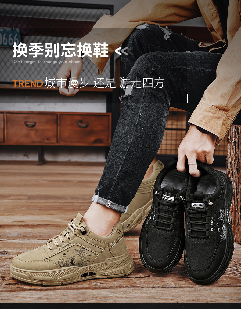 가을 방수 로우 탑 두꺼운 밑창 스포츠 레저 작업 신발 통기성 남성 신발 건설 현장 작업을위한 노동 보험 남성 신발스토어 가기