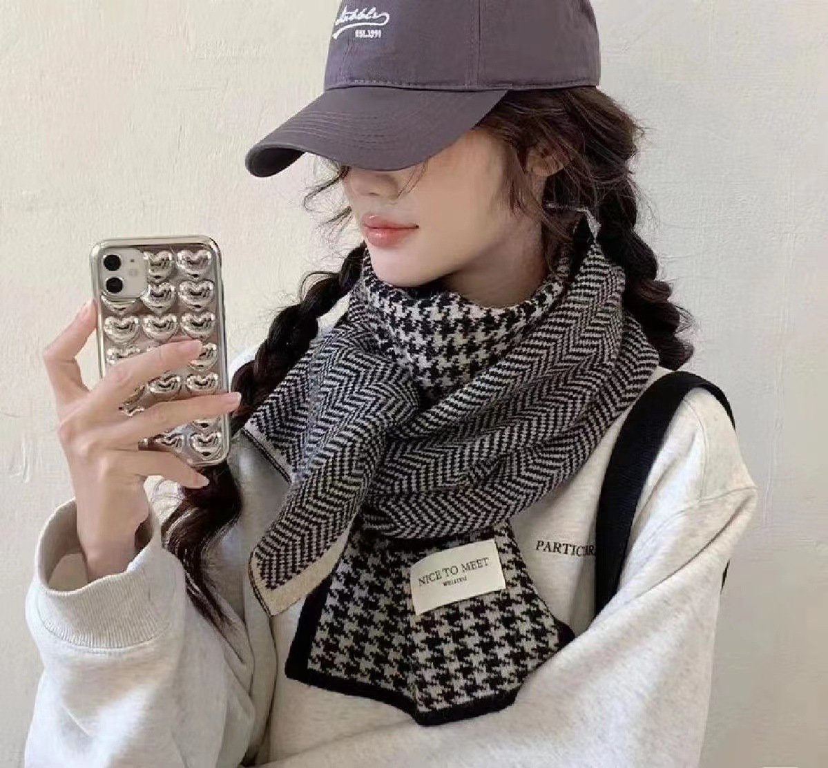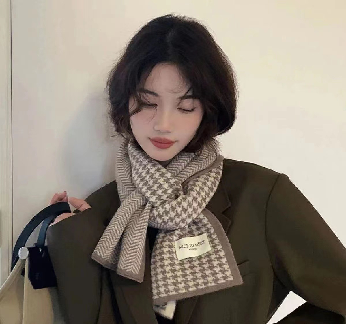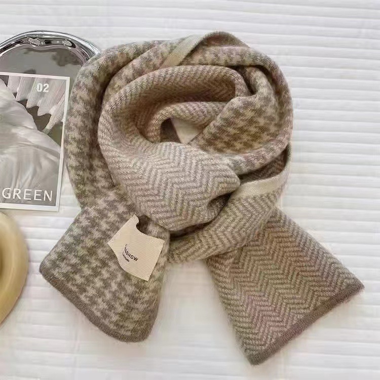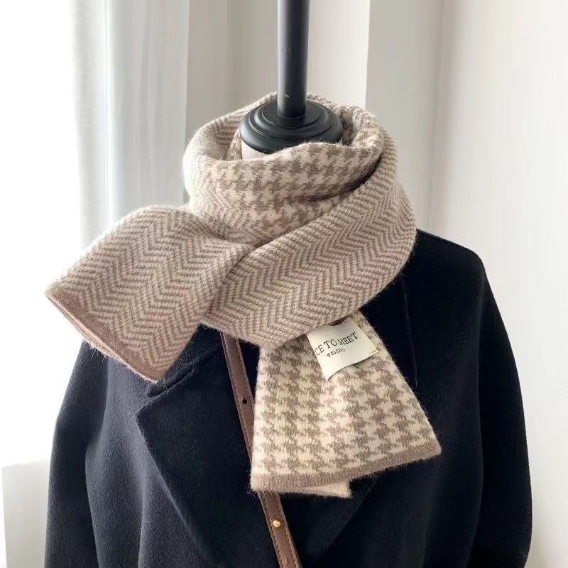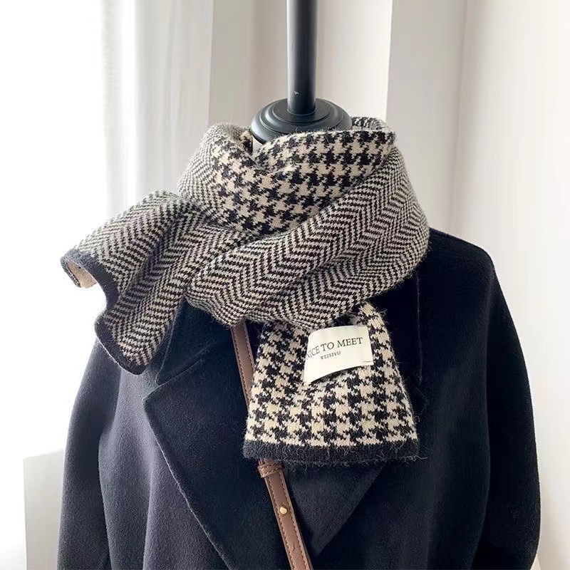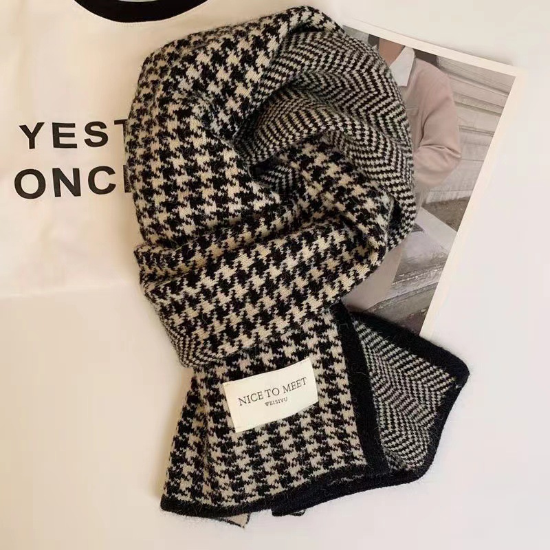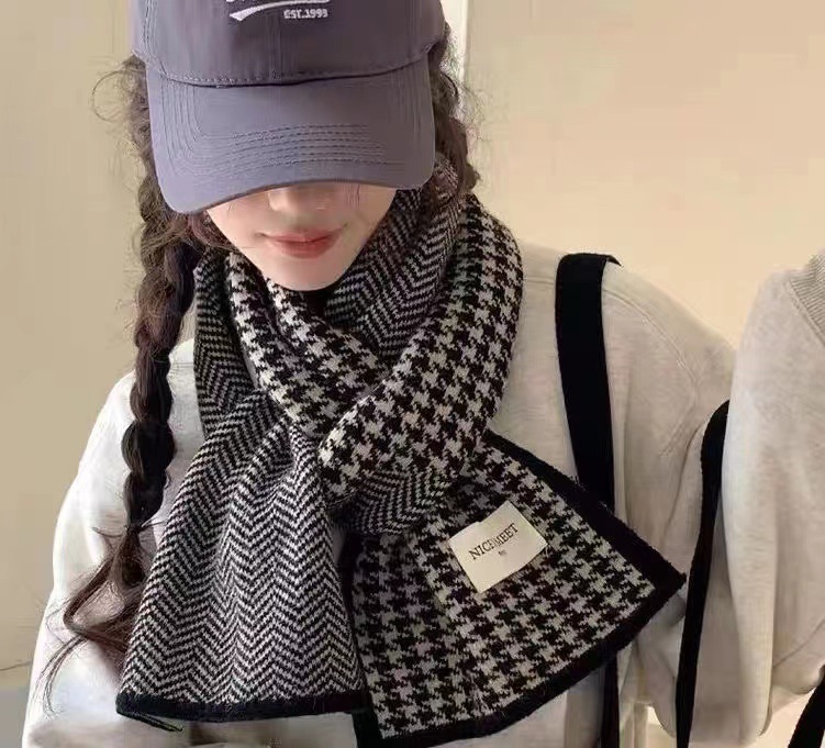 Houndstooth 스카프 여성용 겨울 하이 엔드 센스 2023 새로운 한국 스타일 모든 매치 니트 따뜻한 스카프 학생 커플스토어 가기