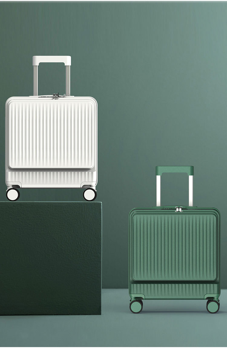 남성과 여성을위한 전면 개방 수하물 케이스 18 인치 사일런트 알루미늄 프레임 암호 여행 가방 작은 여행 가방스토어 가기