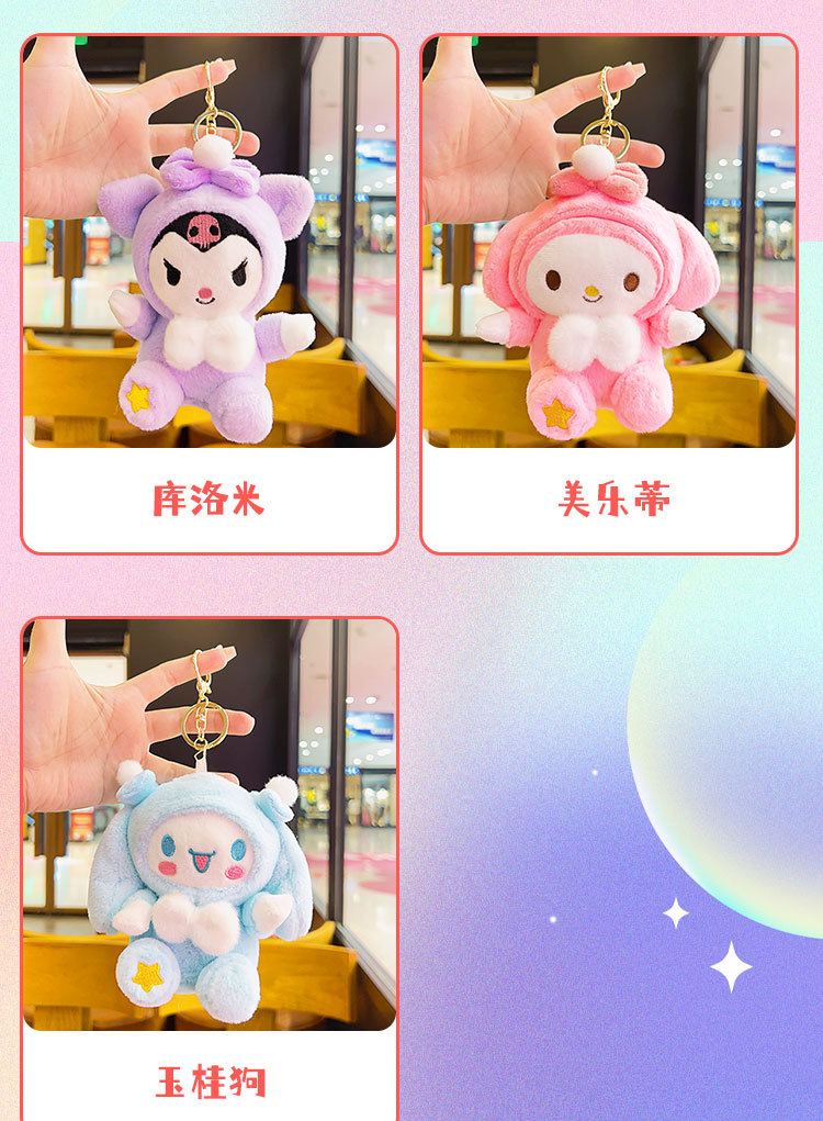 봉제 인형 쿨로미 책가방 펜던트 열쇠 고리 멜로디 열쇠 고리 선물 도매 만화 인형 펜던트스토어 가기