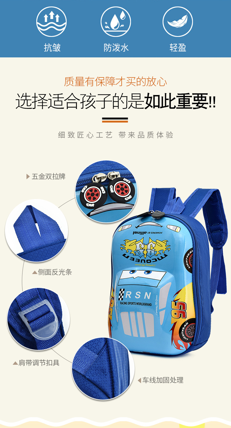 하드 쉘 유치원 책가방 어린이 아기 학교 가방 3-6 세 소년 소녀 자동차 성격 배낭
