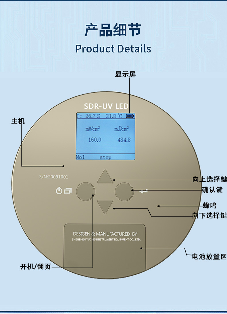 UV 에너지 미터 UV 테스터 UVLED 테스터 UV 광도 감지 395nm UV 조사기
